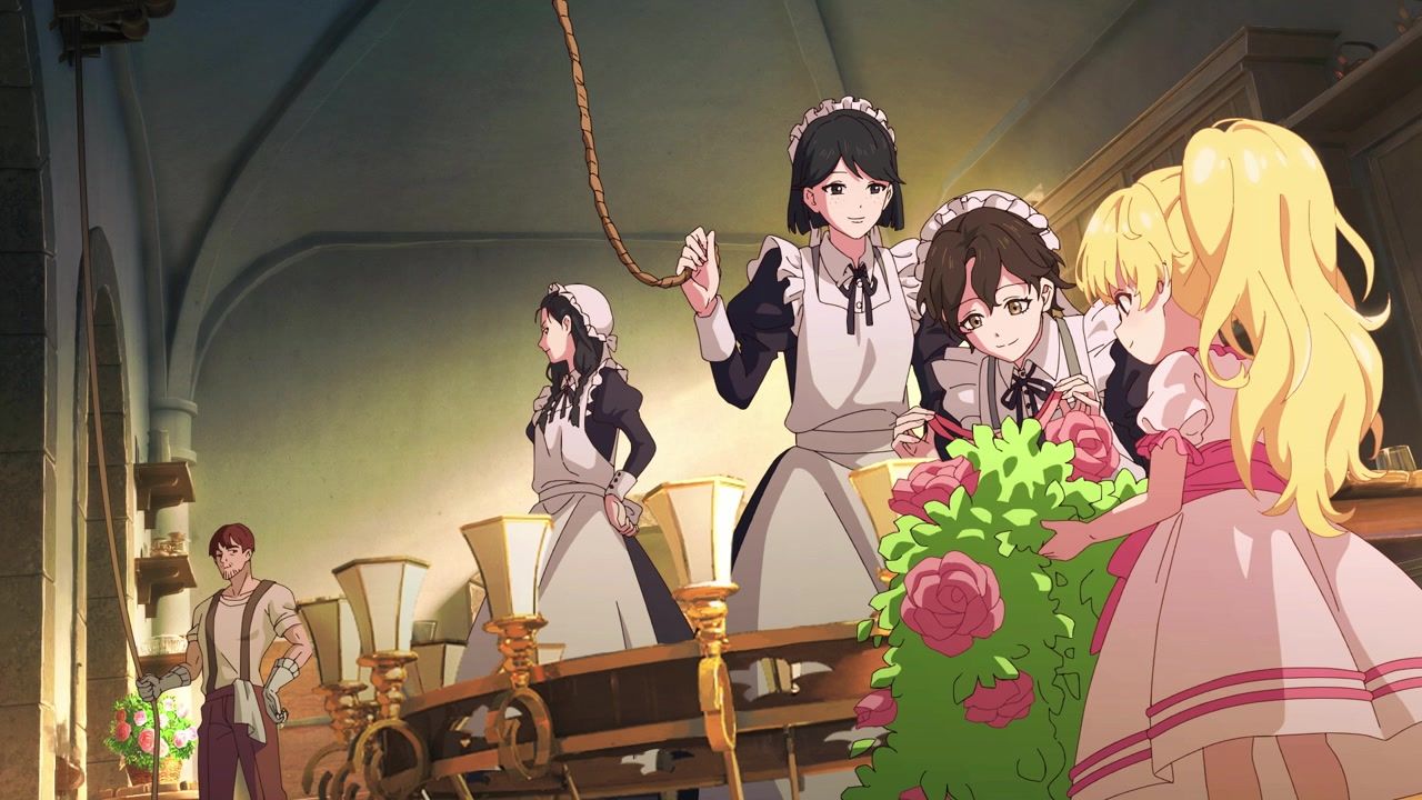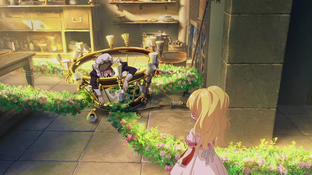 The only highlight came after it had explained and re-explained its overdone premise of her being a doomed but innocent princess at least six times and she set out to thwart the lowest hanging fruit imaginable, a thief dressed like a maid skulking around openly while announcing how frustrated she was that she couldn’t find anything to steal. Of course, she needed to be pointed to the servant’s quarters, and specifically the dinnerware. That’s where nobles keep all their precious jewels, you see. In the scullery as part of the silverware. It gets worse, because she’s foiled by the brat dropping a chandelier that was held up by the loosest knot in the world. So to recap that entire sequence, everything valuable in the castle is kept in the servants’ kitchen, along with a gaudy chandelier that’s held by a square knot. And then everybody clapped. Literally.
