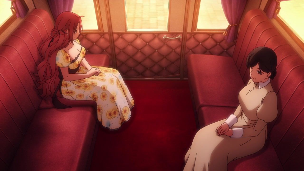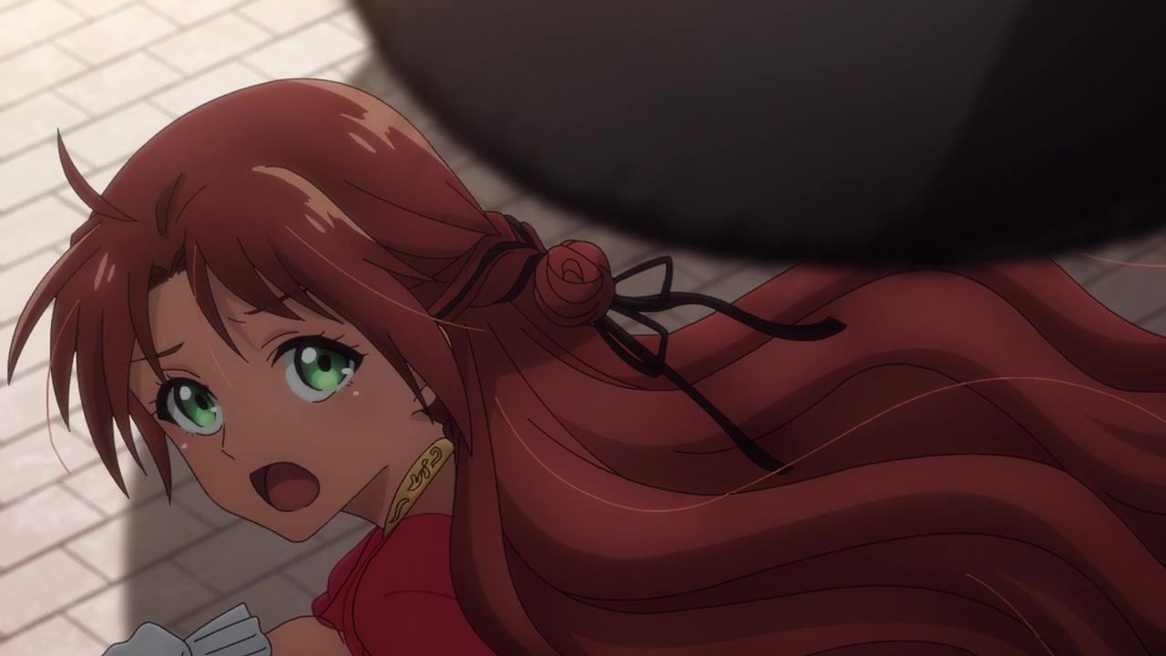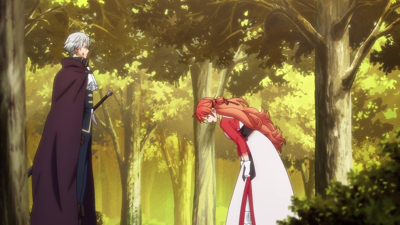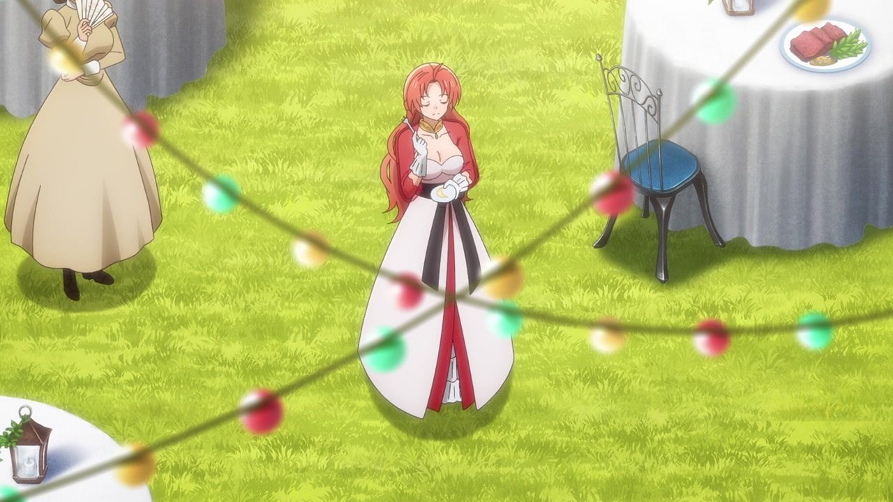 I’ll say this, at least she was more open about her whole monster-eating schtick which removed at least one obnoxious aspect of interacting with people, and made the meet-cute not nearly as bad, but then we have the peanut gallery who’s standing at the sides announcing characters in the most bizarre ways. “It’s the Blood Mad Duke who slayed that random monster who almost killed us and saved our lives. What a cruel horrible beast.” And then they evaporated into thin air despite a giant monster corpse in the middle of a garden party, because that scene went on forever. Which really stood out because like with a lot of scenes, the music didn’t seem to be quite on the same page, and they didn’t get the message that the monster was dead for a minute or two after.
