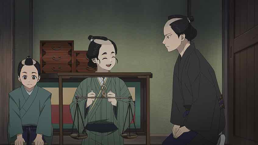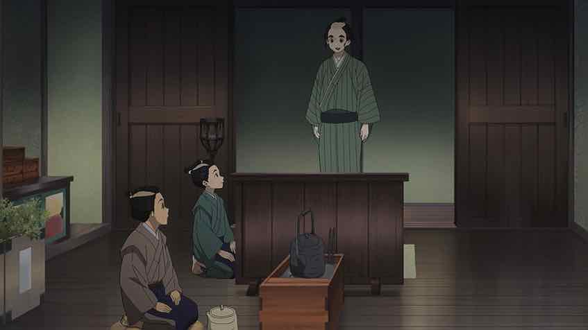 Anime based on novels are usually pretty easy to spot, and I think Shabake falls under that umbrella. The story unspools differently from a manga adaptation, in ways that are sometimes hard to quantify. It’s quite a leisurely start, which is not uncommon for such shows, though things do pick up steam by the third act. Shabake is the story of an young Edo Period merchant’s son named Ichitarou, frail and sickly since birth. He had an older brother who died (though there are suggestions it isn’t that straightforward), and his mother is unlikely to bear another child. That makes the doubts about Ichitarou’s fitness to take over the (very successful) Nagasakiya especially acute (and painful for Ichitarou).