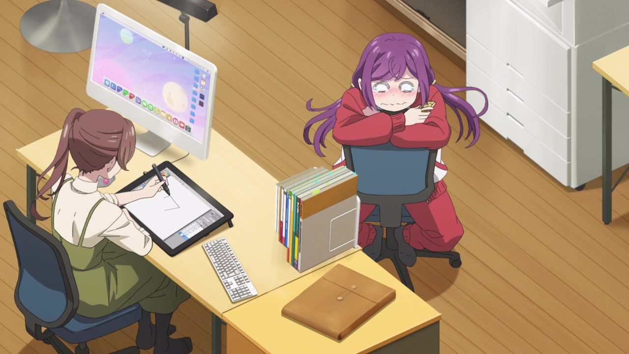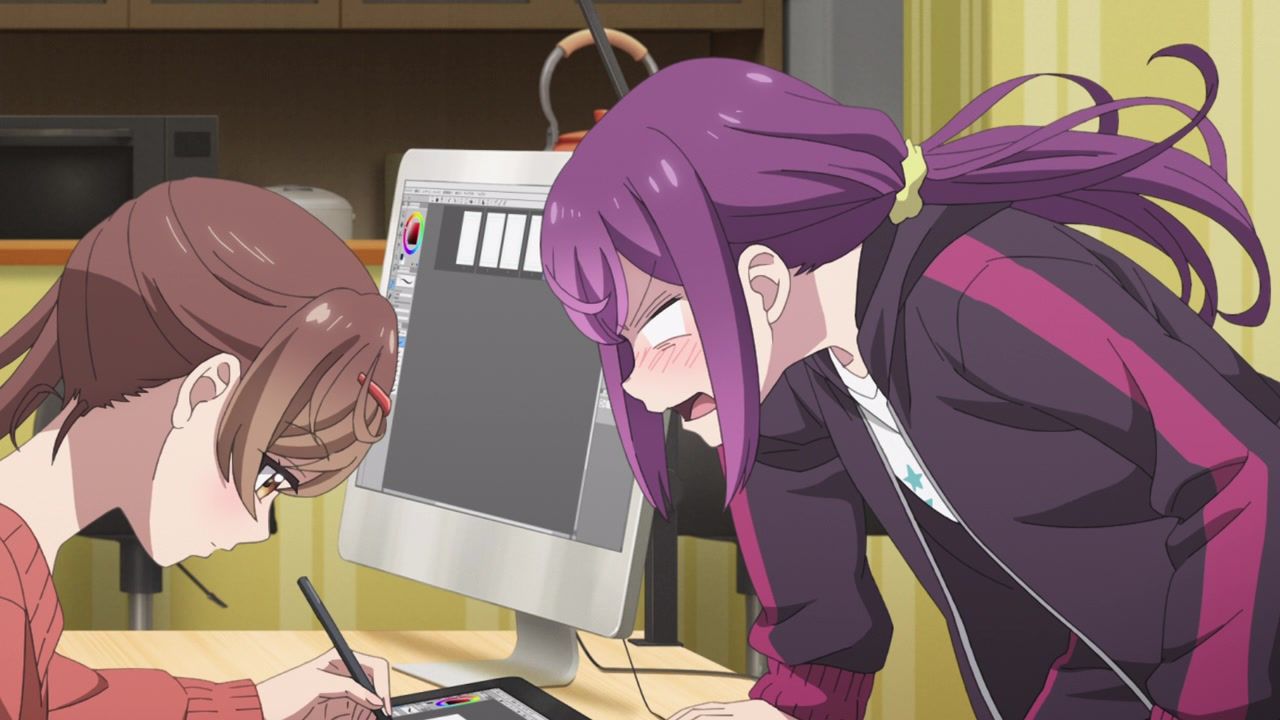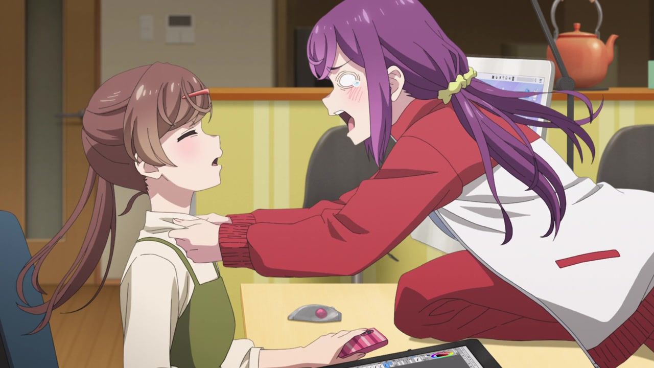 And as with the theme of all the comedies this season, it doesn’t use its premise of being about manga in any way. It’s just the subject to briefly mention to fill the gap in between yelling. Nothing would need to be done to change anything if it were to be about songwriting, cooking, or drug smuggling instead. Just another Japanese Business Inc. Let’s make some damn sausage here. Do something interesting. Show some actual passion for the medium in GA Art Class did. Or just yell. Loudly and repeatedly.