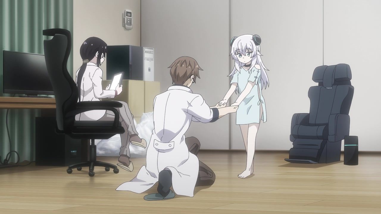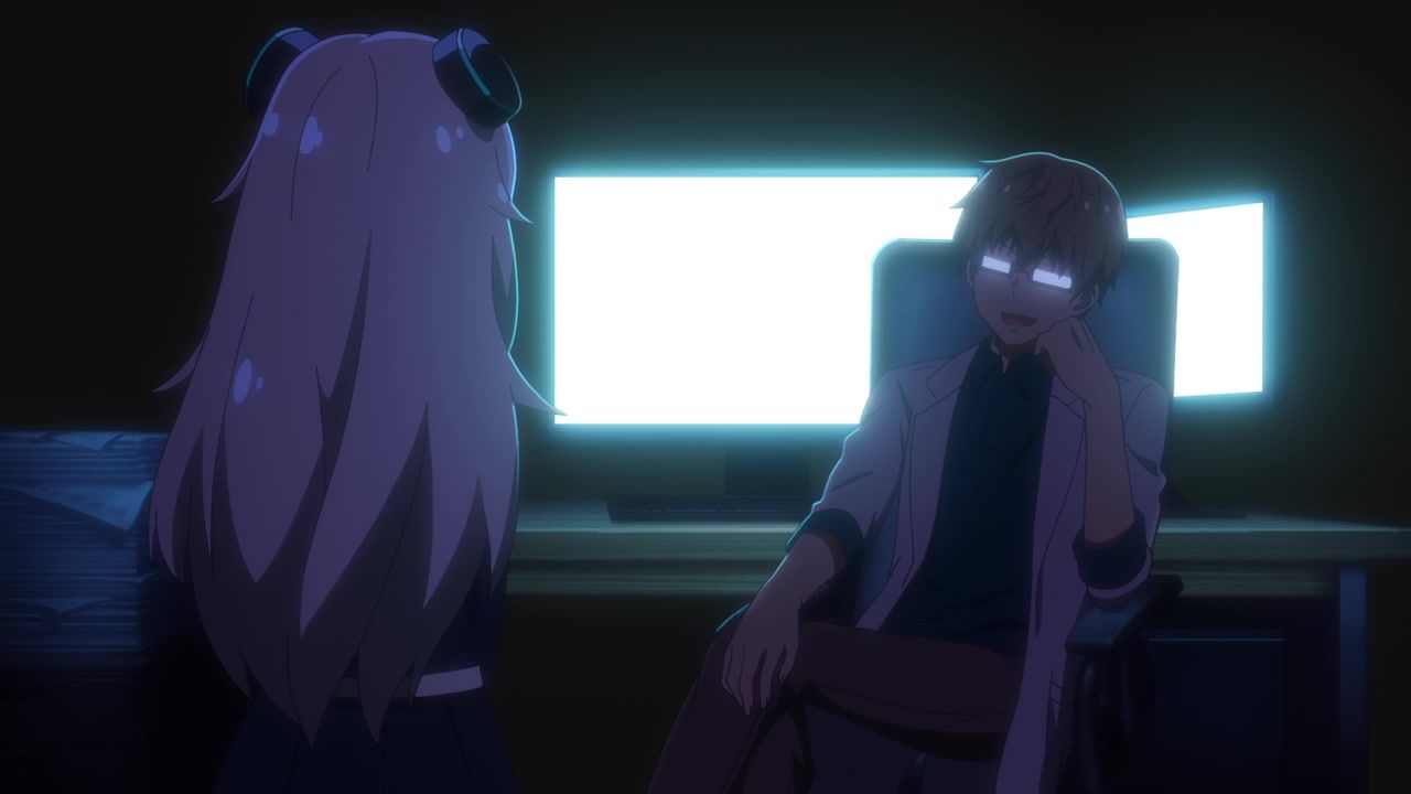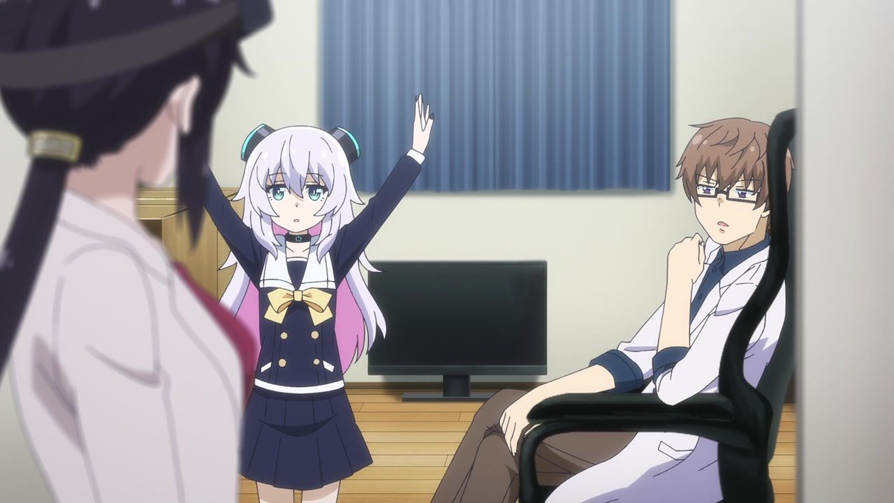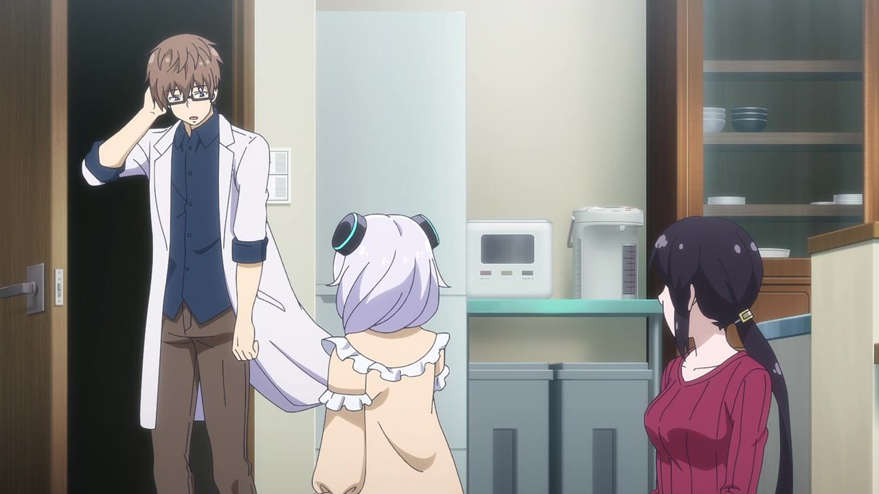 I’m going to struggle to have much to say here because there wasn’t much attempted, but also no great sins. I think it’s the failure to commit to the bit. Wouldn’t it at least have the potential to be funnier if she genuinely did inappropriately deploy heavy weaponry as was suggested for that one moment? I’m a fan of casual violence. Remember Guchuko and her casual use of beam cannons and scythes against cuckoo clocks and sliding glass doors? She doesn’t even act like a robot at all except for looking things up on the internet. The internet that contains no porn and always perfect search results. Likewise, the relationship between her two creators. Rather than just being essentially awkward teenagers, wouldn’t it have been funnier if they had hooked up at some point and were exes and bitter about it, or genuinely actually despised each other? Or Alma threatened them much more violently into it? Aren’t there so many more comedic angles available instead of… tee hee, they’re awkward.
