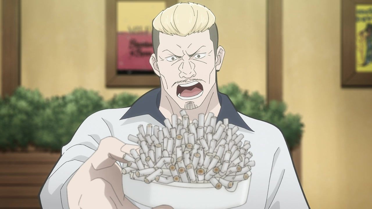 So no, one of the scant few action shows of the season does not make the most of it, and it is terrible. The pacing, which just spits out the premise in a minute long info-dump at the start and then pisses about, the characters who angrily yell out their special powers and reason for mass decapitations, and of course, the lack of animation and direction. He doesn’t behead people. They were beheaded. Off screen. No, you can’t see it. But we’ll tell you it happened, at length. Exhaustive length. It’s like the worst passive voice for story telling imaginable, but in visual form.