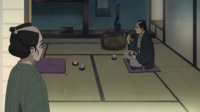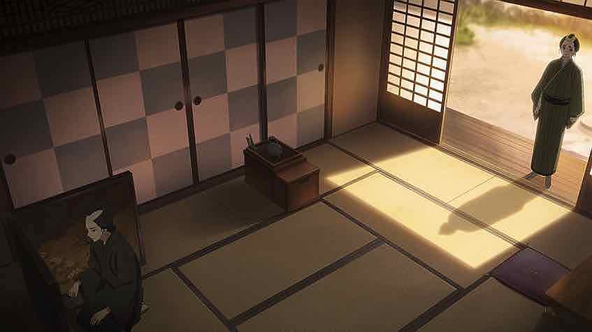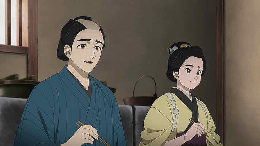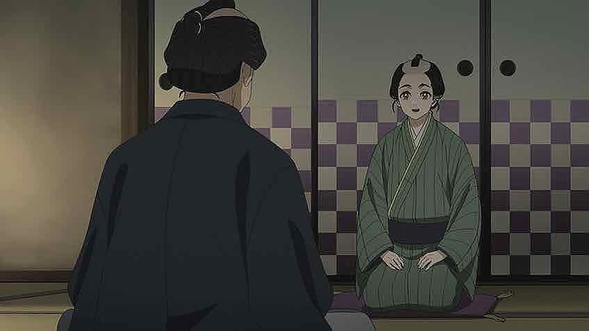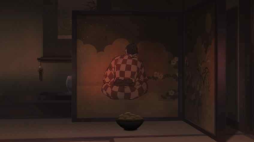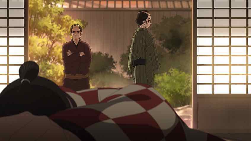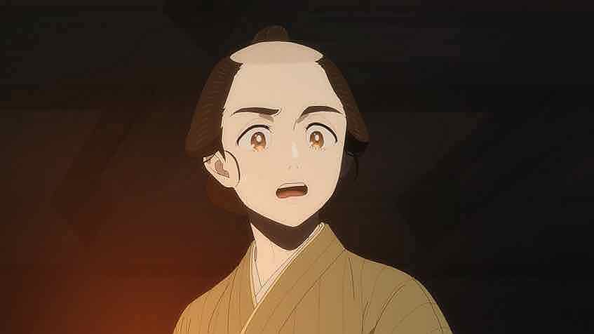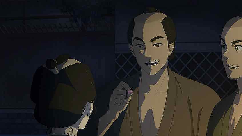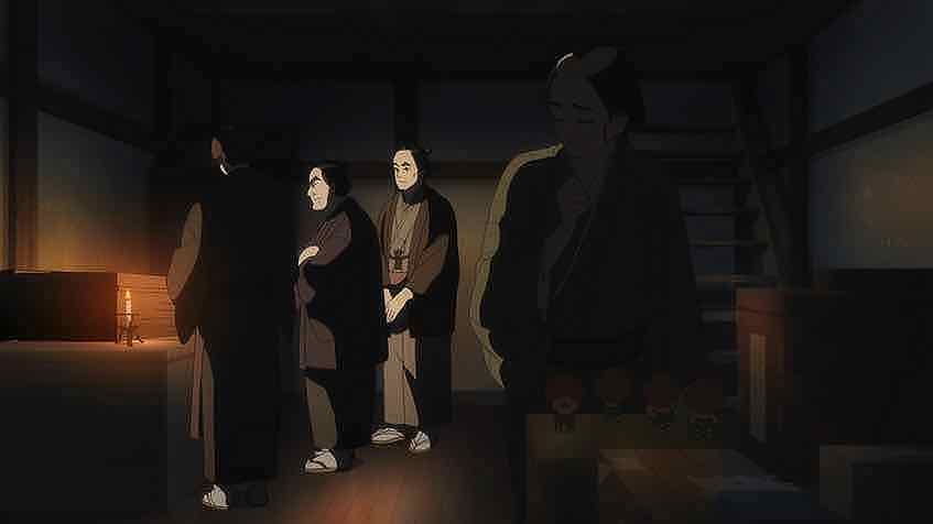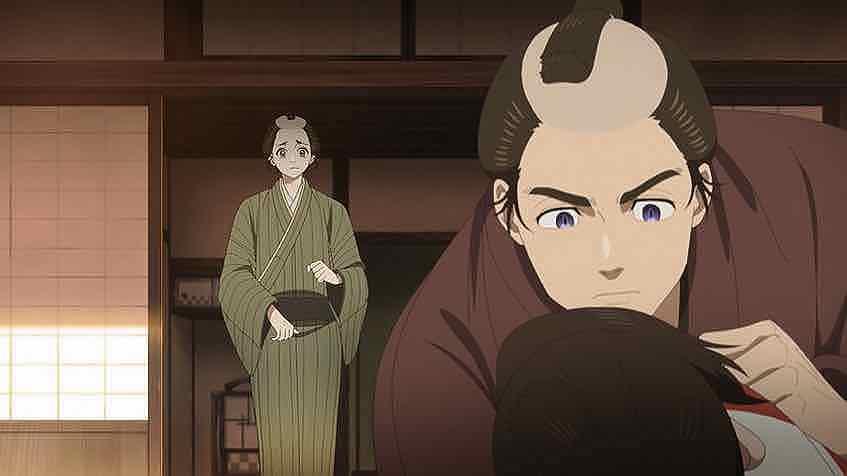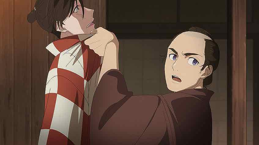 In terms of lore, we now know that Ichi has a 20 year-old half-brother, the mysterious Matsunosuke he’s been sneaking out to see. This is a common tale of the time – the product of an affair, stashed away in relative poverty, out of sight. Obviously Ichi has been forbidden to see him but defies his father. I like that he has a defiant streak – he’s smart and at the age where the man inside him yearns to break free, but he’s even more stifled than most in his position would be (which is a lot). We also saw a mummy being received as a mysterious “Kura #3” delivery, selling at a huge price and implied to bestow longevity (further implied to be a con). And we learned that the beheaded carpenter’s tools were stolen and sold off piecemeal, and that neighborhood pets are being killed and beheaded.