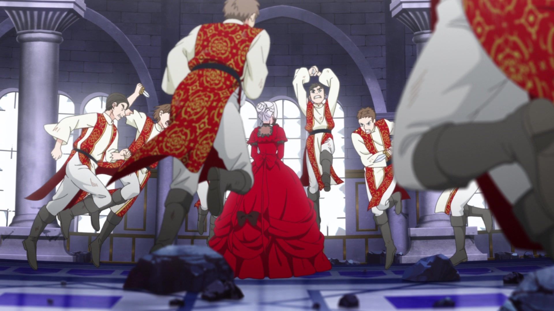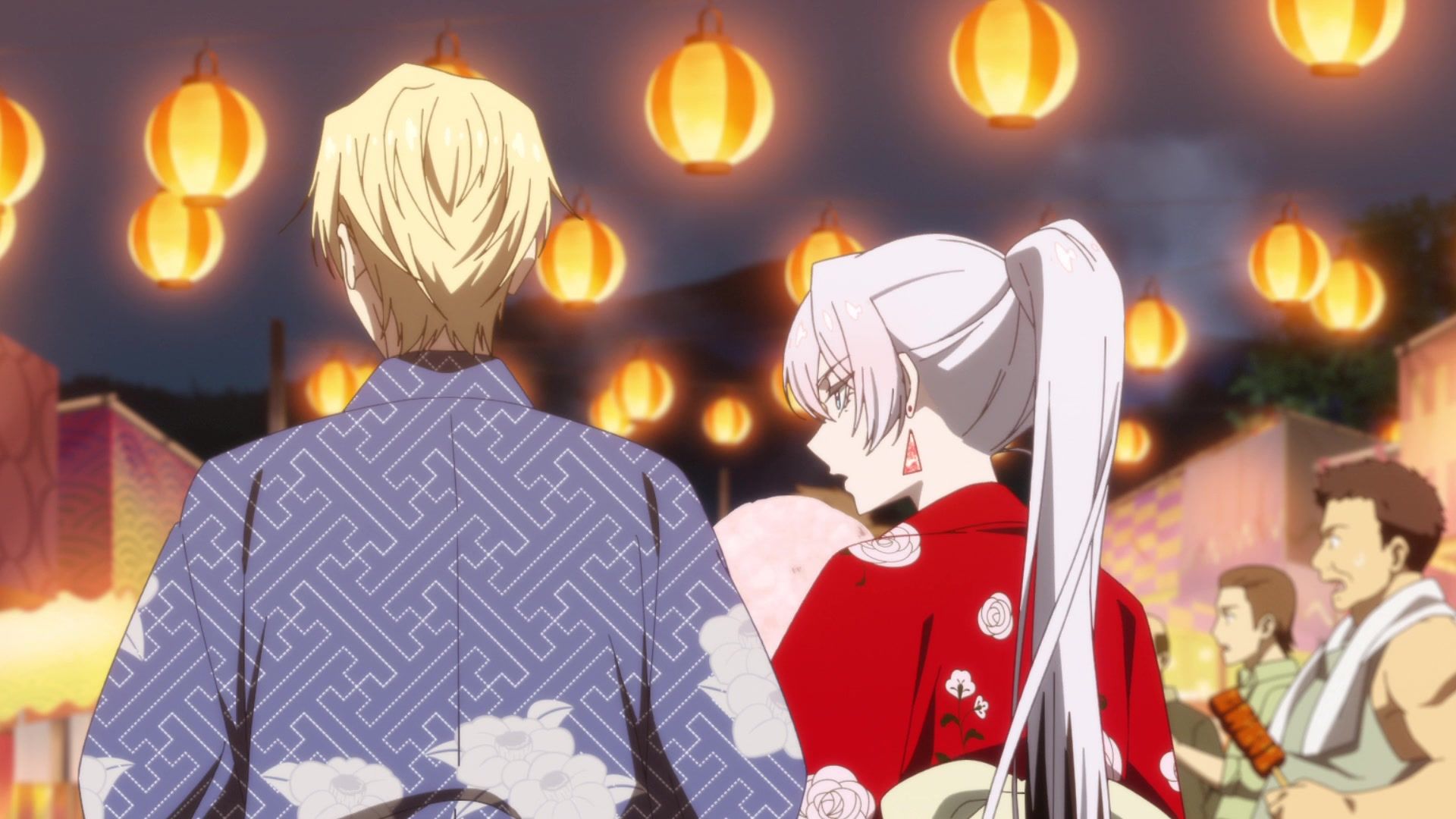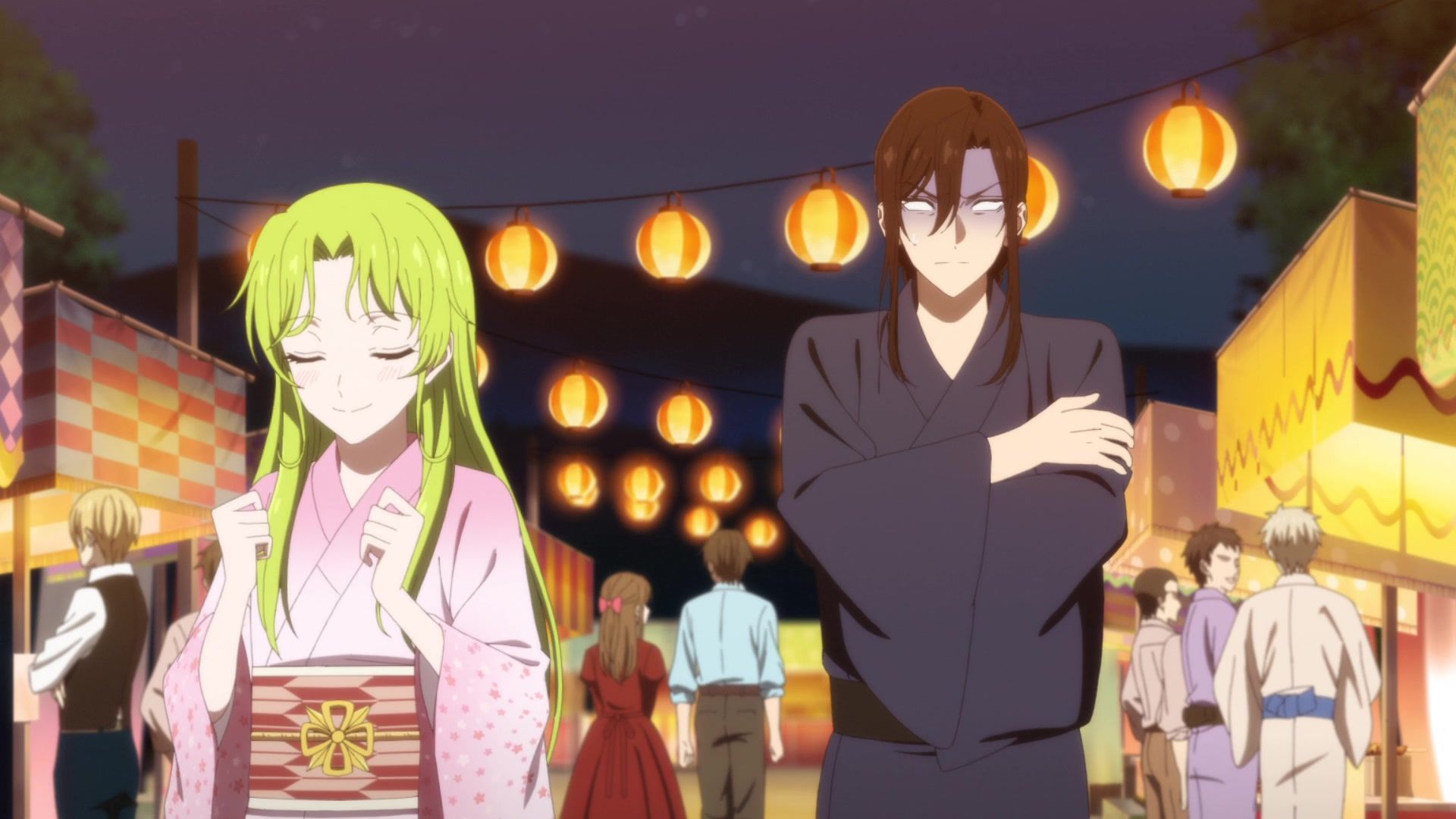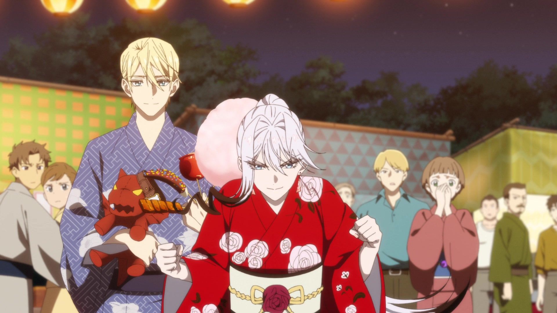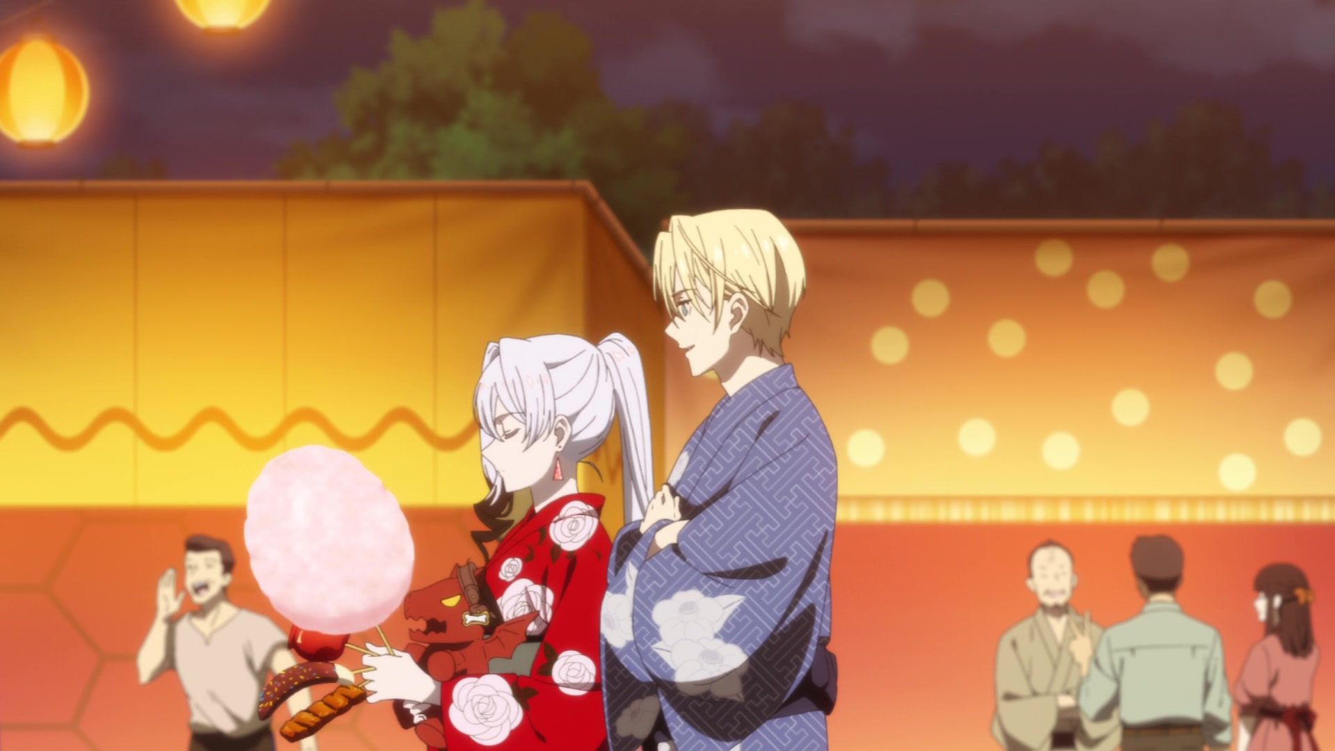But hey, that’s an entire paragraph on the first three minutes of the episode, which is itself a big goddamned problem, because the entire rest of the episode is yet another date. In this medieval European setting, it’s time for a traditional Japanese festival, complete with yukatas, chochin lanterns, okame masks, the works. Eat your soba, Duke von Fancyshire. The cultural mess is almost enough to distract you from most of it being a lovey dovey date between her brother and a kid. Oh those silly royals. Good thing they’re beating up the right criminals.