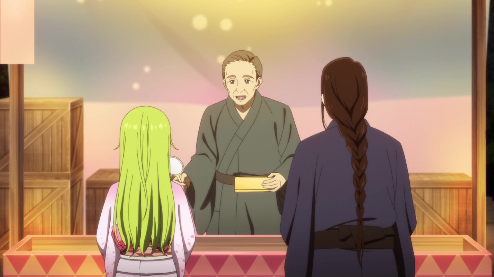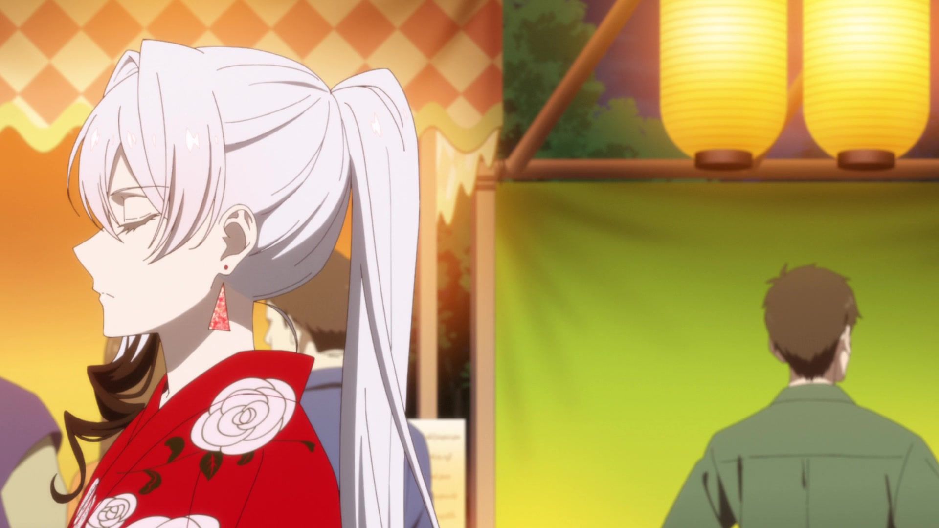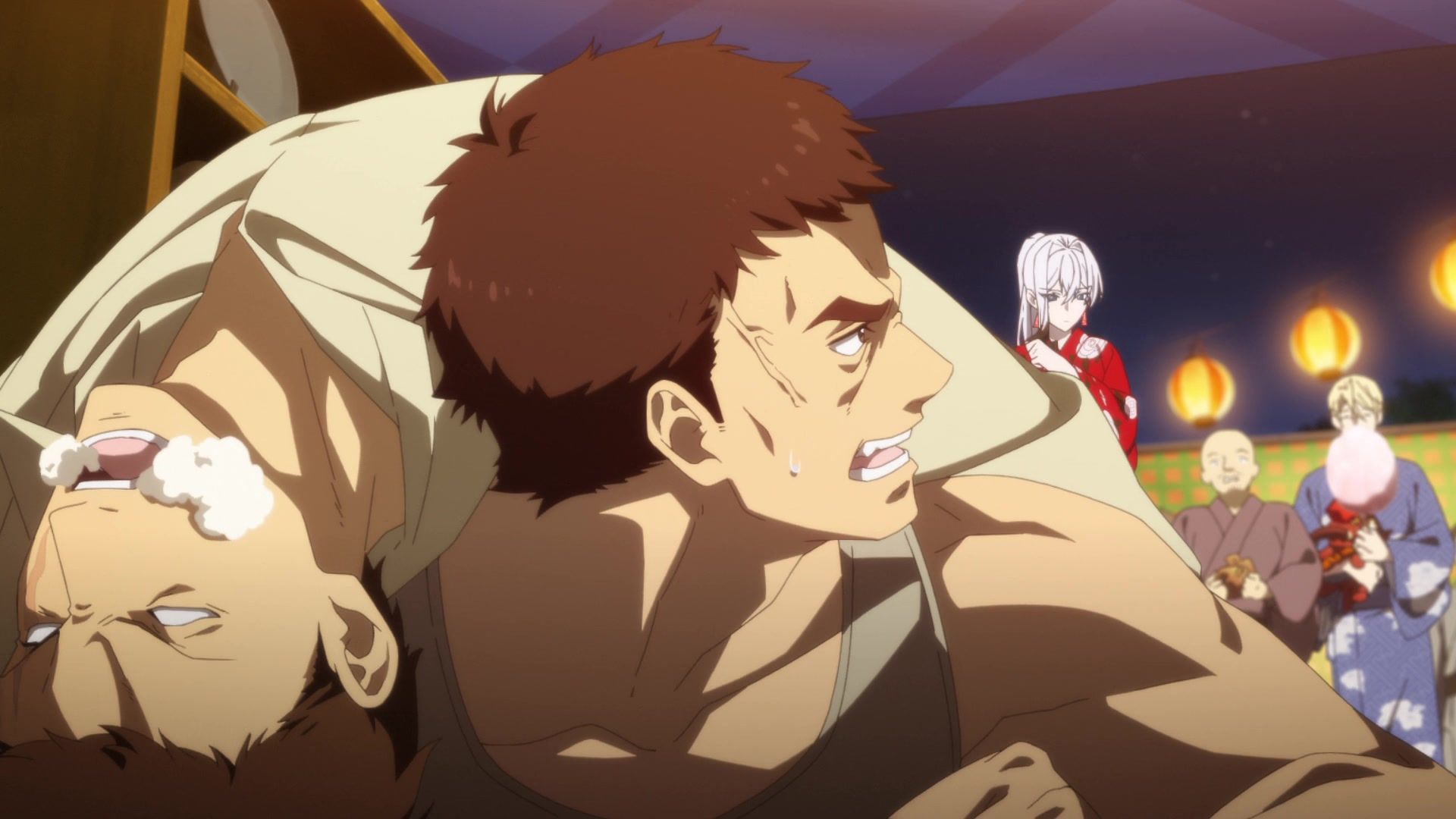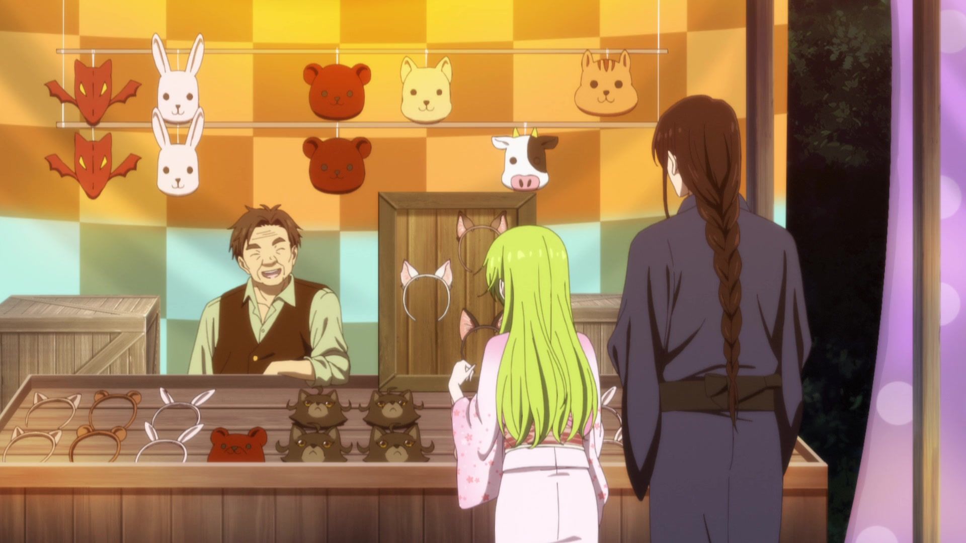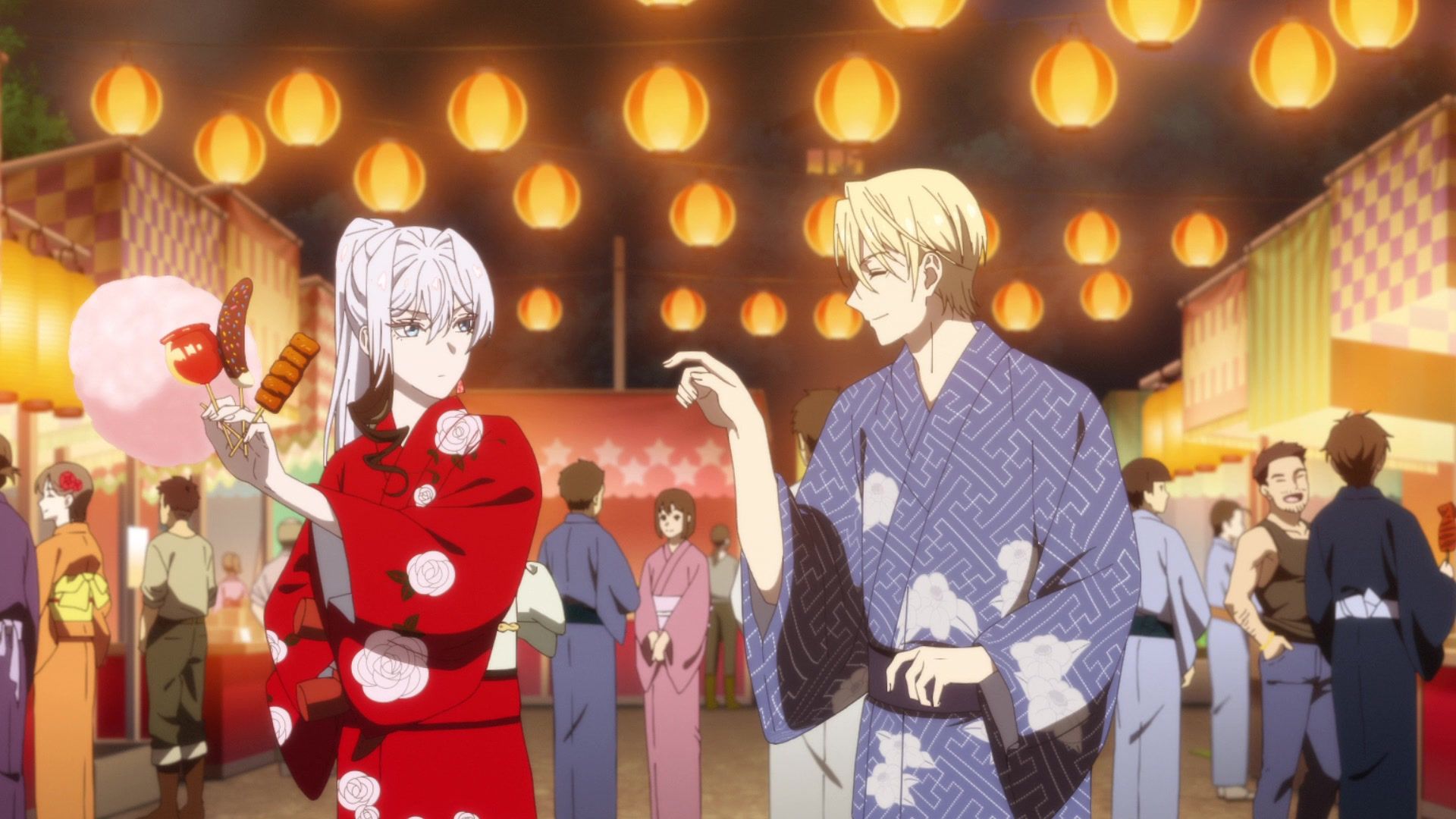 But hey, that’s an entire paragraph on the first three minutes of the episode, which is itself a big goddamned problem, because the entire rest of the episode is yet another date. In this medieval European setting, it’s time for a traditional Japanese festival, complete with yukatas, chochin lanterns, okame masks, the works. Eat your soba, Duke von Fancyshire. The cultural mess is almost enough to distract you from most of it being a lovey dovey date between her brother and a kid. Oh those silly royals. Good thing they’re beating up the right criminals.