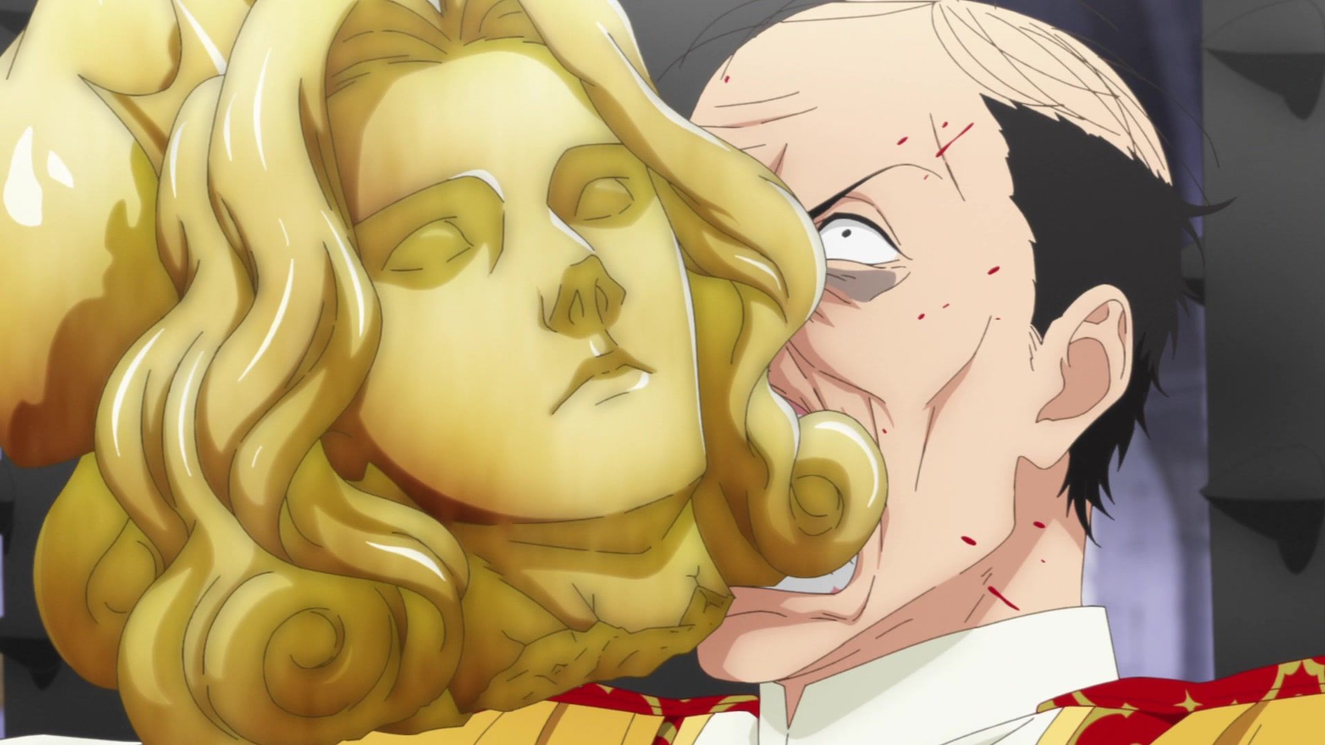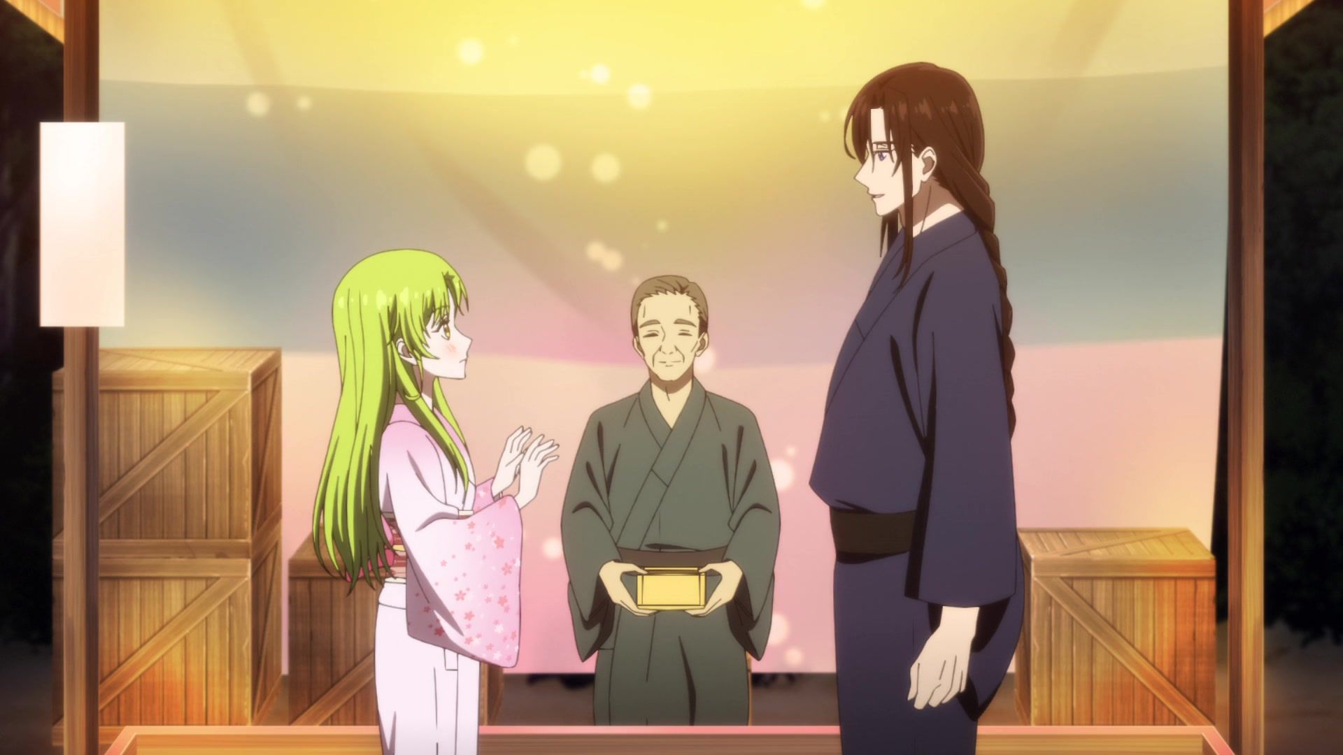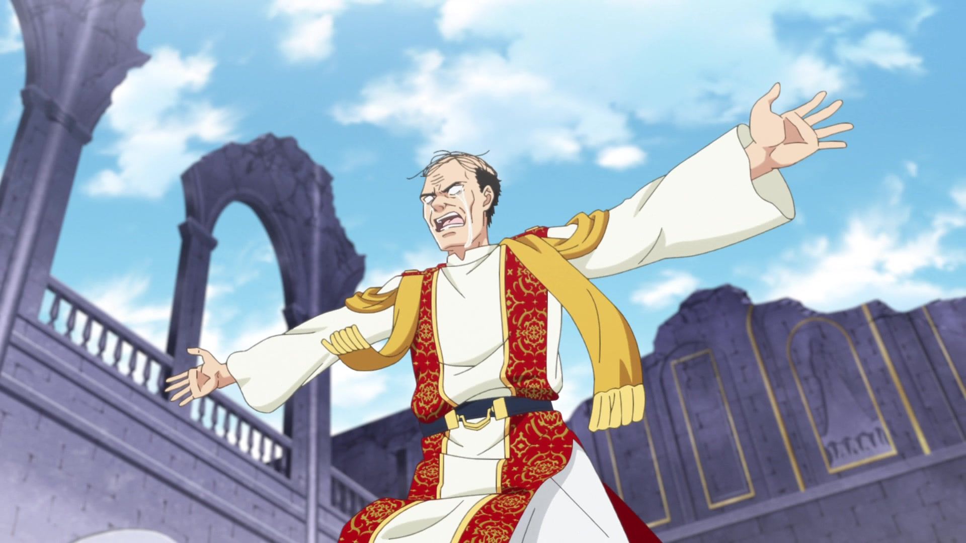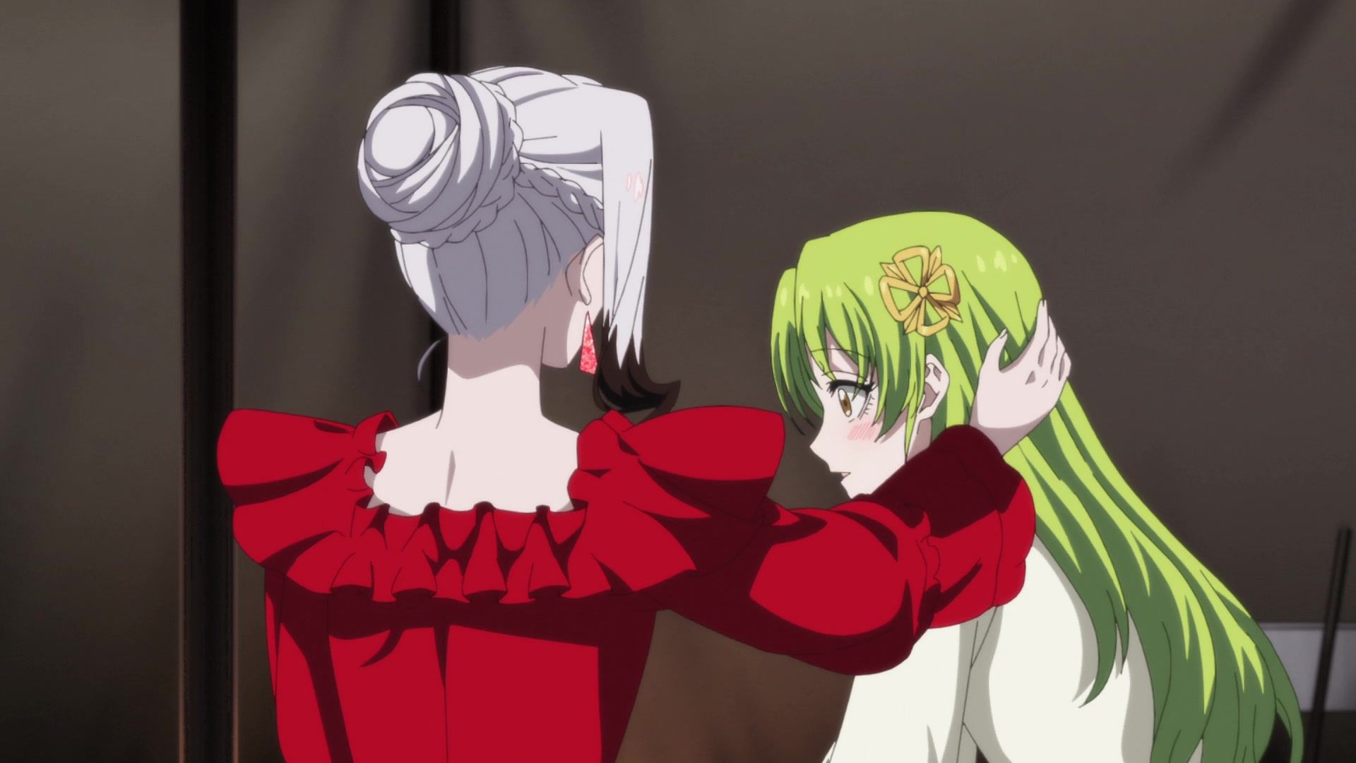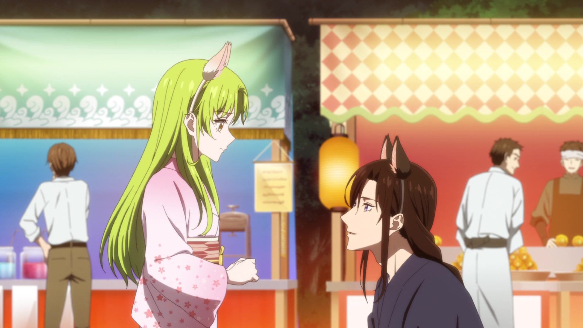 But hey, that’s an entire paragraph on the first three minutes of the episode, which is itself a big goddamned problem, because the entire rest of the episode is yet another date. In this medieval European setting, it’s time for a traditional Japanese festival, complete with yukatas, chochin lanterns, okame masks, the works. Eat your soba, Duke von Fancyshire. The cultural mess is almost enough to distract you from most of it being a lovey dovey date between her brother and a kid. Oh those silly royals. Good thing they’re beating up the right criminals.
