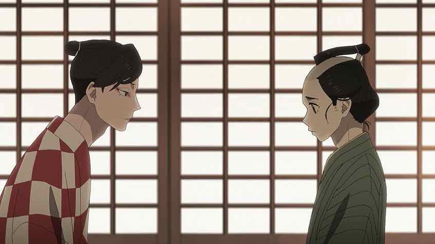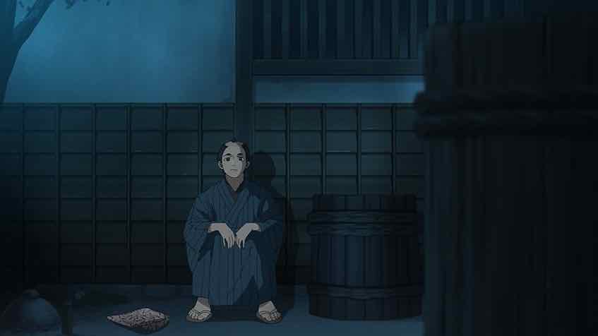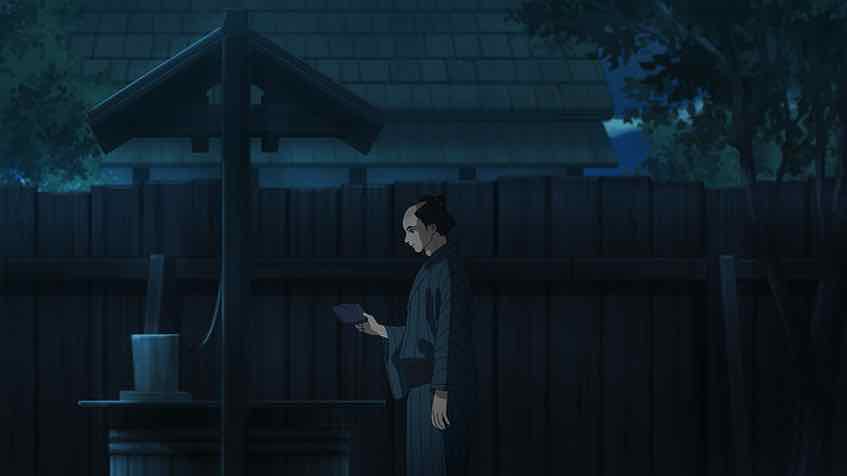 There’s a nice – if not exactly subtle – bit of filmmaking here as we see the shadow of the moonlight reflect Matsunosuke’s flirtation with darkness. The implication here is that the danger of that has passed, and his upcoming trip to Nagasakiya suggests that he and Ichitarou are finally going to meet face to face (and we’re going to learn the truth of the whistle’s significance). The two of them are fundamentally decent lads, I think that’s clear – Matsunosuke has been shaped in part by the harshness of his life. And Ichitarou is extremely clever, perhaps enough so to conceive a way for the pair of them to emerge from the harsh reality than entangles them both.