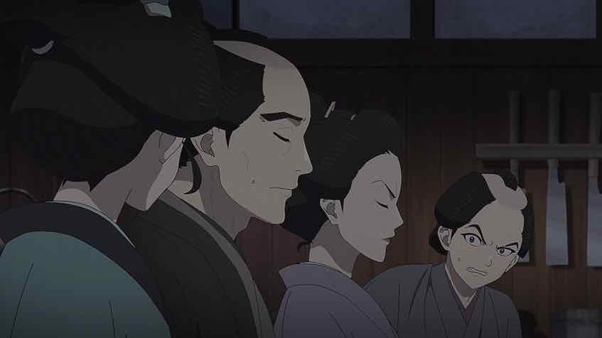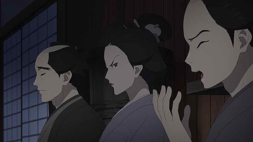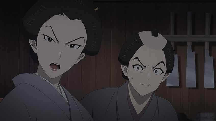 Cat-killing is seriously ugly and twisted, and it gives this whole episode a creepy and depressing air. That it’s all being done for the sake of machinations is even more bleak. The cooperage’s daughter, Omichi, initially comes off as a sweet girl who’s interested in Matsunosuke. The mother is a total shrew, the father a dithering weakling, and the son a petulant and spoiled brat. As it turns out though Omichi is the worst of the lot. She was the one who started the whole cat-killing thing as a means of entrapping the bantou (head clerk). The long game there was to ingratiate herself to Matsunosuke by defending the bantou, and use him as a means to connect to Ichitarou (who’s her real target).