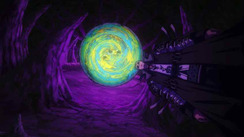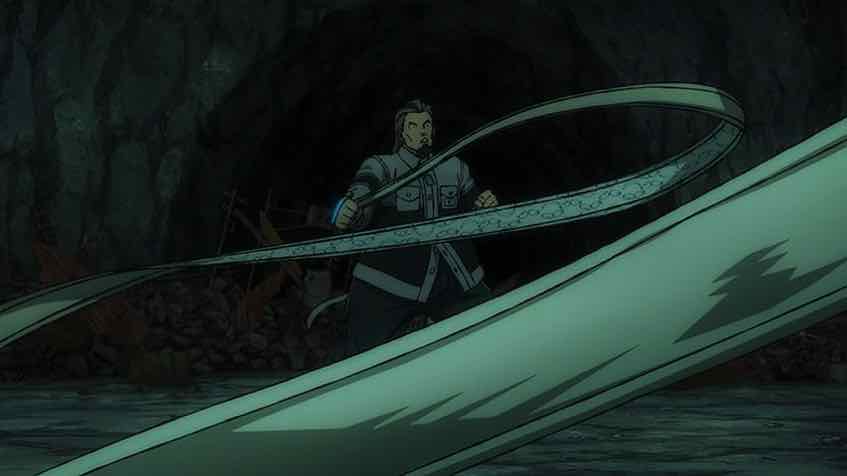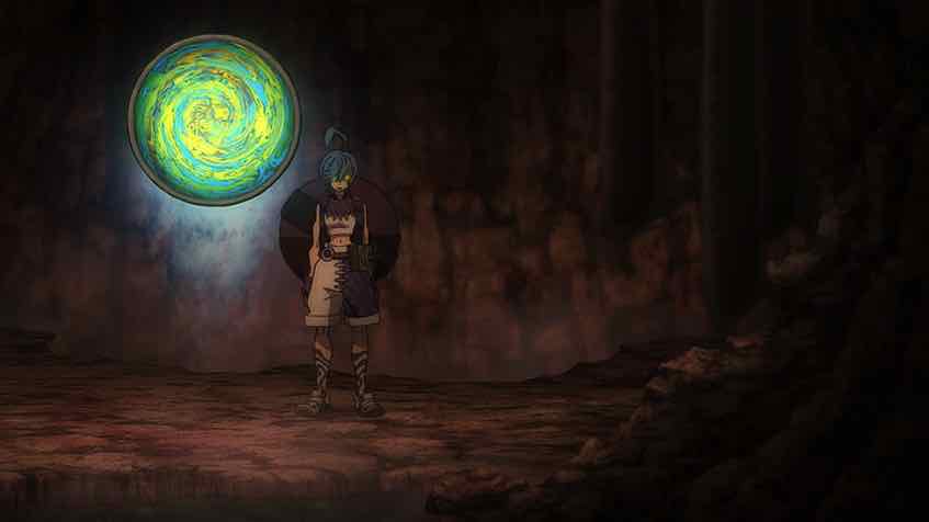 Making an ally is what Zodyl is trying to do with Rudo in the very eye of the storm. The argument he makes is not entirely without validity. If indeed Rudo’s goal is to reach the Sphere and enact his revenge, Zodyl plausibly offers the fastest and easiest path to get there. The rest of his case is weaker, though – because it’s one that makes sense for him, not for Rudo. To Zodyl friends might seem like dead weight, a needless encumbrance (so why the seeming loyalty from the Raiders?). But it’s different for Rudo, who’s only ever been offered belonging by Regto. How can he honor that memory if he throws away his friends in order to avenge it?