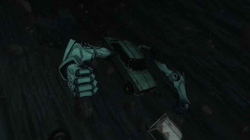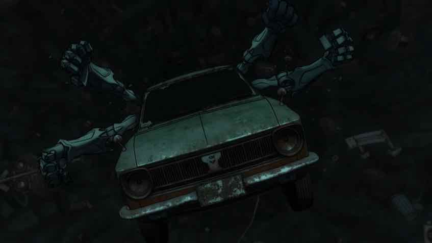 Even Bundus appears to have been caught off guard by the giant trash beast actually taking flight. This, Zodyl says, is because the trash storm comes every six years and he’s engineered it to be able to surf it to the Sphere – though whether his team knows that isn’t spelled out. The chaos that ensues pretty much nullifies Dear’s ability to manipulate events with “Drain”. He’s got all the material he could wish for to punch, but when you’re in free fall that doesn’t matter. Eventually the Bro bros and Bundus wind up in a junked car, their fates thrown together in a bid for survival.