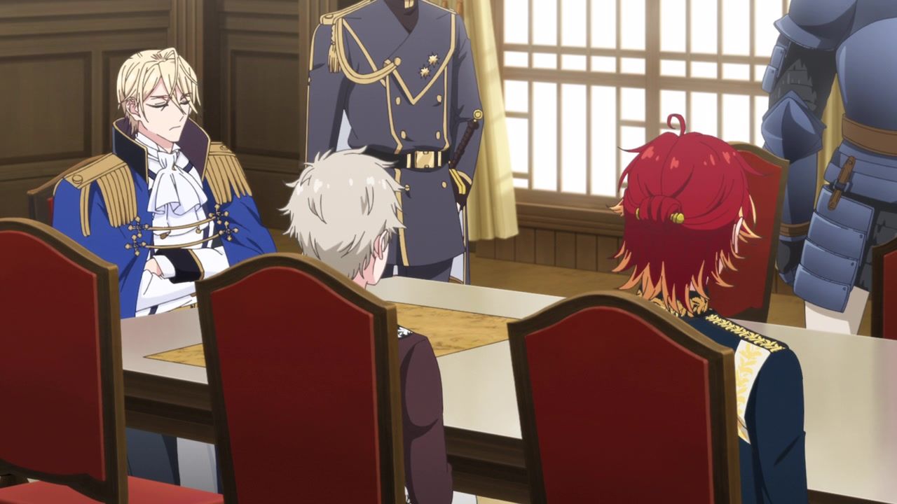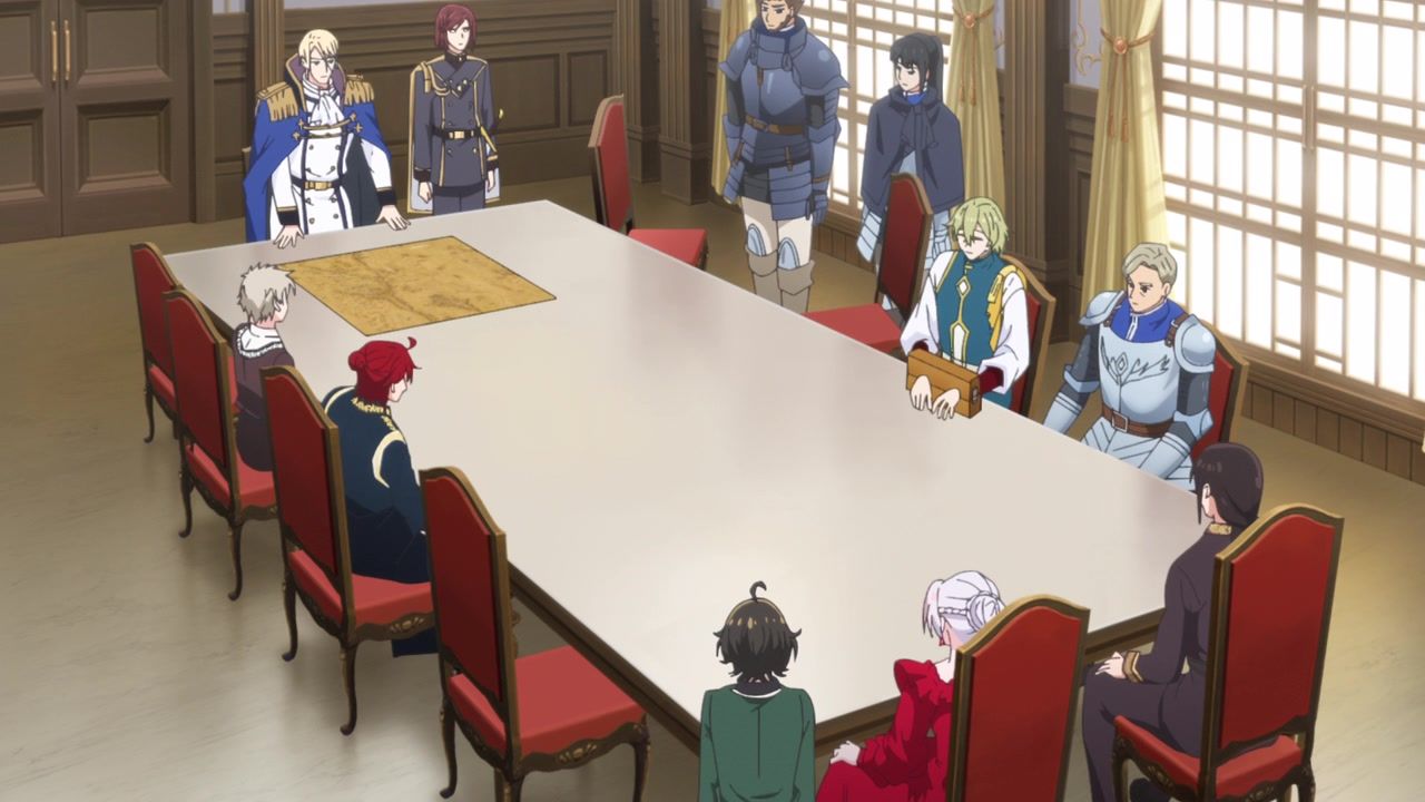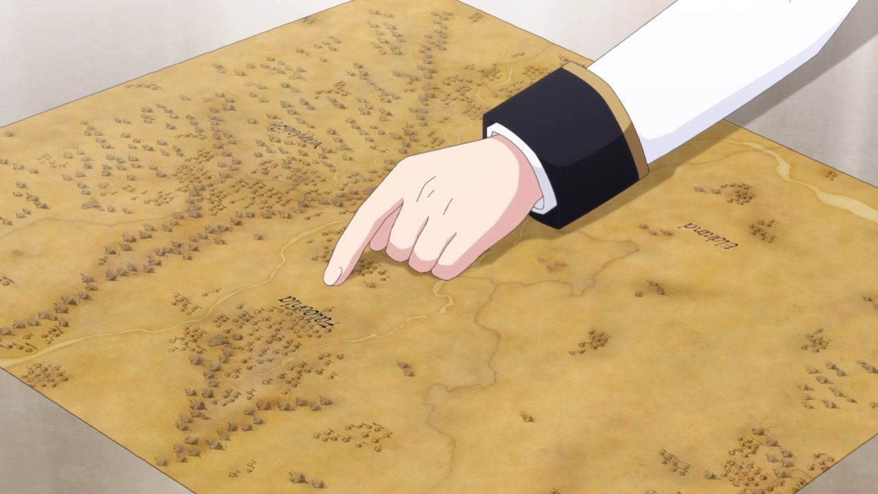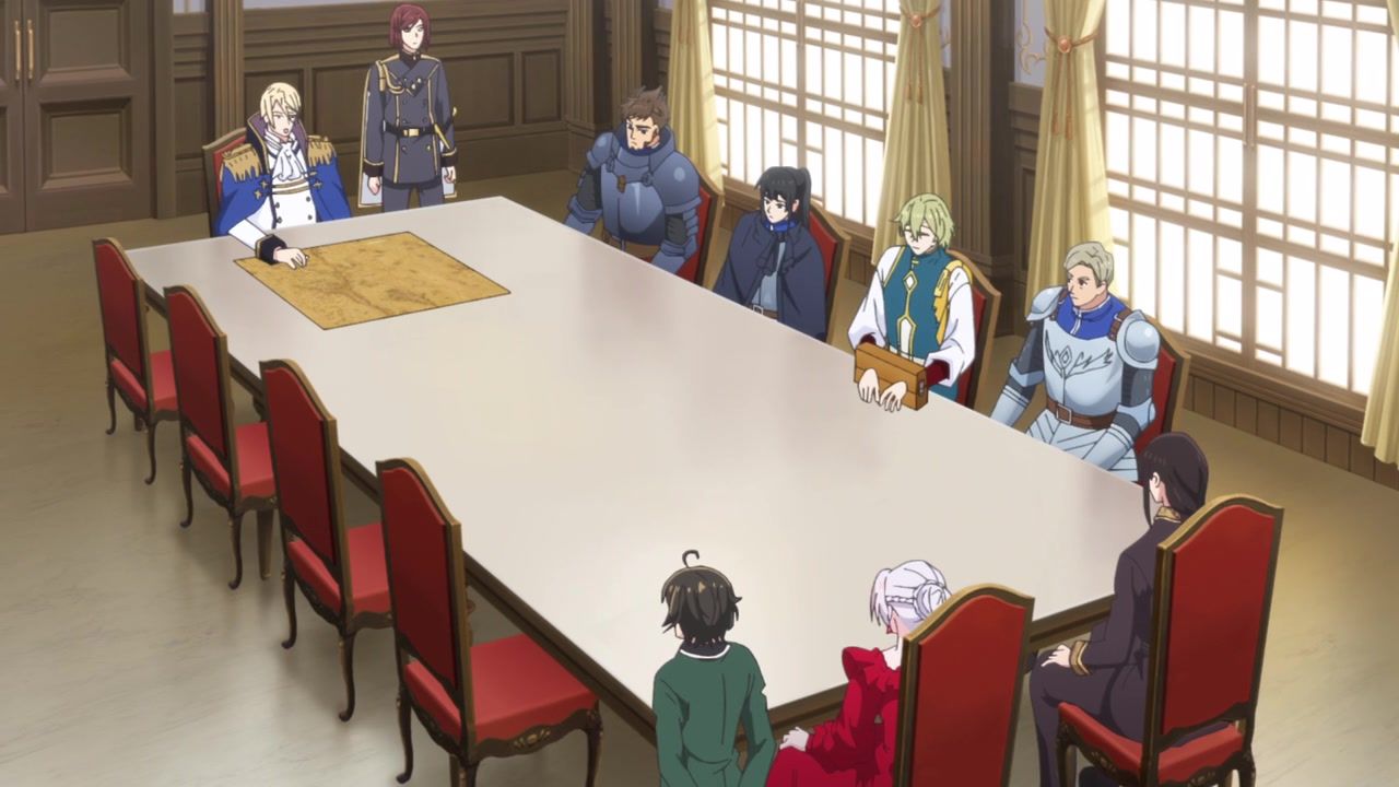 It really is kind of incredible how far this has lost the thread of its beginning, and how it really seems determined to compete with the android show for which can piss around the most and be worse written. Two goddamned thirds of this episode is spent in a goddamned meeting. The monster armies are approaching! They’re bearing down on us at any moment! But first, let us away halfway across the country, put on our fanciest of fineries, have some tea, and discuss the situation. Look at our maps. They’re so parchmenty. And how big our table is, with everybody sitting on one side for some reason, so nobody can appreciate this map. This entire bit just to rehash the one gag character from episode 3? Are you serious here? Are we really doing this?