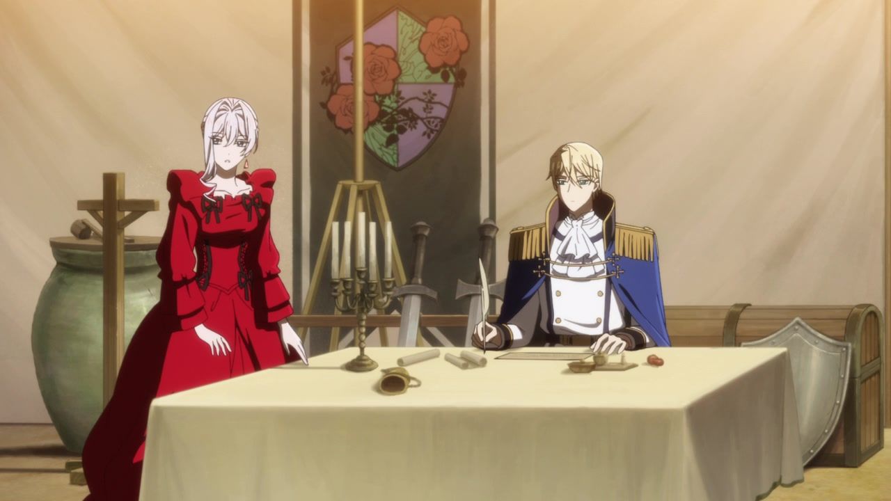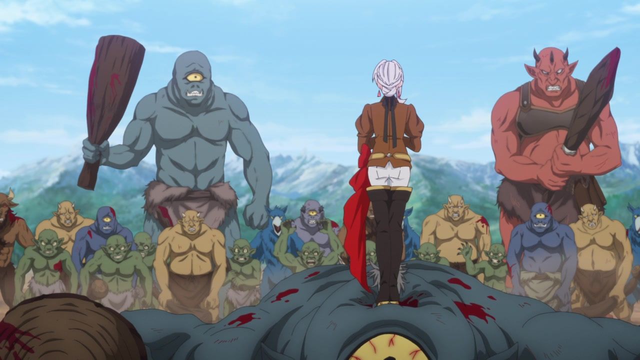 Anyway, that was the highlight, and it was over after about three minutes when the OP played. A couple times after that, it claimed it was about to have some punching, but then smash cut and everything had been punched off screen. No, you can’t see it. It happened. Those rotten primitive monsters got their due for being ugly and evil. By halfway into the episode, everybody was once again in their fanciest of dresses and back in the endless bureaucratic meetings of the tortured souls, as usual. Which is where it remained until the episode had entirely run its course. Remember when this show was briefly about punching corrupt nobility? It sure doesn’t. Please just end already.