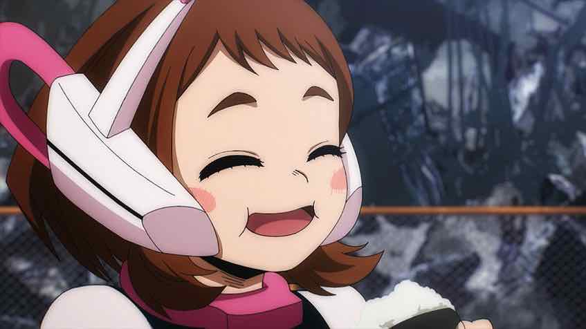 Back at school, the incoming first-years are hero-worshipping the veterans of the great battle. This is pretty uncomfortable for most of them, not least Bakugo. Edge Shot is still in reduced mode, but he assures Kacchan that he intends to return to his full form, which would no doubt ease the guilt Kacchan is feeling over his sacrifice. That guilt is nothing next to Ochaco however. For her, the knowledge that Toga-chan paid the ultimate price so that she could live is a weight that she’s going to have to learn to live with. Toga was a villain who did a lot of really bad things, but Ochaco is who she is – she leads with empathy and leaves herself wide open for the counter-punch.