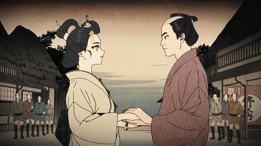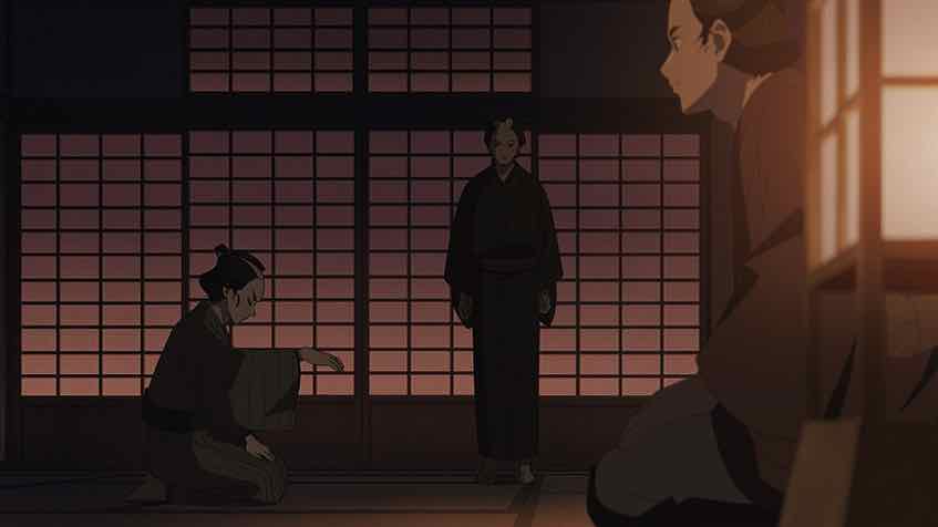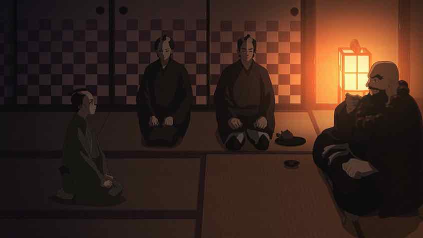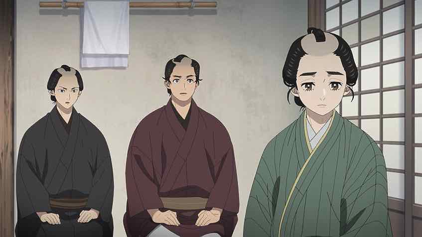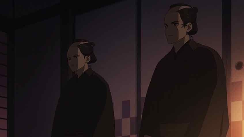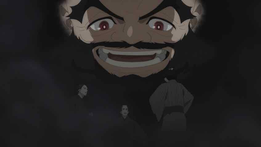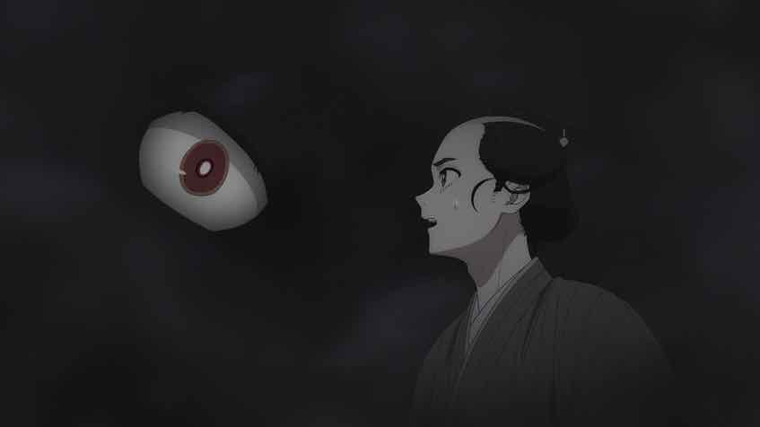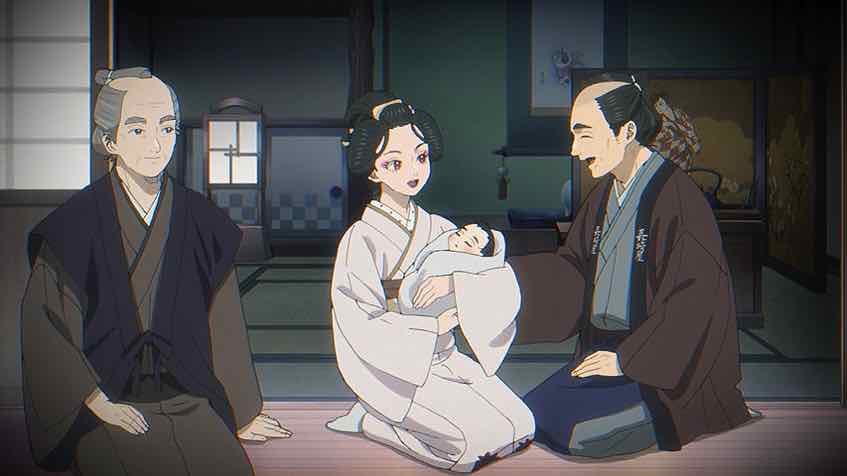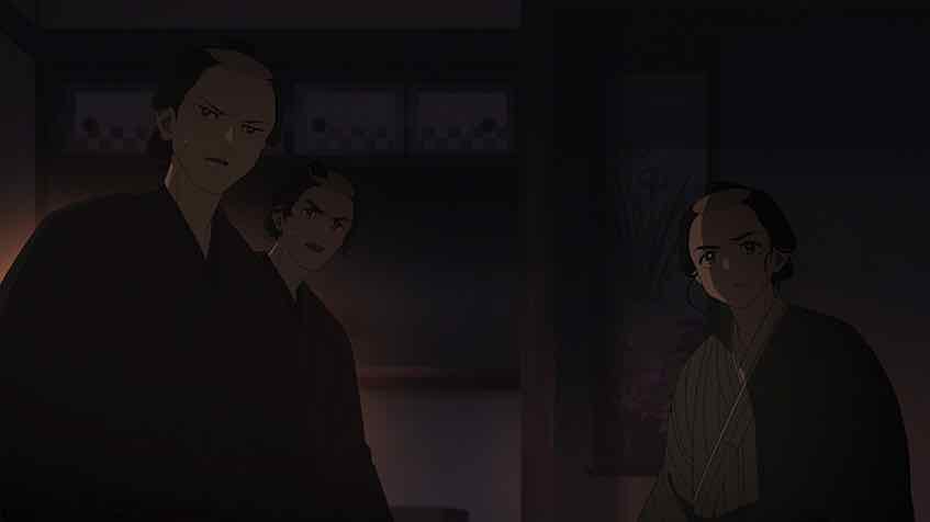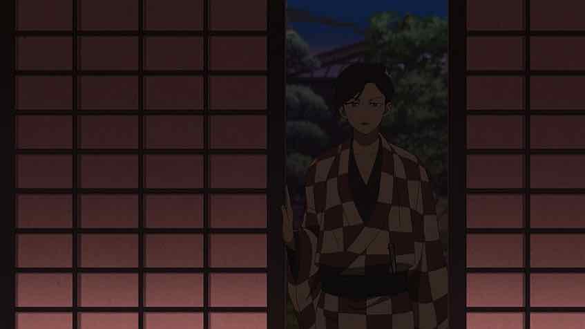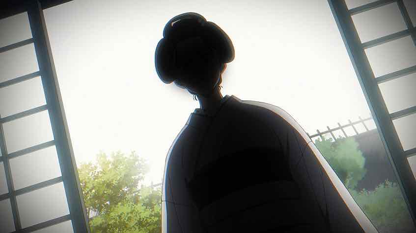 Like a breath of fresh air the Mikoshi-nyuudou sweeps into Nagasakiya, bringing the refreshing scent of truth. Mikoshi-nyuudou (in youkai folklore a tall monk-like figure who gets taller the more you look up at him) is here at the behest of Ichitarou’s grandmother, and Sasuke and Nikichi look none too glad to see him. The grandmother is Ogin, whose name has been dropped before. But what’s new is the information that she is, in fact, an ayakashi – one that’s three millennia old. That doesn’t technically make Ichitarou one too, Mikoshi-nyuudou notes – such unions have happened since time immemorial, with the results being human. But humans with something special about them, to be sure.