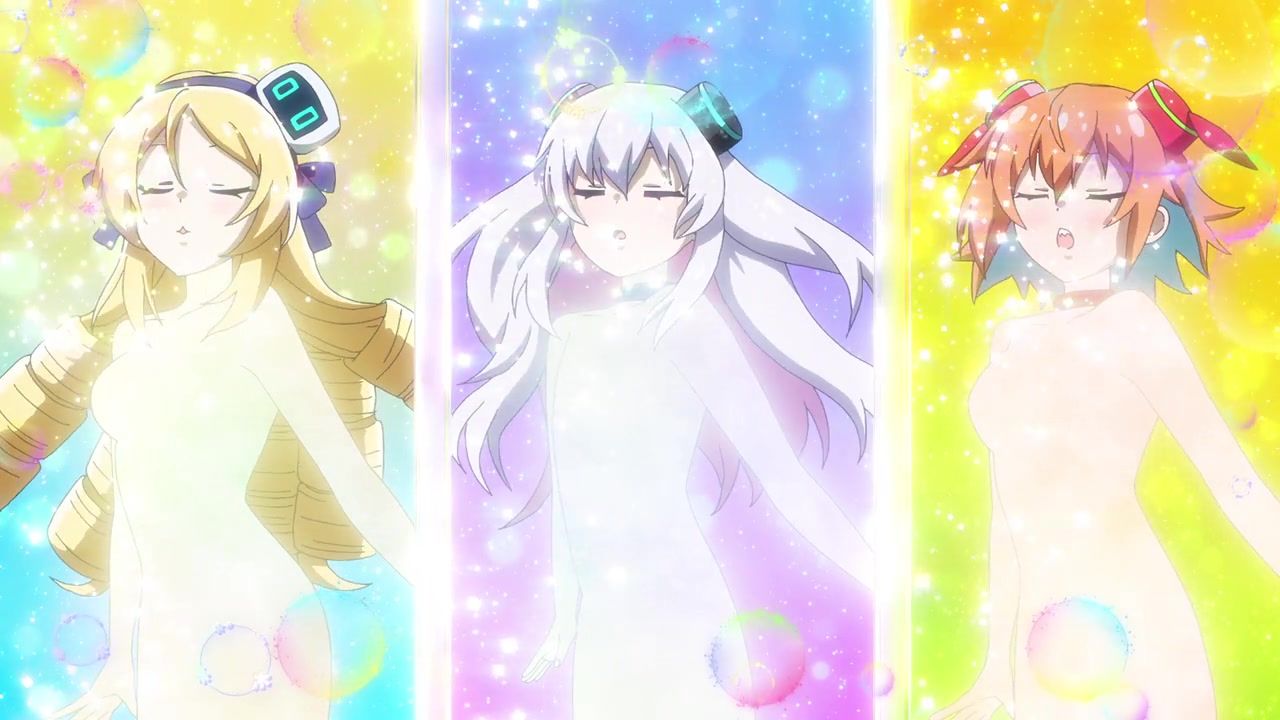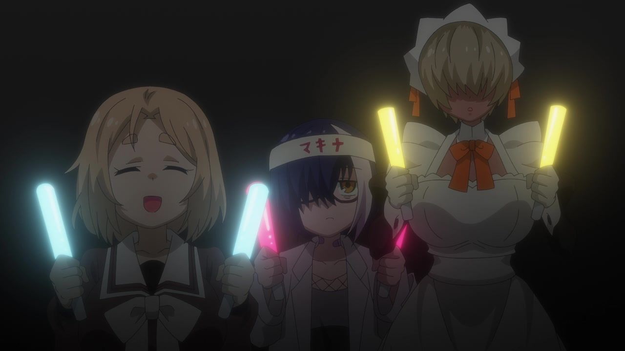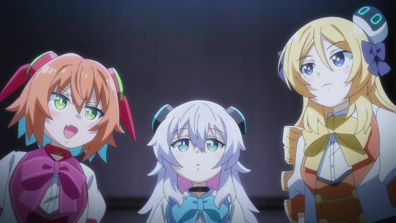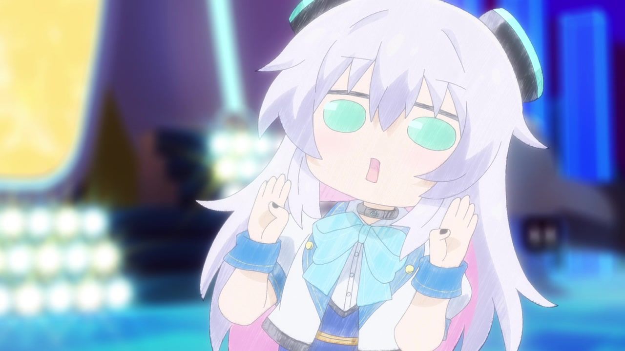 An extra long idol segment that goes for two thirds of the episode. My favorite thing in the world ever. The production and variation was a little higher than the vampire show, I guess, and I can see the vision behind “we are enslaved to the idol industry and have to sell singles, so crowbar this crap in however we can.” If you can even call that a vision. But mostly, it was the same generic idol montage as ever. Oh, they say it’s streamers, but what are streamers now except a different flavor of idol? Particularly when they put on idol costumes and have a little concert. Not even really doing robot stuff. It seemed like they started out, but then the second Machina pops her head off, that’s apparently a full channel ban. I’d say I lost the thread here, but I was checked out of this freaking 15 minute segment about two minutes in.