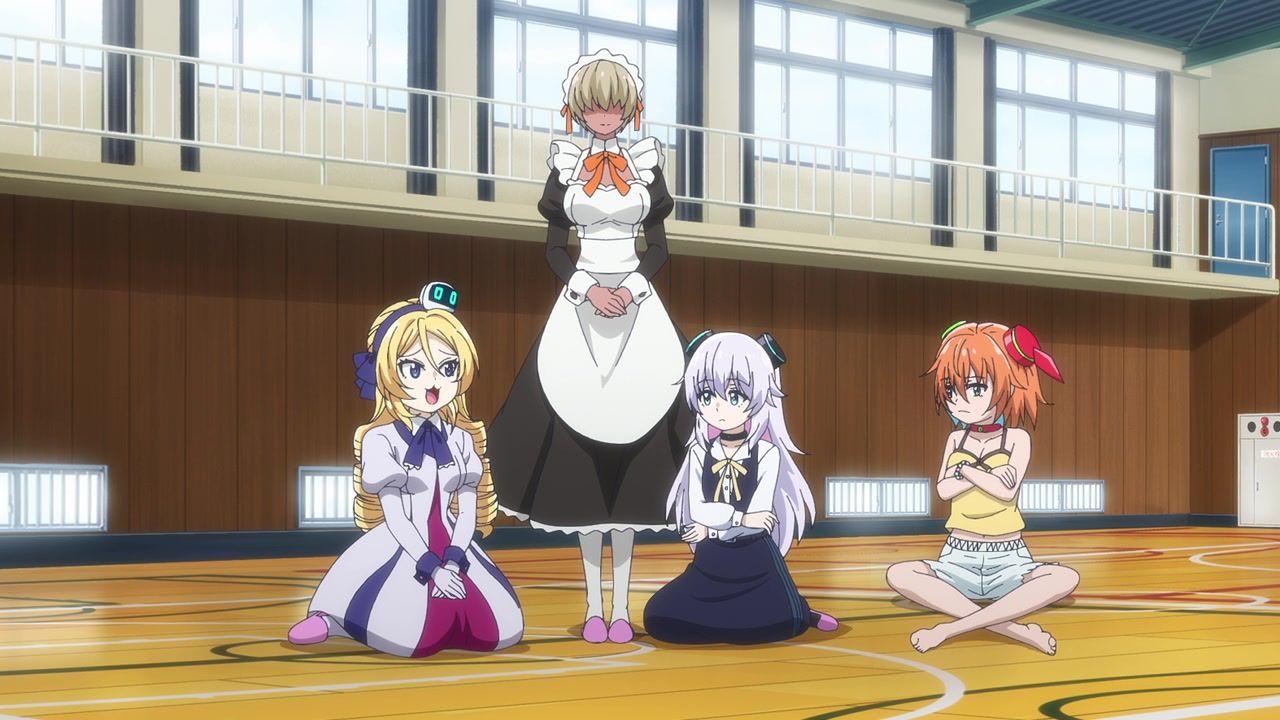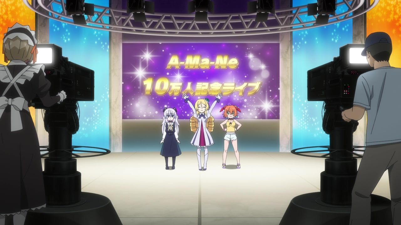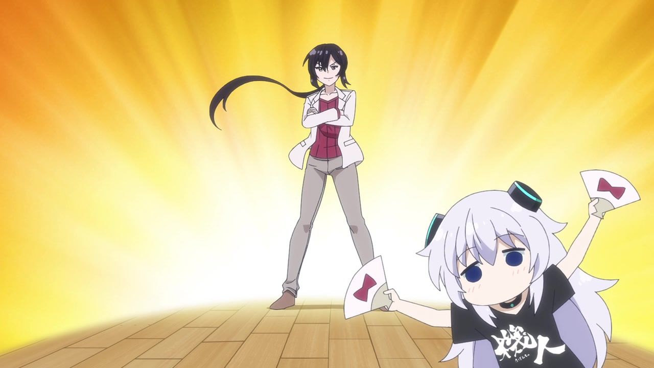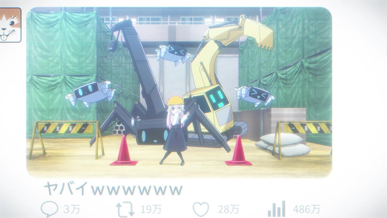 An extra long idol segment that goes for two thirds of the episode. My favorite thing in the world ever. The production and variation was a little higher than the vampire show, I guess, and I can see the vision behind “we are enslaved to the idol industry and have to sell singles, so crowbar this crap in however we can.” If you can even call that a vision. But mostly, it was the same generic idol montage as ever. Oh, they say it’s streamers, but what are streamers now except a different flavor of idol? Particularly when they put on idol costumes and have a little concert. Not even really doing robot stuff. It seemed like they started out, but then the second Machina pops her head off, that’s apparently a full channel ban. I’d say I lost the thread here, but I was checked out of this freaking 15 minute segment about two minutes in.