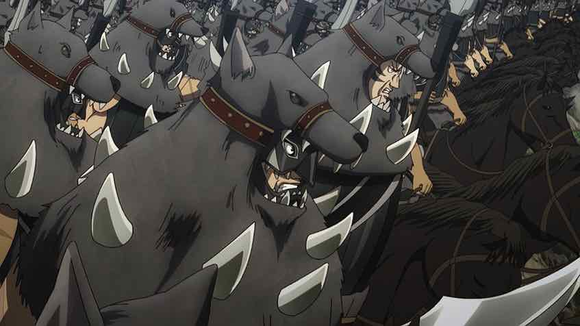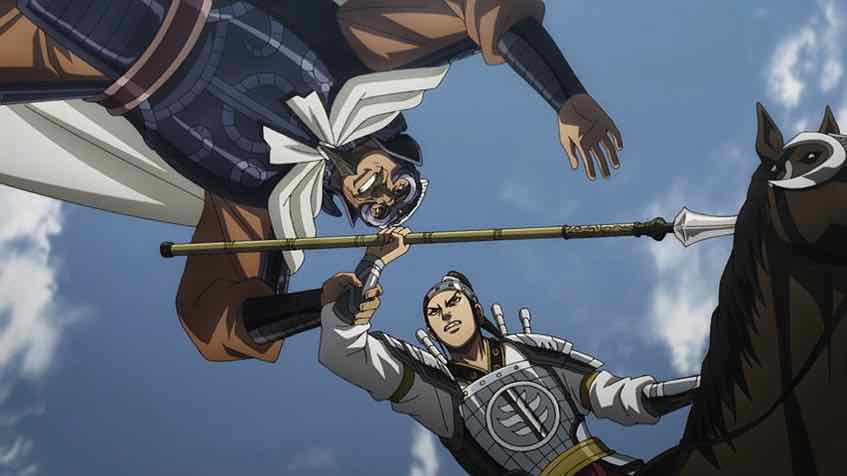 The Yanmen Ma Nanci refers to is often called “The First Pass of China” – part of the Great Wall now, and a frontier against the fierce Xiongnu people of the North. He name-drops it to make a point about Zheng – “more hateful even than the Xiongnu” for wanting to crush six nations under his army’s boot. The sort of single combat that takes place between Ma Nanci and Wang Ben (and eventually Ya Guong) is a bit of a dramatic conceit for Kingdom, but that it is dramatic is undeniable. Wang Ben more than holds his own but the tide of battle washes over before the pair of them can settle their score.