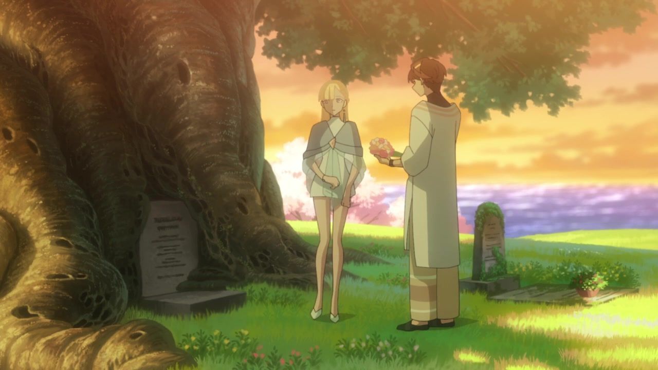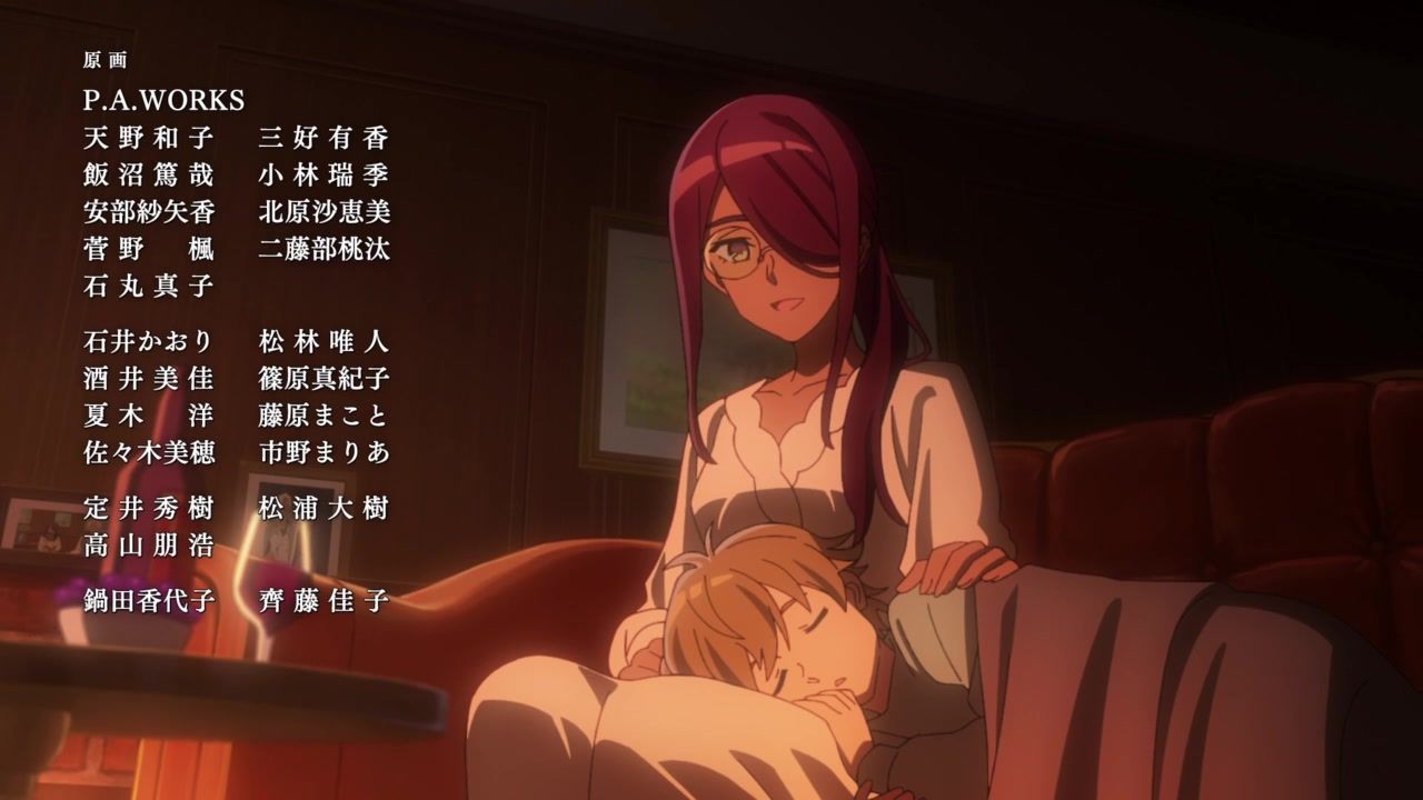 Instead, what do we get? A goddamned bizarre diatribe from a literal ancient corpse ranting about how marriage is evil and needs to be destroyed to make way for polygamy free from the stigmas of incest and… uh… polygamy? Yes, seriously. The old guy is the real Akira, who abolished marriage to create “LC” so he could spy on his android children having sex with each other. Yes, seriously. If you were hoping for or expecting anything about Towasa, get bent. She sends a missive from beyond the grave that she loved him. That’s the big secret. PA Works, hire some actual damn writers already.