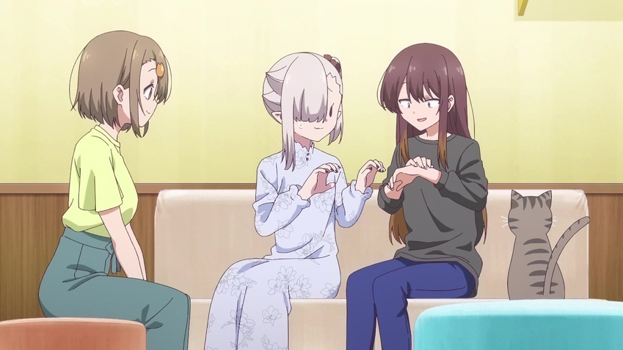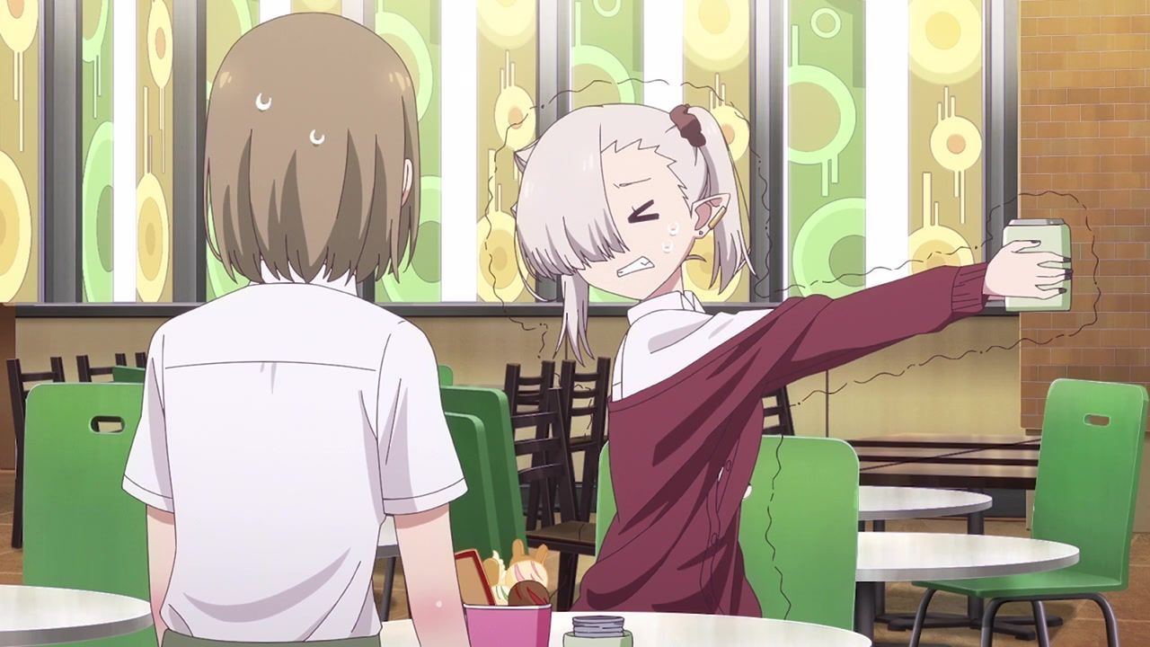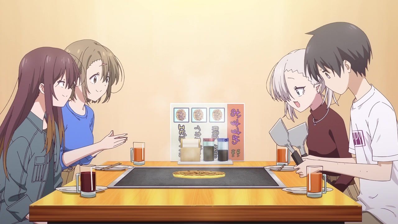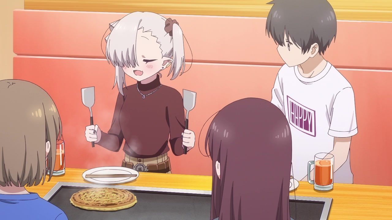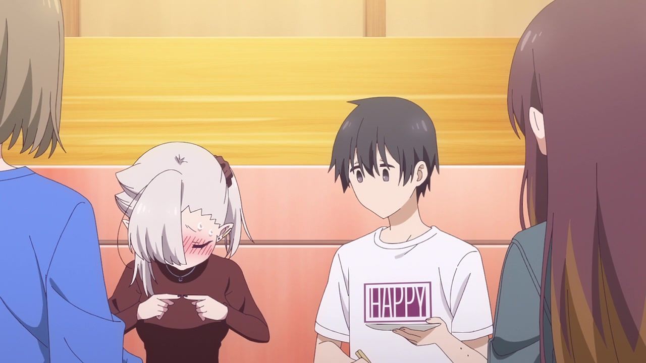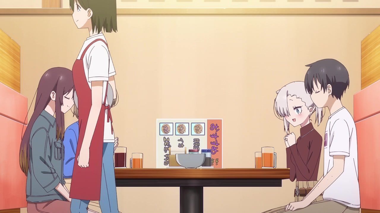 Ugh. This doesn’t end this week? Not only that, but we’re for all intents and purposes extending the school festival ‘arc’? Sure, they’re at ostensibly actual restaurants and cafes… where there’s no other customers, one waitress for .5 seconds, and you prepare the food or do cat cafe crap yourself. And if you think that I’m stretching, they repeatedly keep flashing back to the previous episode to remind us how this is just like their school festival. With such amazing jokes making full use of its premise like “I saw you blowing on food and I thought you were going to feed it to me.” “I’ll do that!” “Me too!” “Me too!” “I wrote a haiku about doing that.”