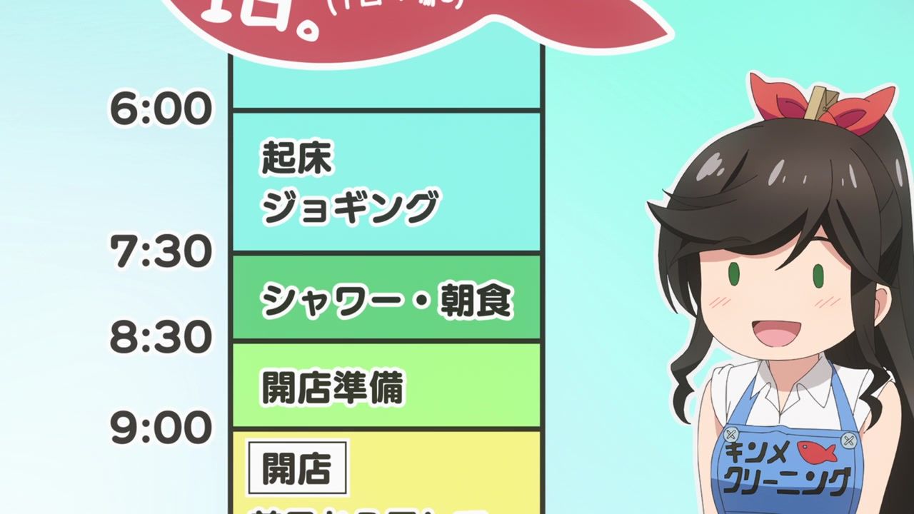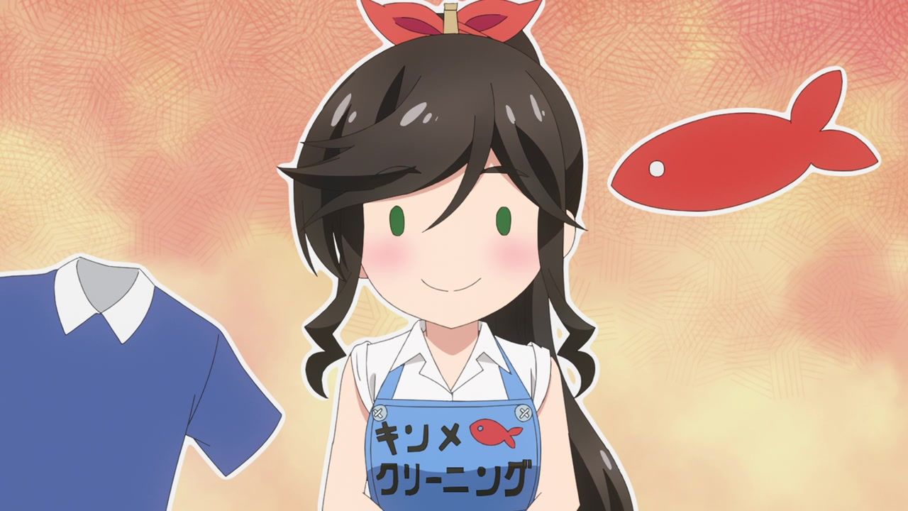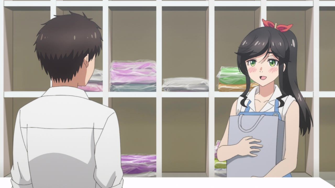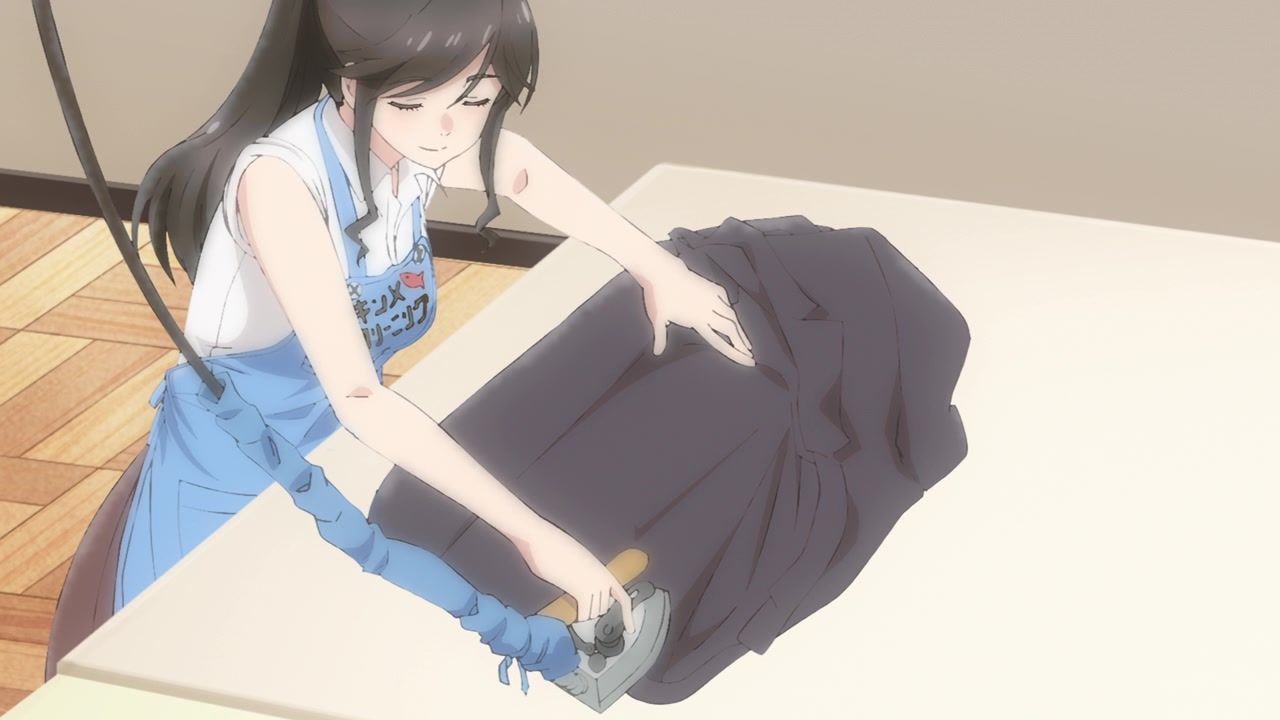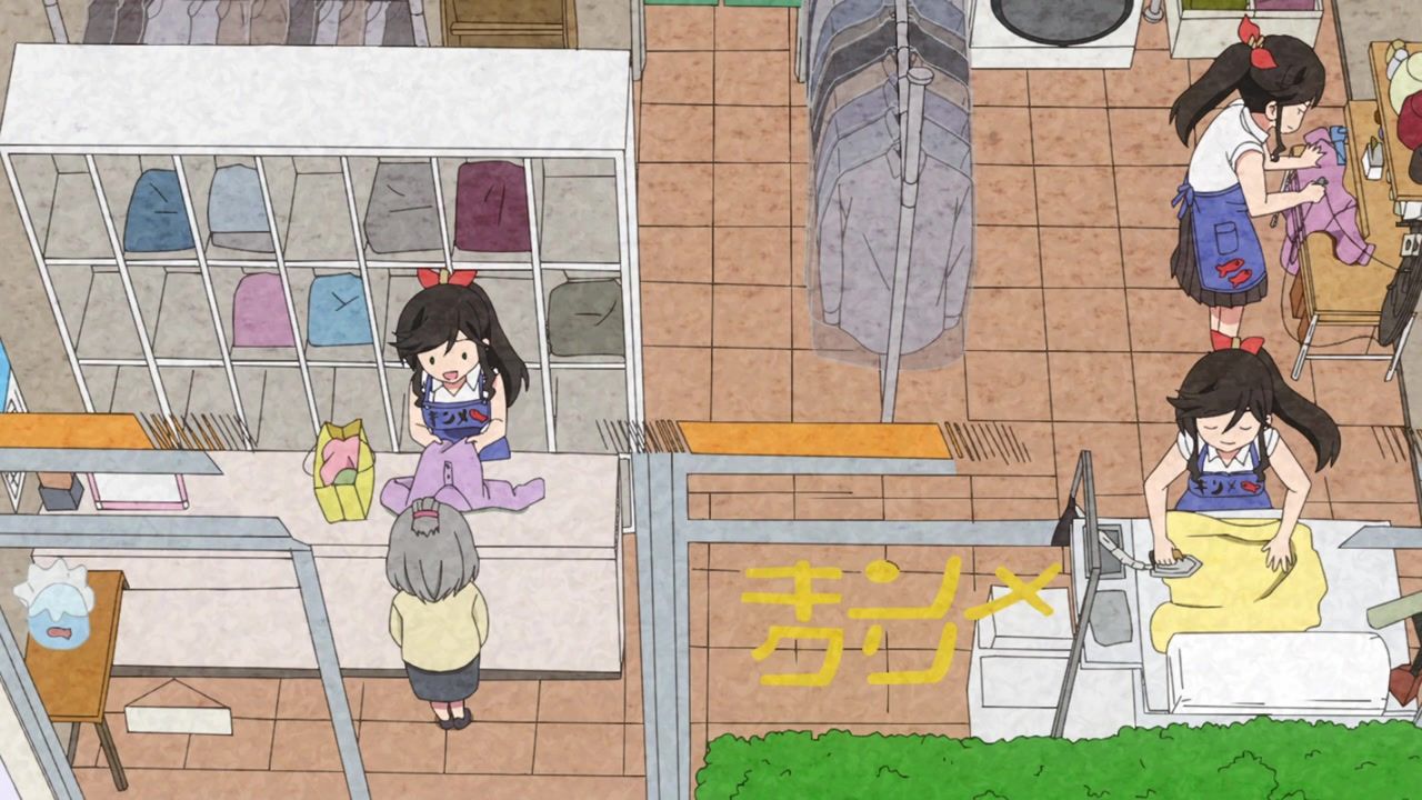 It certainly is what the kids call “slice of life.” No story, no comedy, just soporific music while an unnaturally chipper lady goes about doing laundry. Other than the obvious, it’s innocuous enough, I guess, but I still don’t see the point. In one ear, out the other, pretty literally since it loves to do montages of random town scenery to pad out scenes. What is there to say or even hope for with the show? That she gets with the kid? That next week has slightly different music and maybe it rains? At least she didn’t yell a lot.