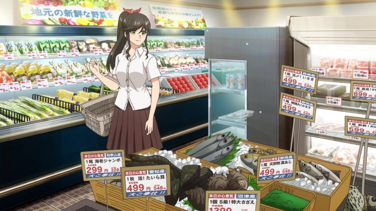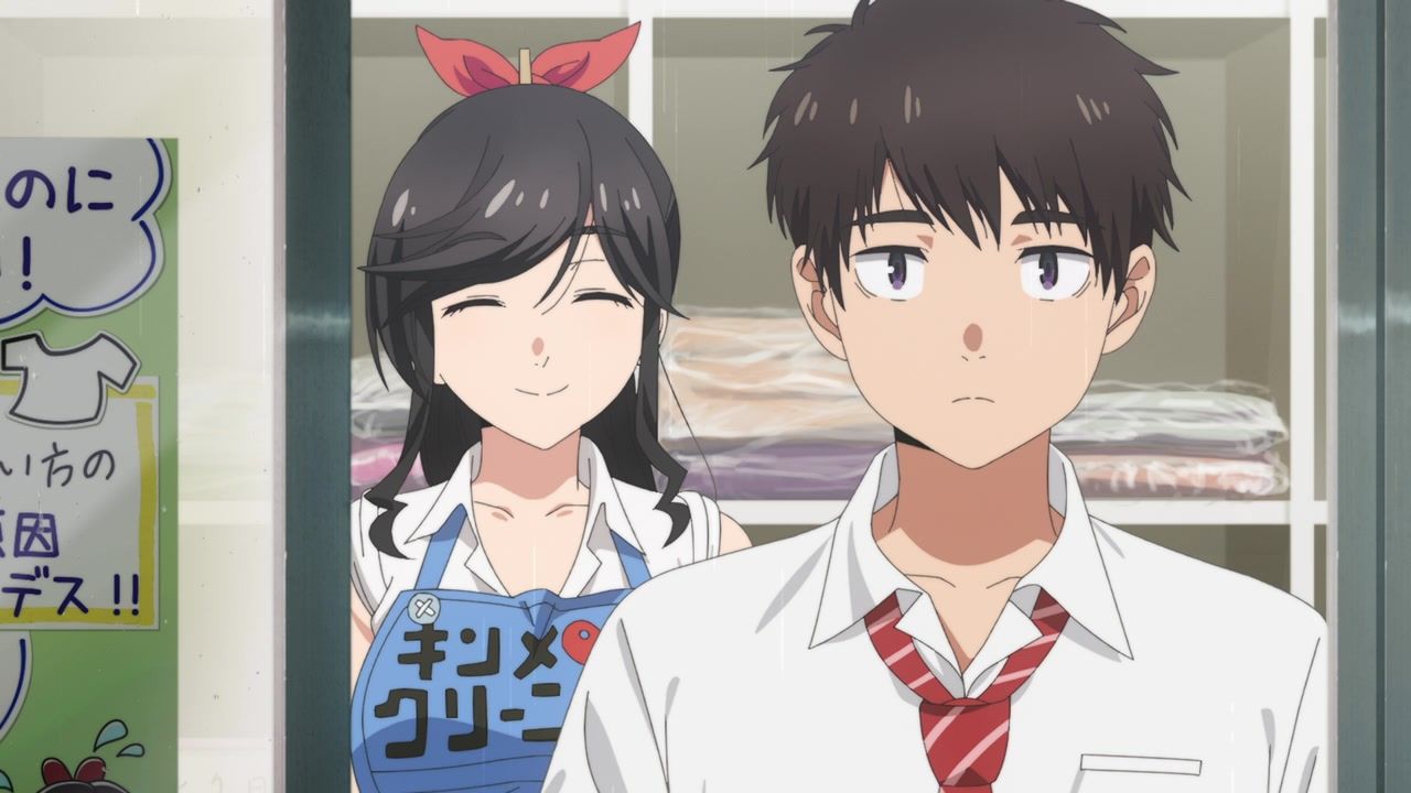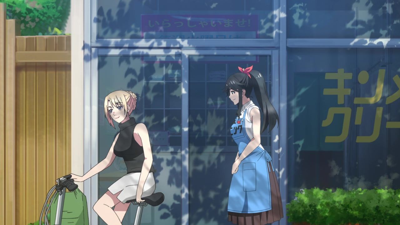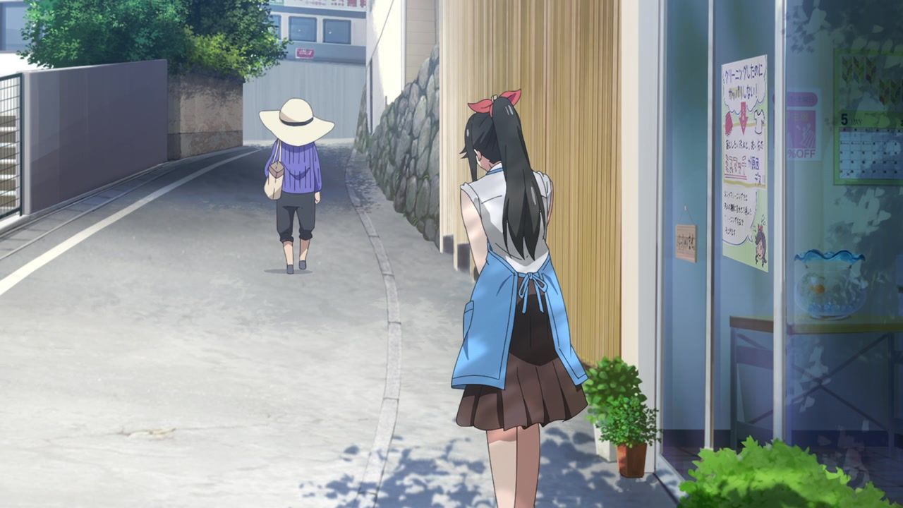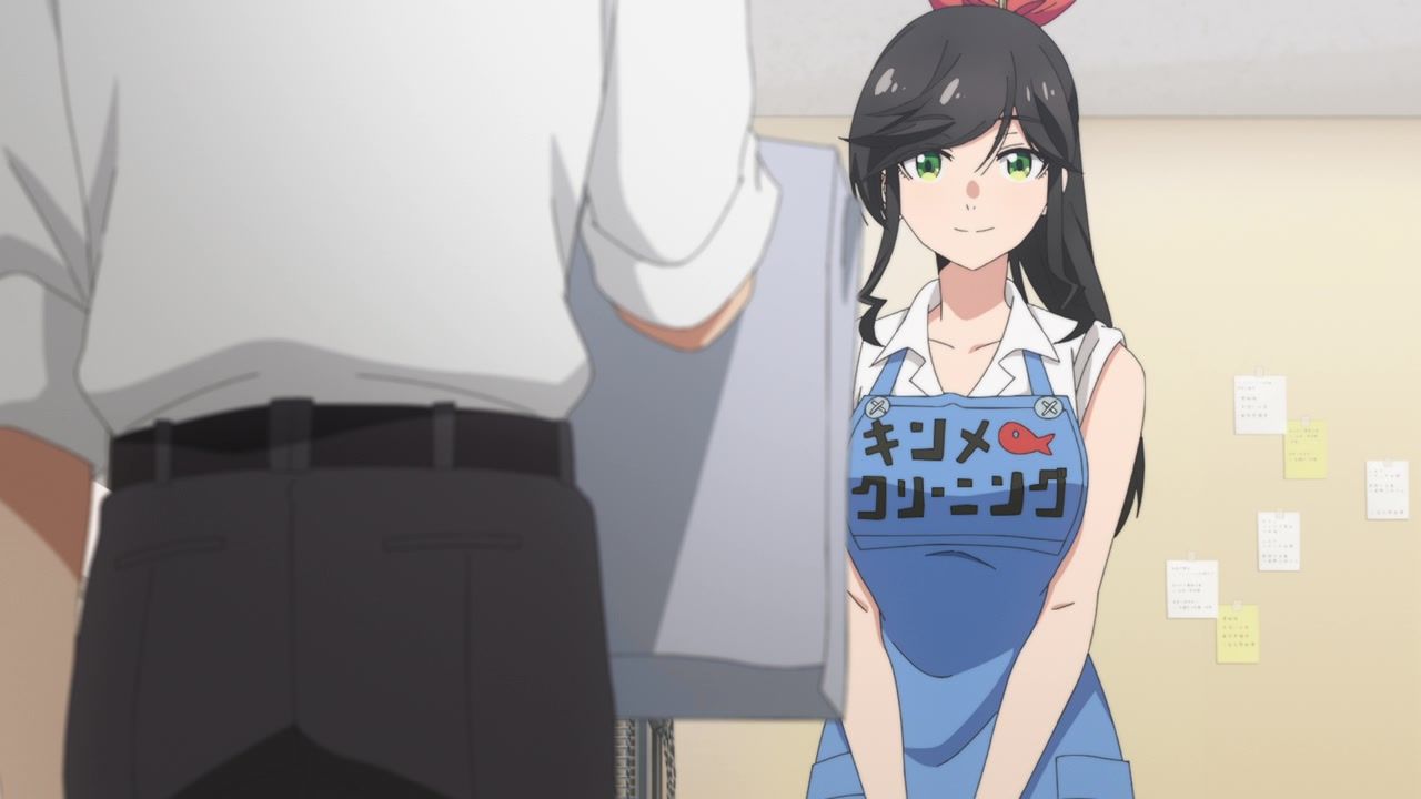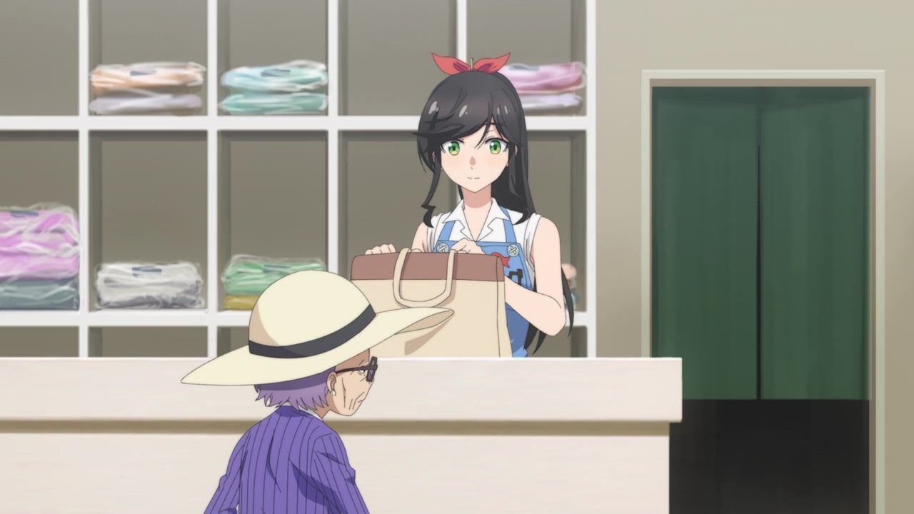 It certainly is what the kids call “slice of life.” No story, no comedy, just soporific music while an unnaturally chipper lady goes about doing laundry. Other than the obvious, it’s innocuous enough, I guess, but I still don’t see the point. In one ear, out the other, pretty literally since it loves to do montages of random town scenery to pad out scenes. What is there to say or even hope for with the show? That she gets with the kid? That next week has slightly different music and maybe it rains? At least she didn’t yell a lot.