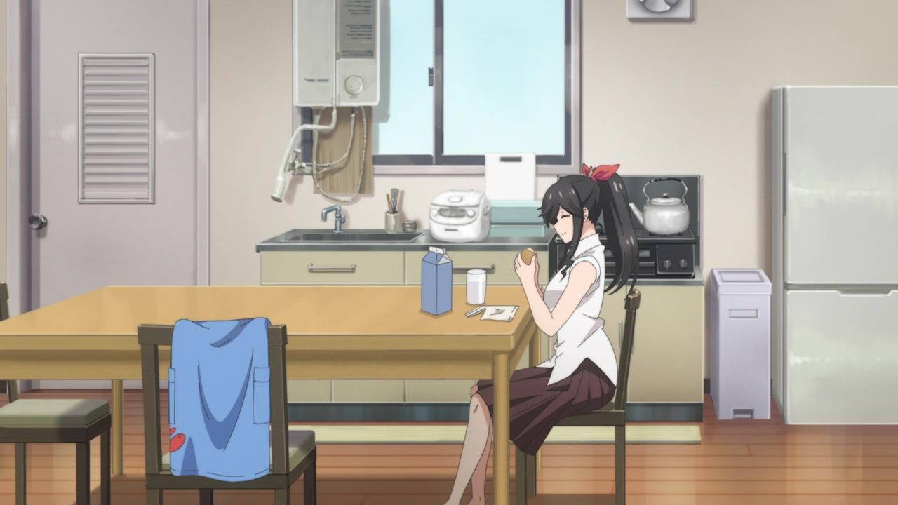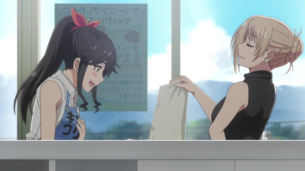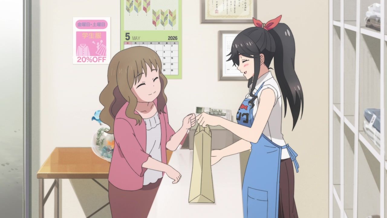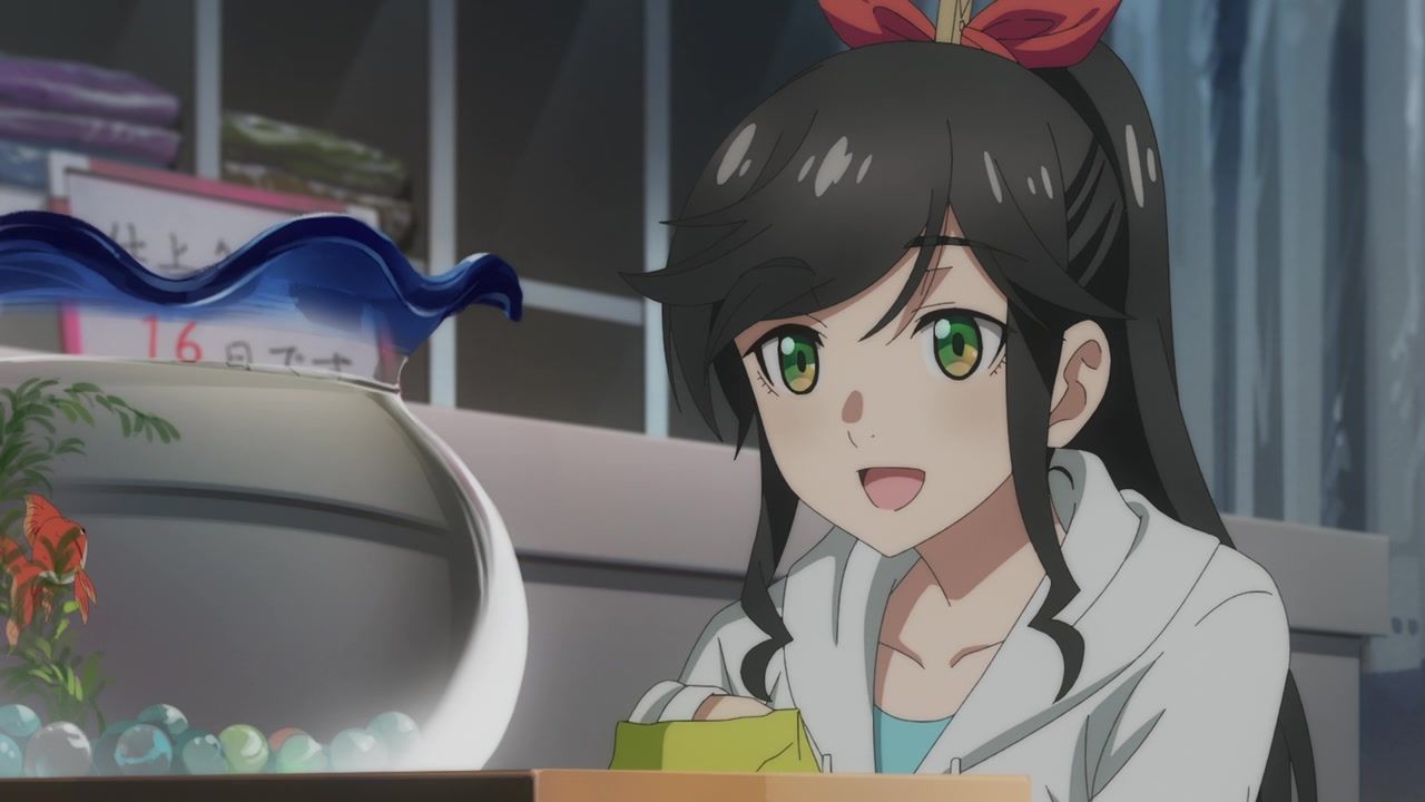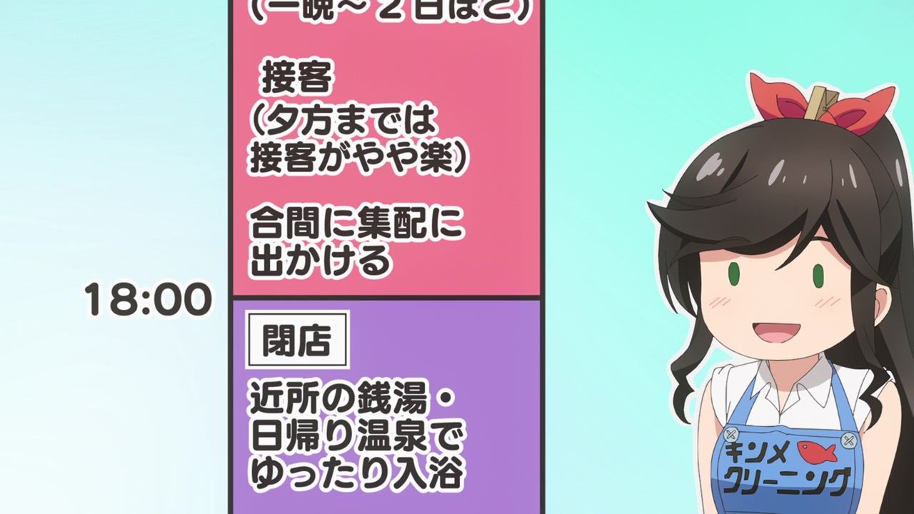 It certainly is what the kids call “slice of life.” No story, no comedy, just soporific music while an unnaturally chipper lady goes about doing laundry. Other than the obvious, it’s innocuous enough, I guess, but I still don’t see the point. In one ear, out the other, pretty literally since it loves to do montages of random town scenery to pad out scenes. What is there to say or even hope for with the show? That she gets with the kid? That next week has slightly different music and maybe it rains? At least she didn’t yell a lot.