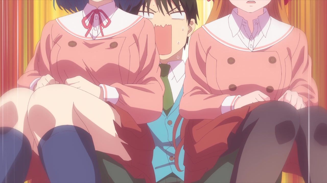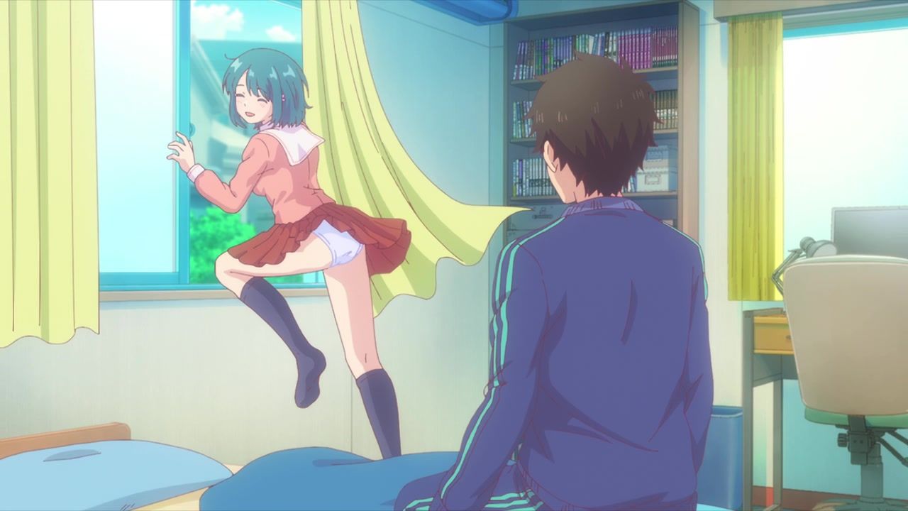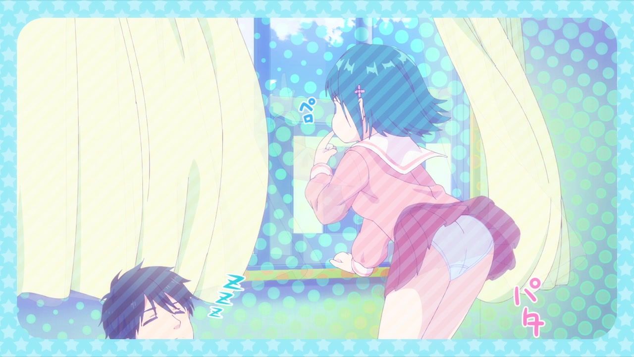 This was even stupider than I expected, and I expected it to be pretty damn stupid. It’s pretty much the same as that friend’s sister show from last season, except instead of snarky, it’s screaming overreactions, only one character now in two bodies, and even stupider. It ended with them fighting with each other over who could sit on his lap and rub their ass against his crotch the best, all while he’s yelling “THIS CANNOT BE ROMANTIC!” So then he gropes their chests. I can’t even say that this is an escalation because there’s a corny panty shot early on, which gets not just the panty shot and quick slowmo repeat, but a flashback so he can yell “A PANTY SHOT! SEXY! BUT SHE’S JUST A CHILDHOOD FRIEND!” Which is the thoroughline for the entire show, quickly turning into a deafening buzz of noise repeated on loop.