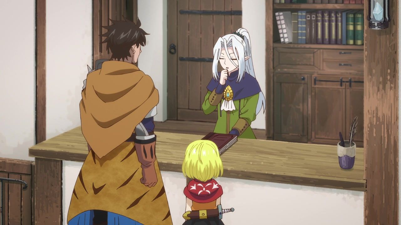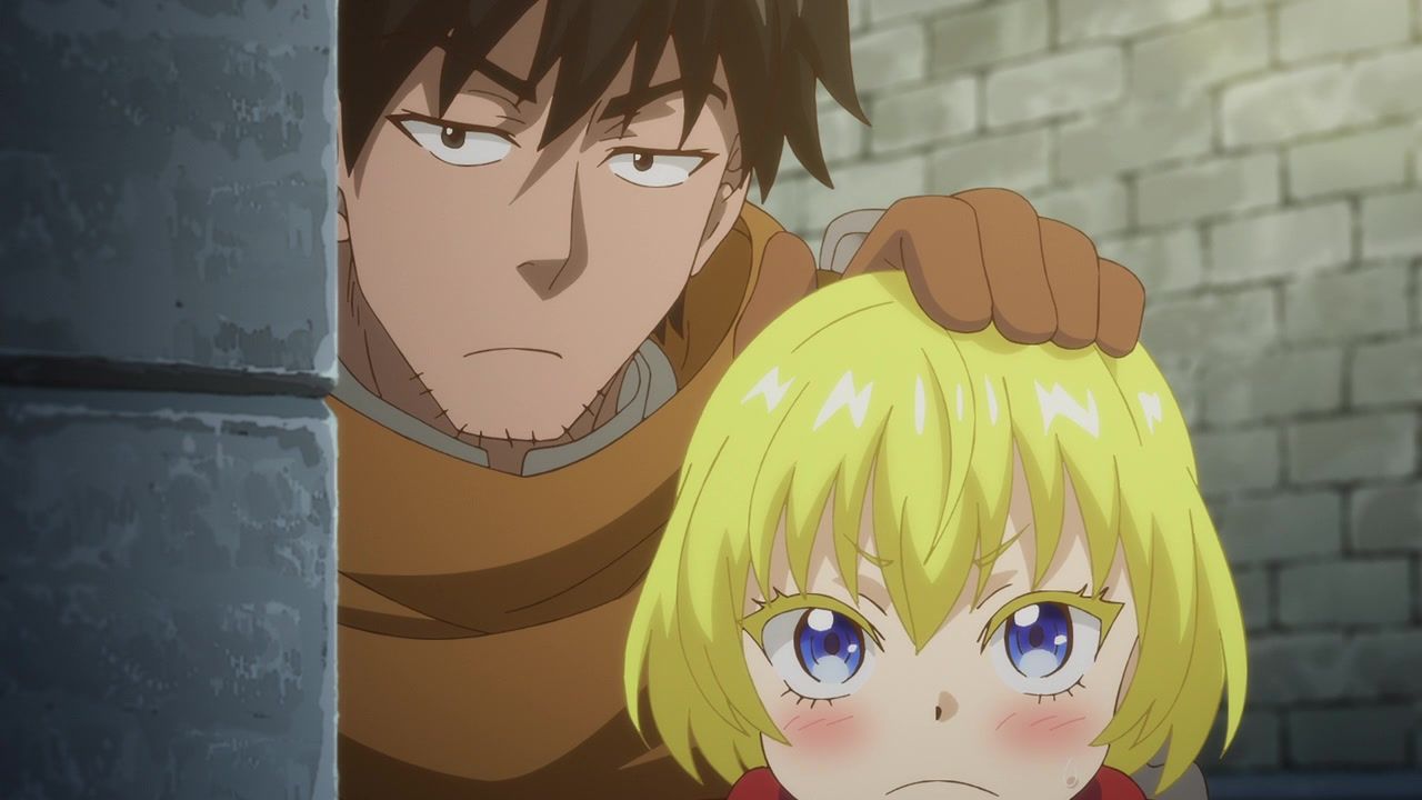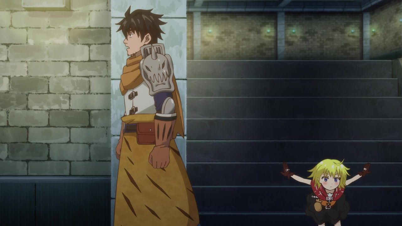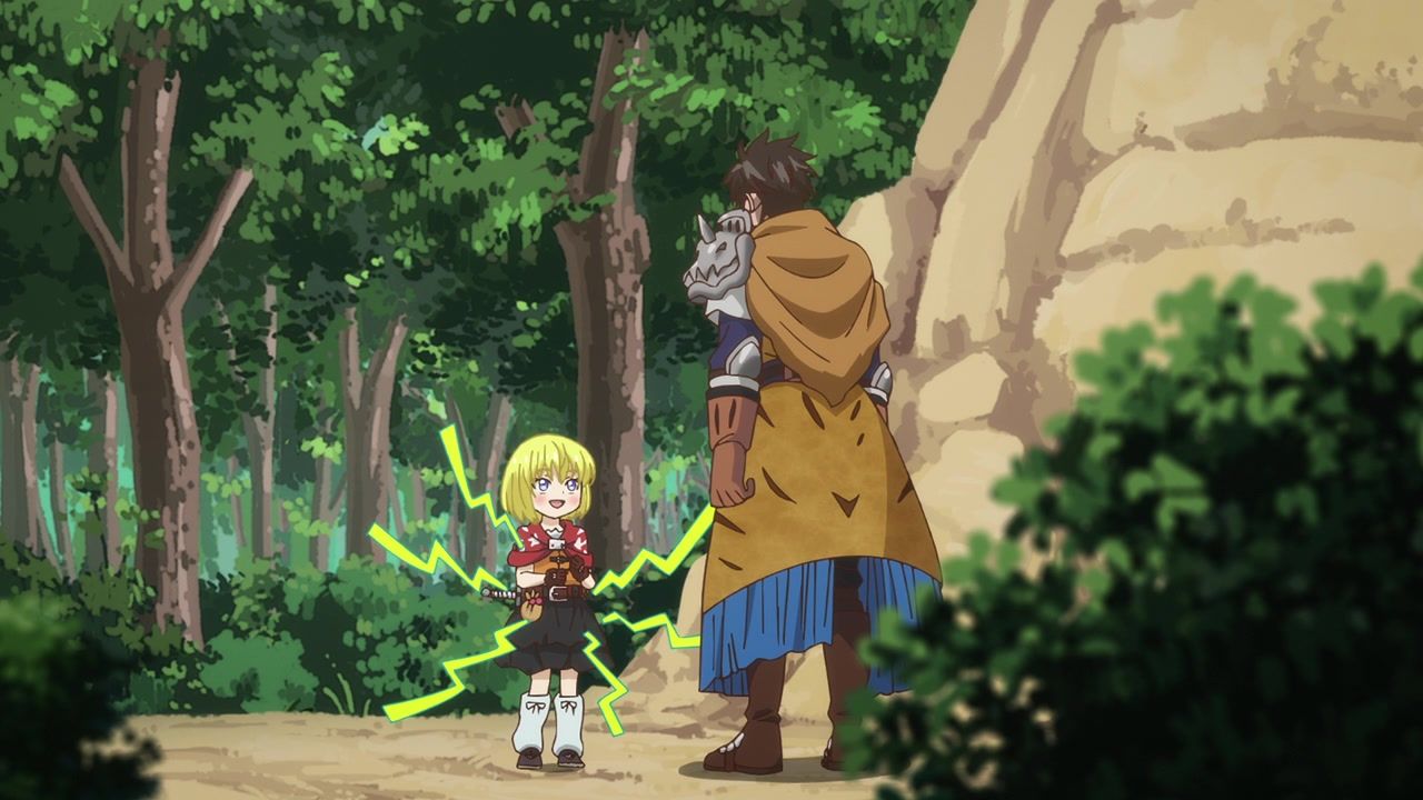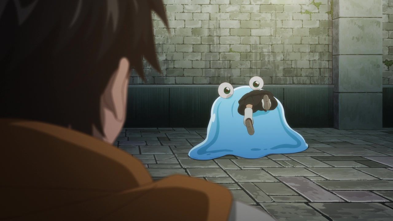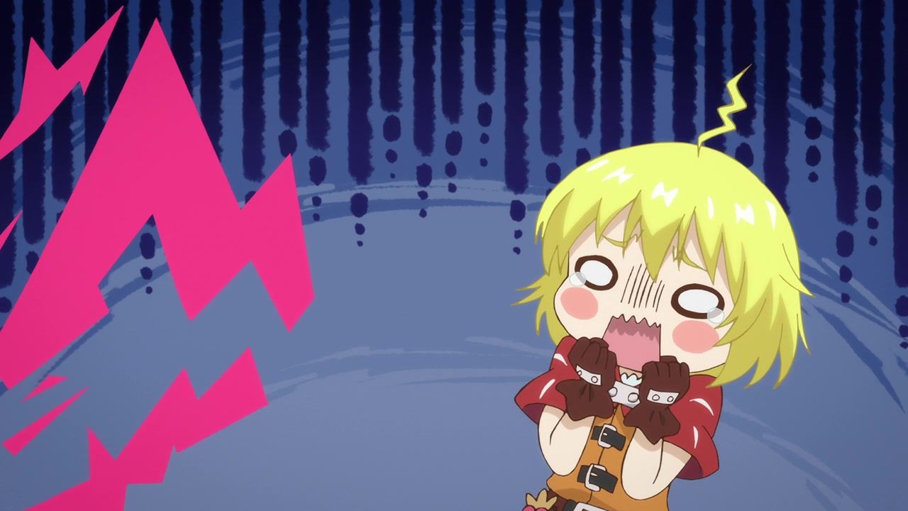 Oh, it starts out with his rags to riches story, but by 90 seconds into the episode, he’s the toast of the town which they explain, and the sole Good Adventurer, which they explain despite there not being any Bad Ones, and the local dungeon is more like an office building where you’re meant to clock in and out, so on and so forth. About the time they felt the need to explain the concept of orphanages was where my brain had totally atrophied. Admittedly, longer than usual. Perhaps the first minute jolted me into considering that maybe this would be slightly more serious than it looked. Or maybe it was the child violence and unneccesary peeing making me question existence in general. Plenty of overreaction yelling as ‘comedy’ certainly got rid of that even before the pointless exposition finished the job.