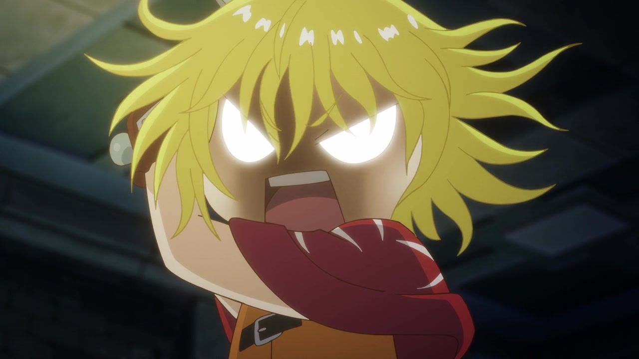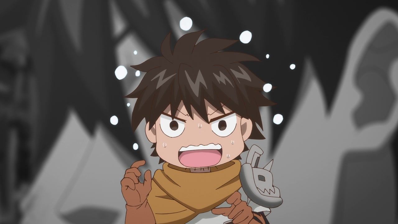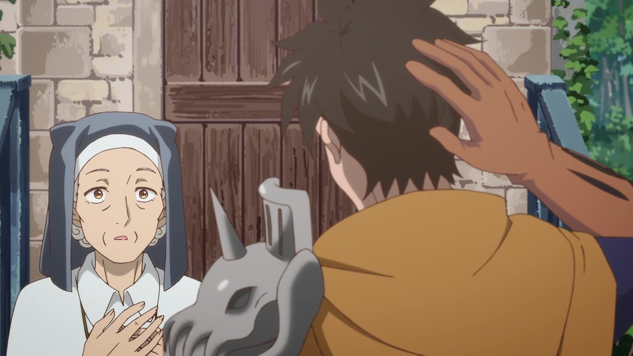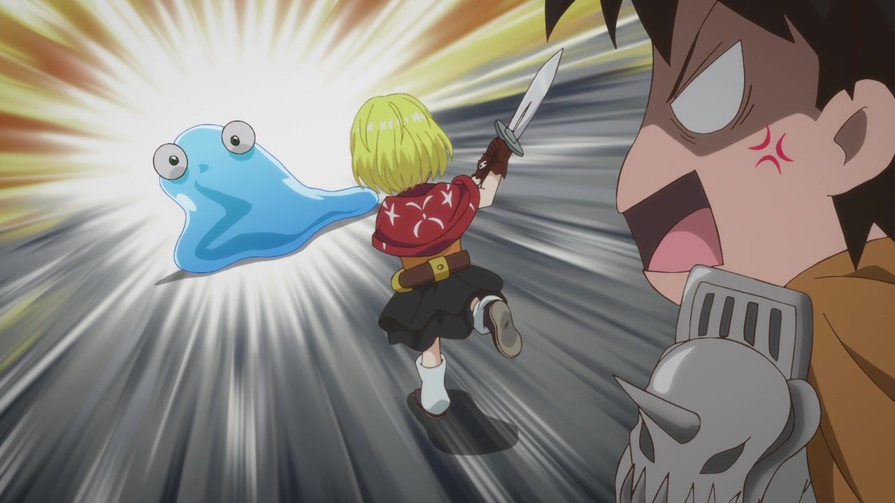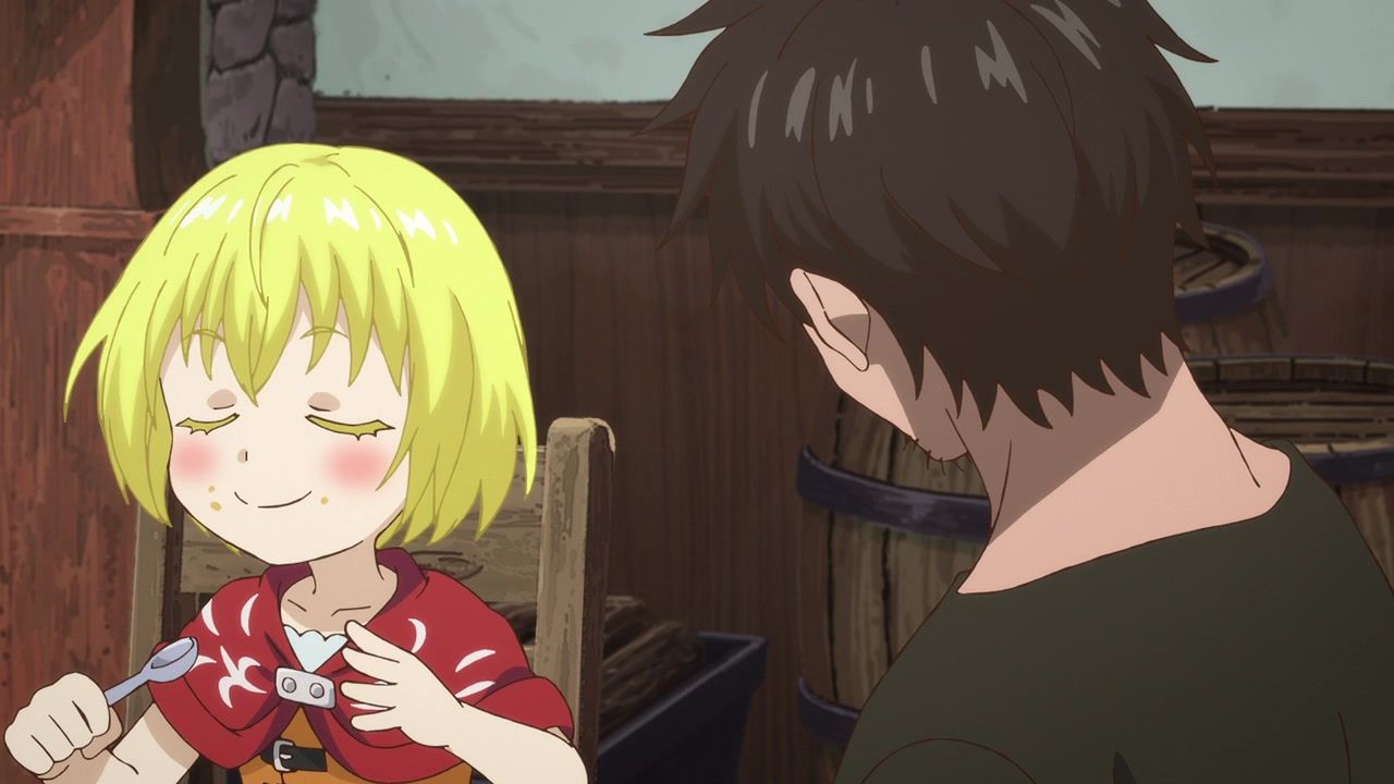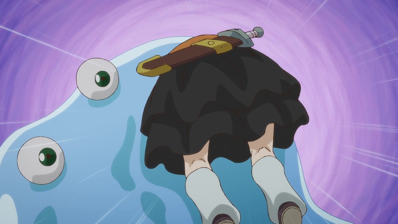 Oh, it starts out with his rags to riches story, but by 90 seconds into the episode, he’s the toast of the town which they explain, and the sole Good Adventurer, which they explain despite there not being any Bad Ones, and the local dungeon is more like an office building where you’re meant to clock in and out, so on and so forth. About the time they felt the need to explain the concept of orphanages was where my brain had totally atrophied. Admittedly, longer than usual. Perhaps the first minute jolted me into considering that maybe this would be slightly more serious than it looked. Or maybe it was the child violence and unneccesary peeing making me question existence in general. Plenty of overreaction yelling as ‘comedy’ certainly got rid of that even before the pointless exposition finished the job.