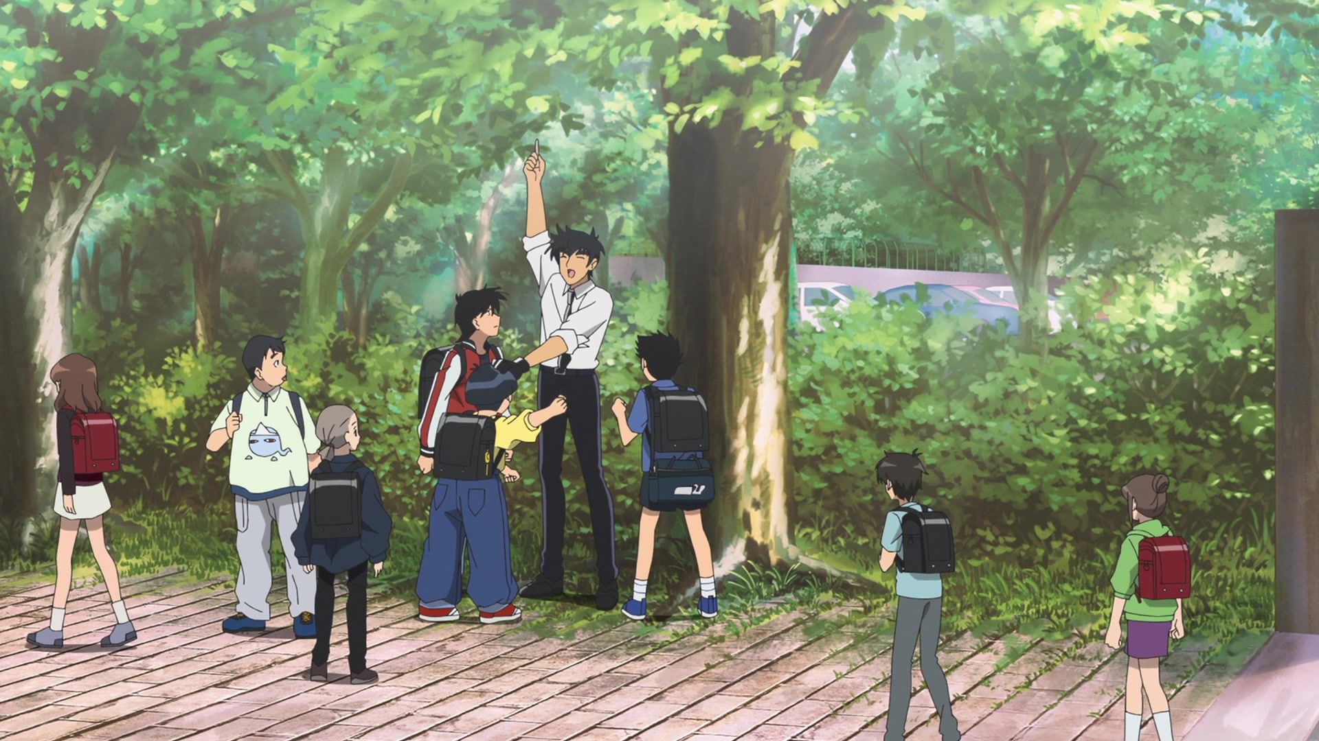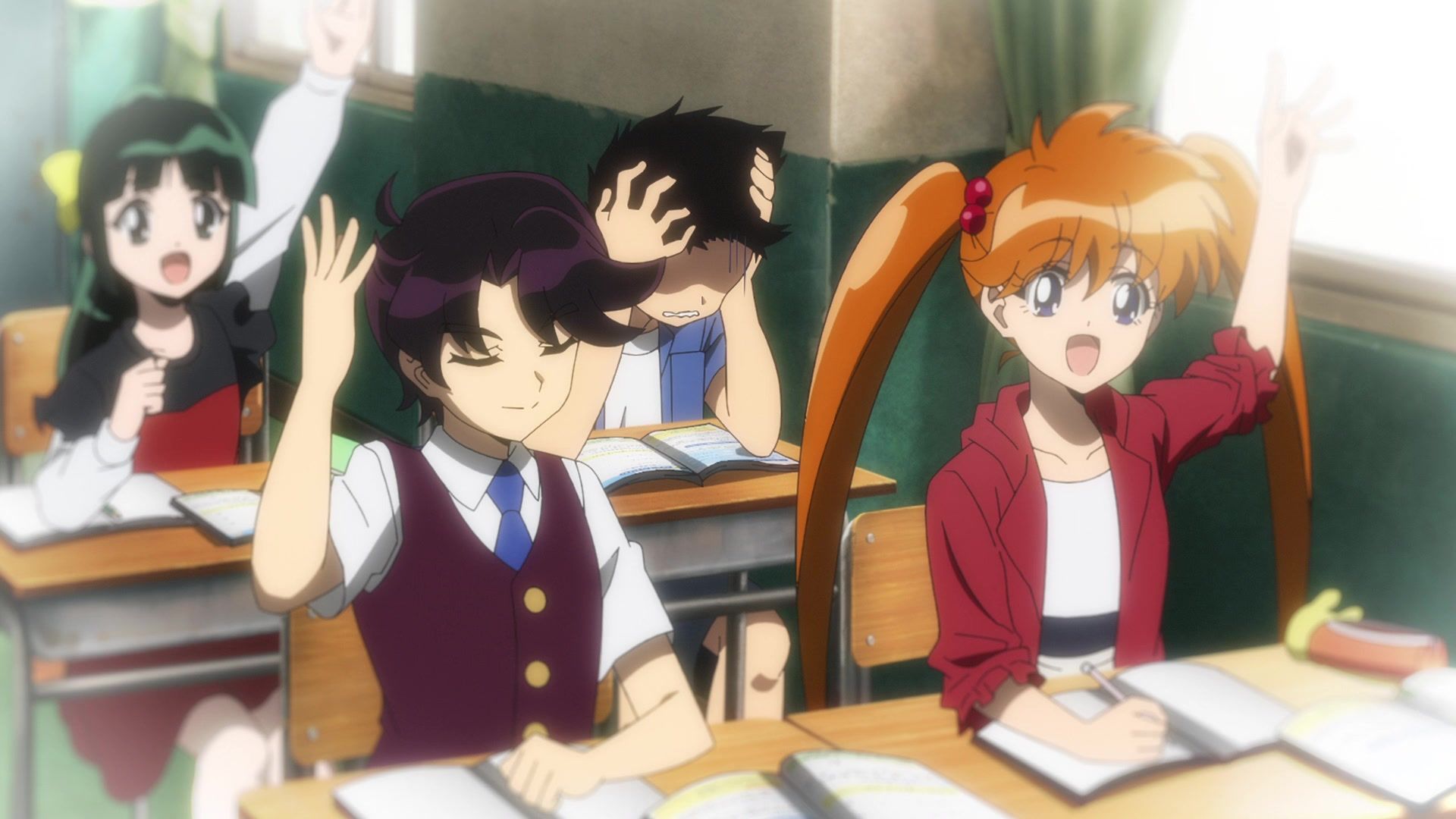In any case, just an excuse for a “what-if” episode. Everybody’s grown up and so we tour all the characters and what they’re up to now. All the kids are doing great. Nube was mauled by a tiger on one of their misadventures and is now catatonic and paralyzed. Boy, they sure collectively put that trauma behind them, didn’t they? I think it would’ve worked better had it been treated like a dream, but no, it’s meant to be an entirely different parallel reality that we return to briefly for an attaboy at the end. Not sure that’d be my attitude realizing there’s other worlds out there without traumatic tiger-related maulings, but what do I know about the Japanese elementary school system?