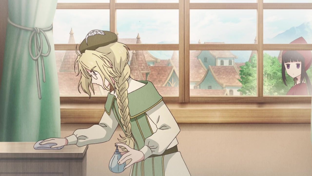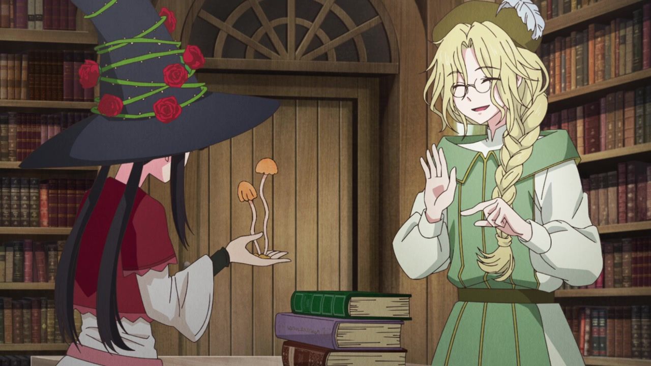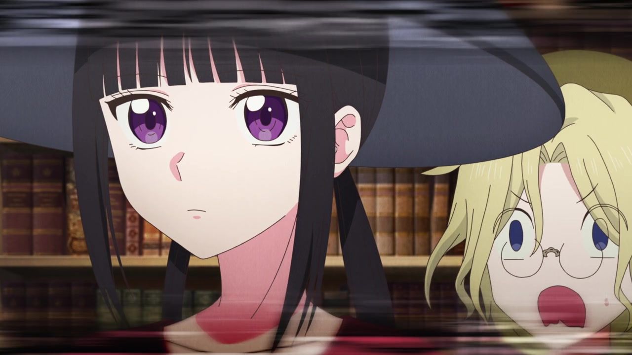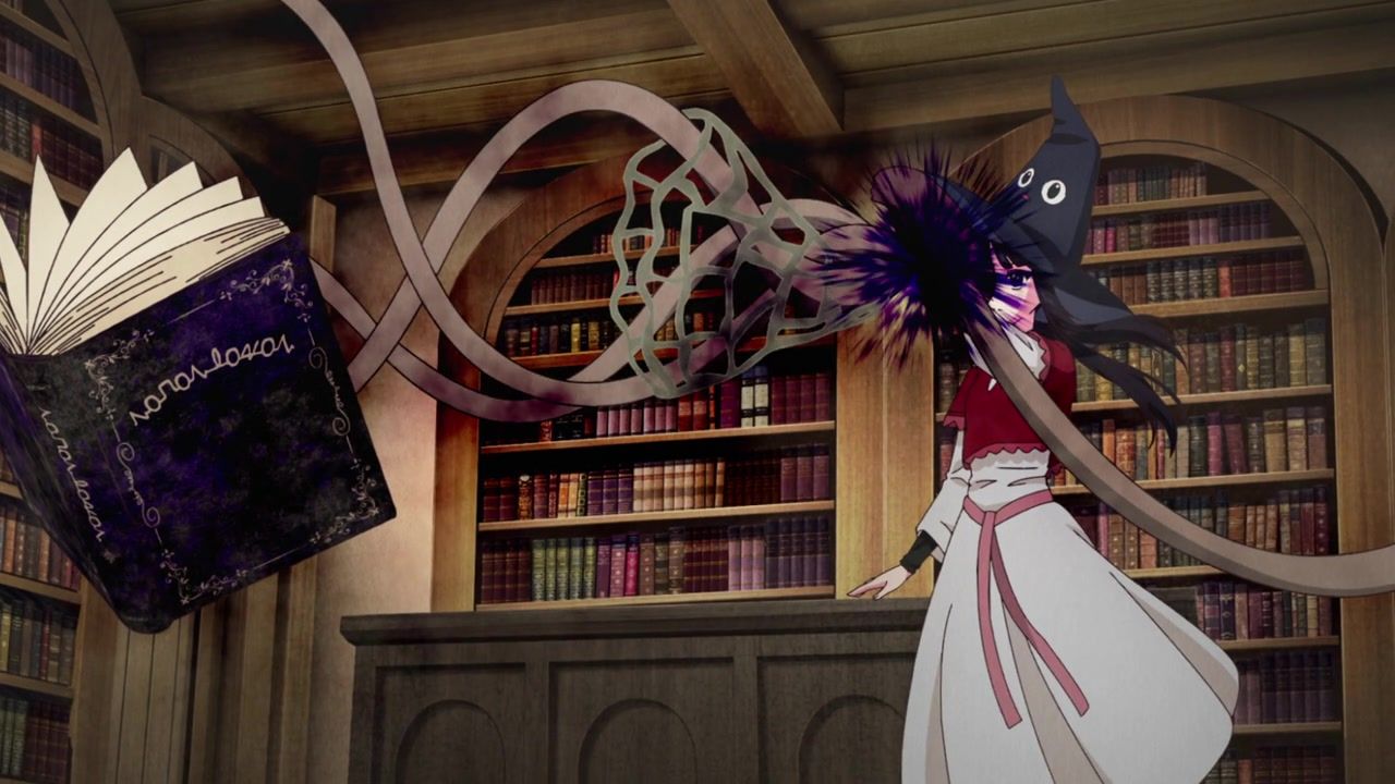 Ah, pointless ever present narration. How I… never missed you at all because most anime characters provide it anyway instead of just having a disembodied voice explain exactly what is happening. And yet, is randomly selective. That she has a magic hat she feeds books to? Not worth explaining. That she saw two people flirting? Full paragraph. That she sees people. And they’re flirting. Which is something that she sees. The best parts are when it gets outright schizophrenic over how people treat her. She literally leaves a trail of infection wherever she goes and kills people she touches, but but but but they wipe down surfaces after she leaves and wear protective clothing around her. How heartless they are to her. That doesn’t seem heartless. That seems responsible. There’s also the thing where her death touch is specific to only humans. All other biologics are completely fine, aside from spawning fungus constantly.