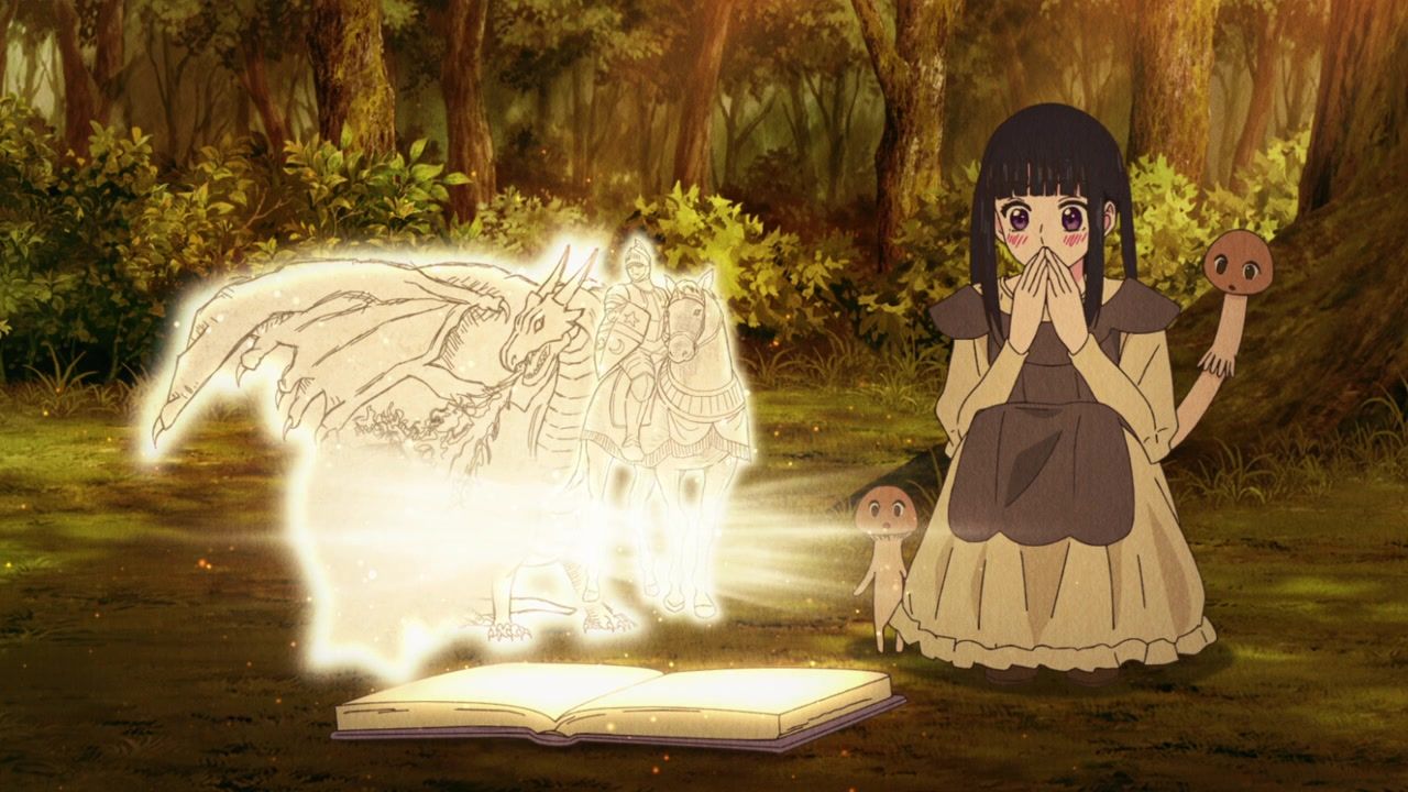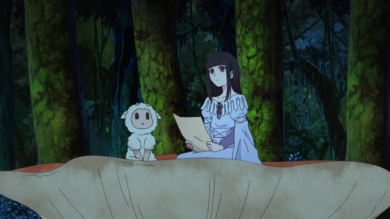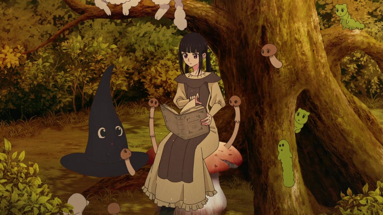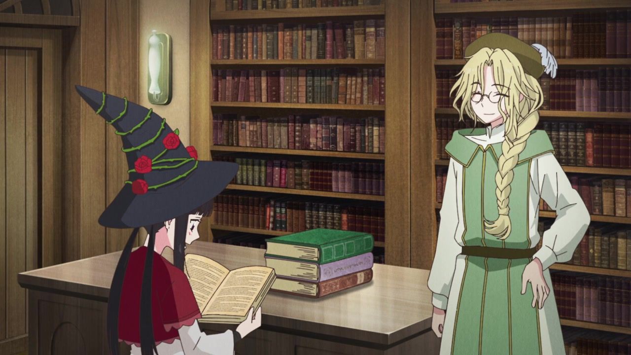 Ah, pointless ever present narration. How I… never missed you at all because most anime characters provide it anyway instead of just having a disembodied voice explain exactly what is happening. And yet, is randomly selective. That she has a magic hat she feeds books to? Not worth explaining. That she saw two people flirting? Full paragraph. That she sees people. And they’re flirting. Which is something that she sees. The best parts are when it gets outright schizophrenic over how people treat her. She literally leaves a trail of infection wherever she goes and kills people she touches, but but but but they wipe down surfaces after she leaves and wear protective clothing around her. How heartless they are to her. That doesn’t seem heartless. That seems responsible. There’s also the thing where her death touch is specific to only humans. All other biologics are completely fine, aside from spawning fungus constantly.