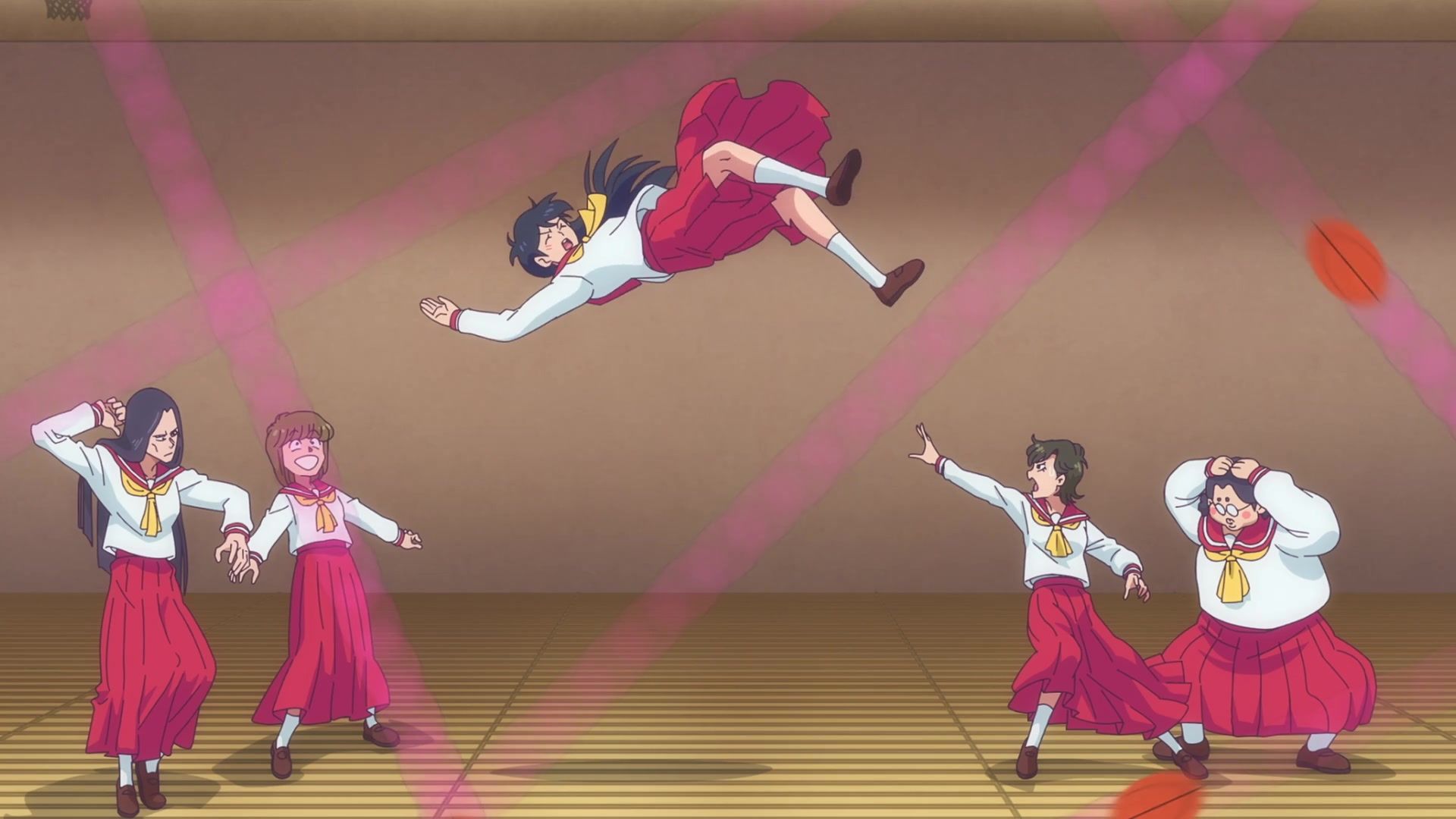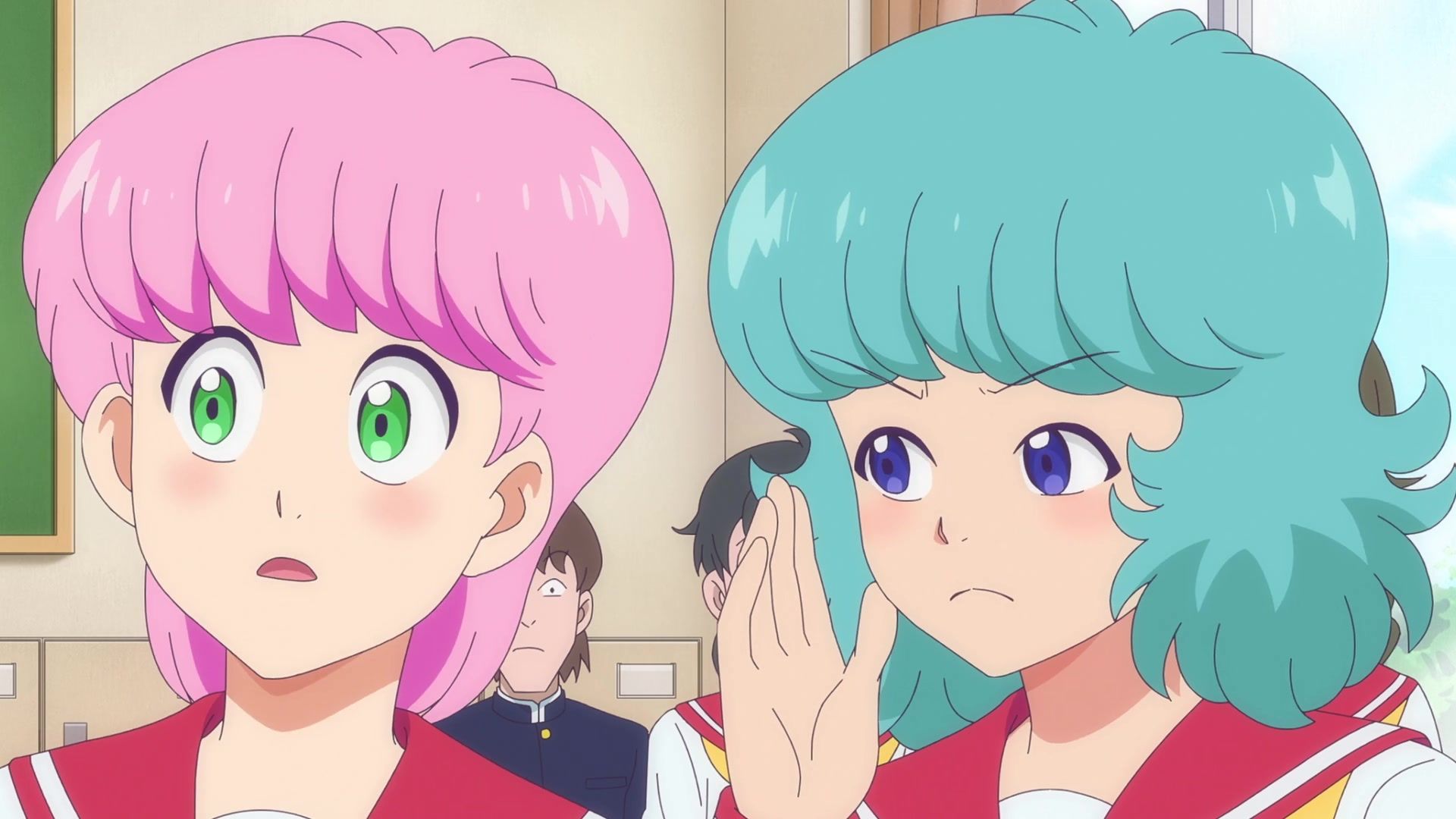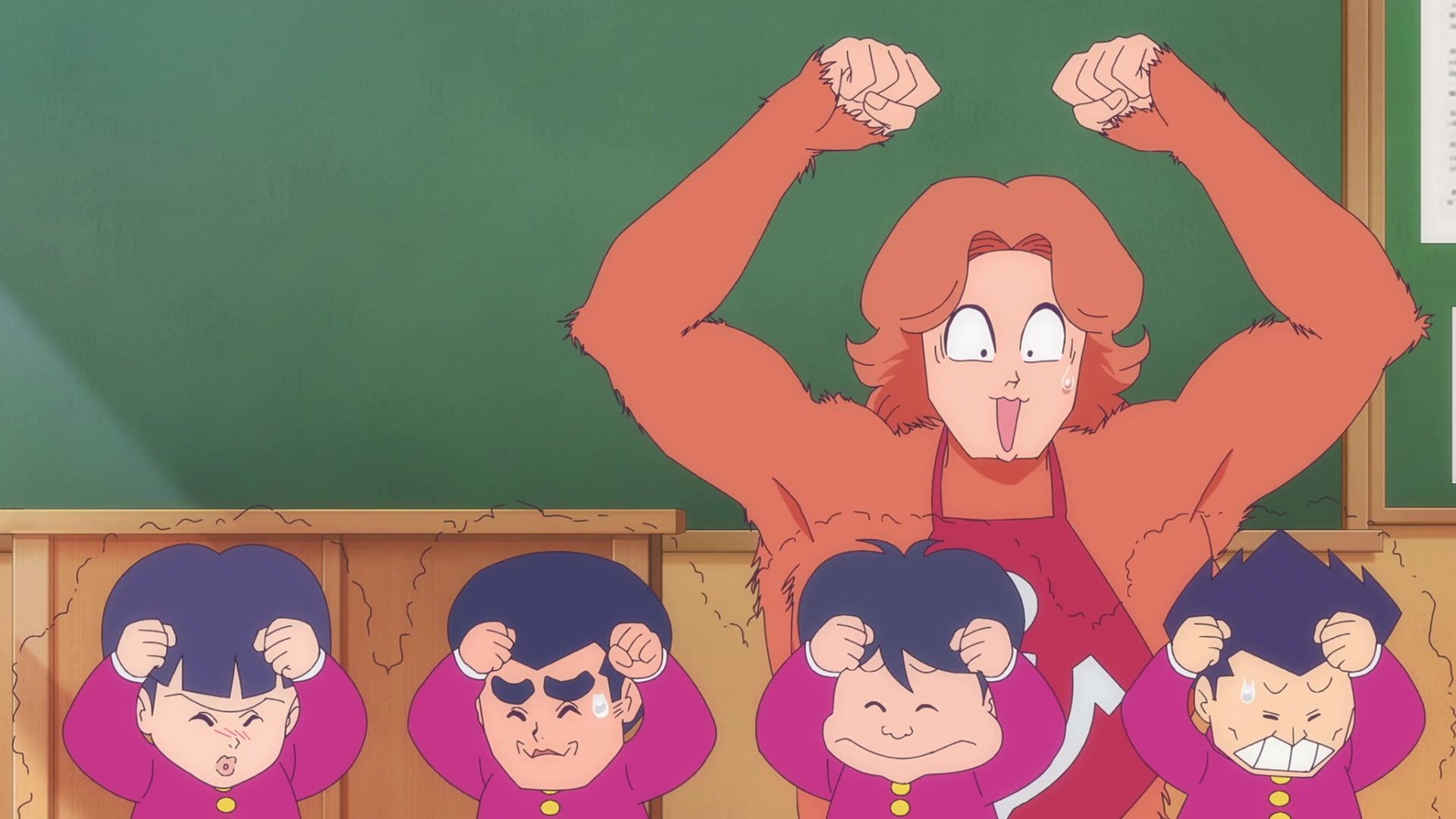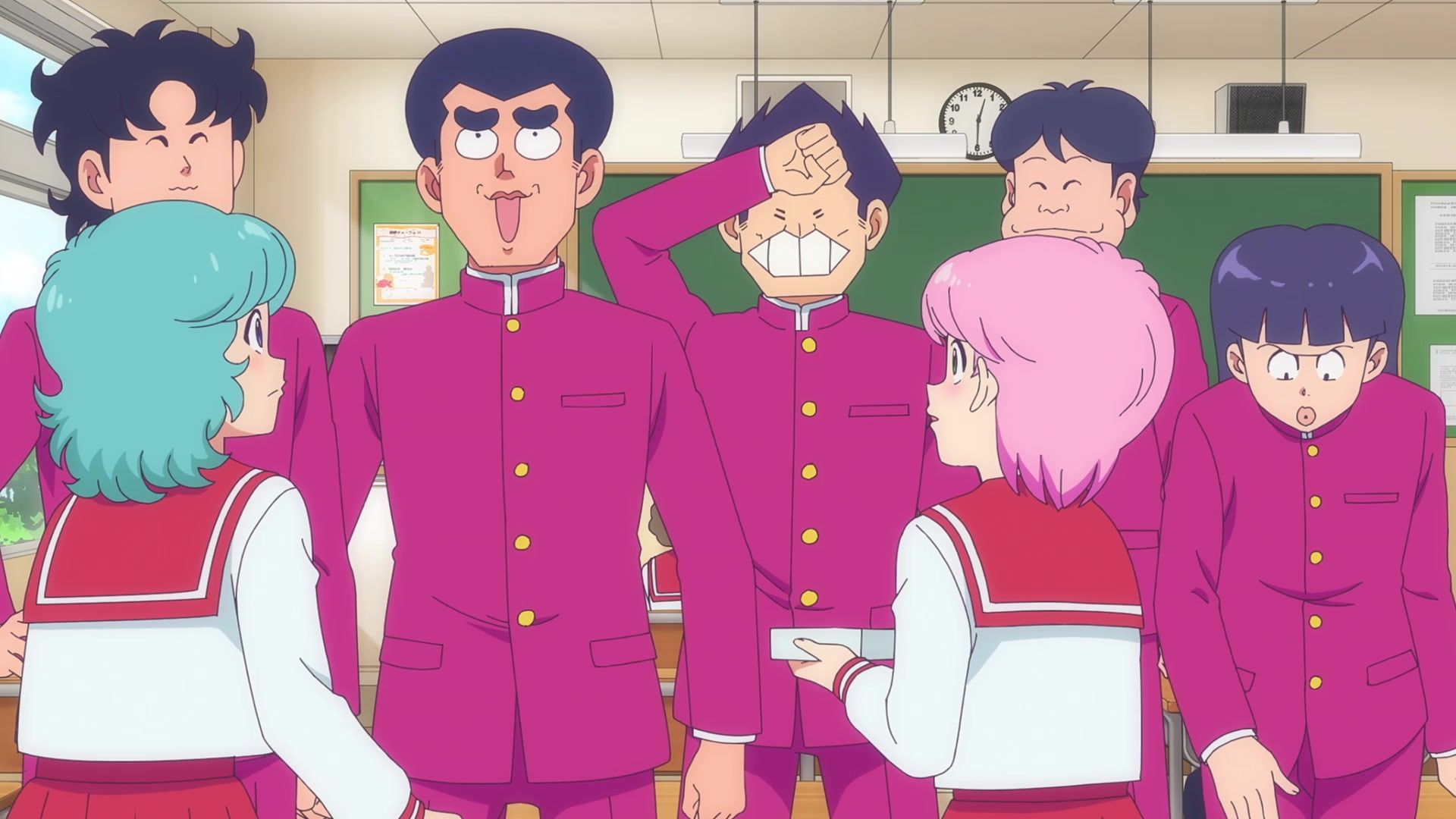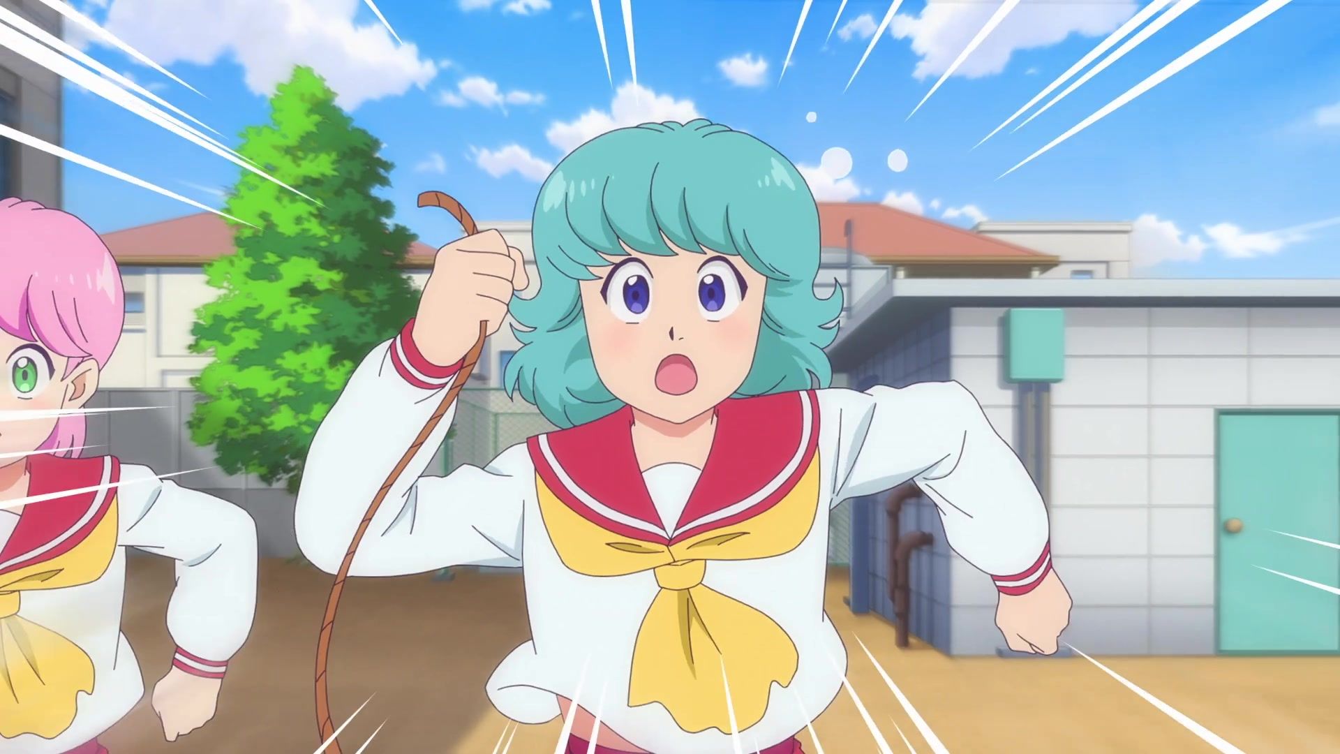 It’s certainly trying to bring back the 80s, which seems to be noitaminA’s side project lately, much more than the recent Urusei Yatsura revival. Especially the character designs. Everyone has giant poofy hair, chins like a ton of bricks, and eyes that are either way too large or way too small with no in-between. There’s just one little rap at the start and then it’s entirely 80s, right down to the animators snorting a terrifying amount of cocaine. I think they were afraid of anybody accusing this show of not being chaotic enough. Or loud enough for that matter. There’s a throughline of characters yelling the entire episode. Not even always as reaction to anything, simply yelling to yell. The existence of silence displeases god… or something.