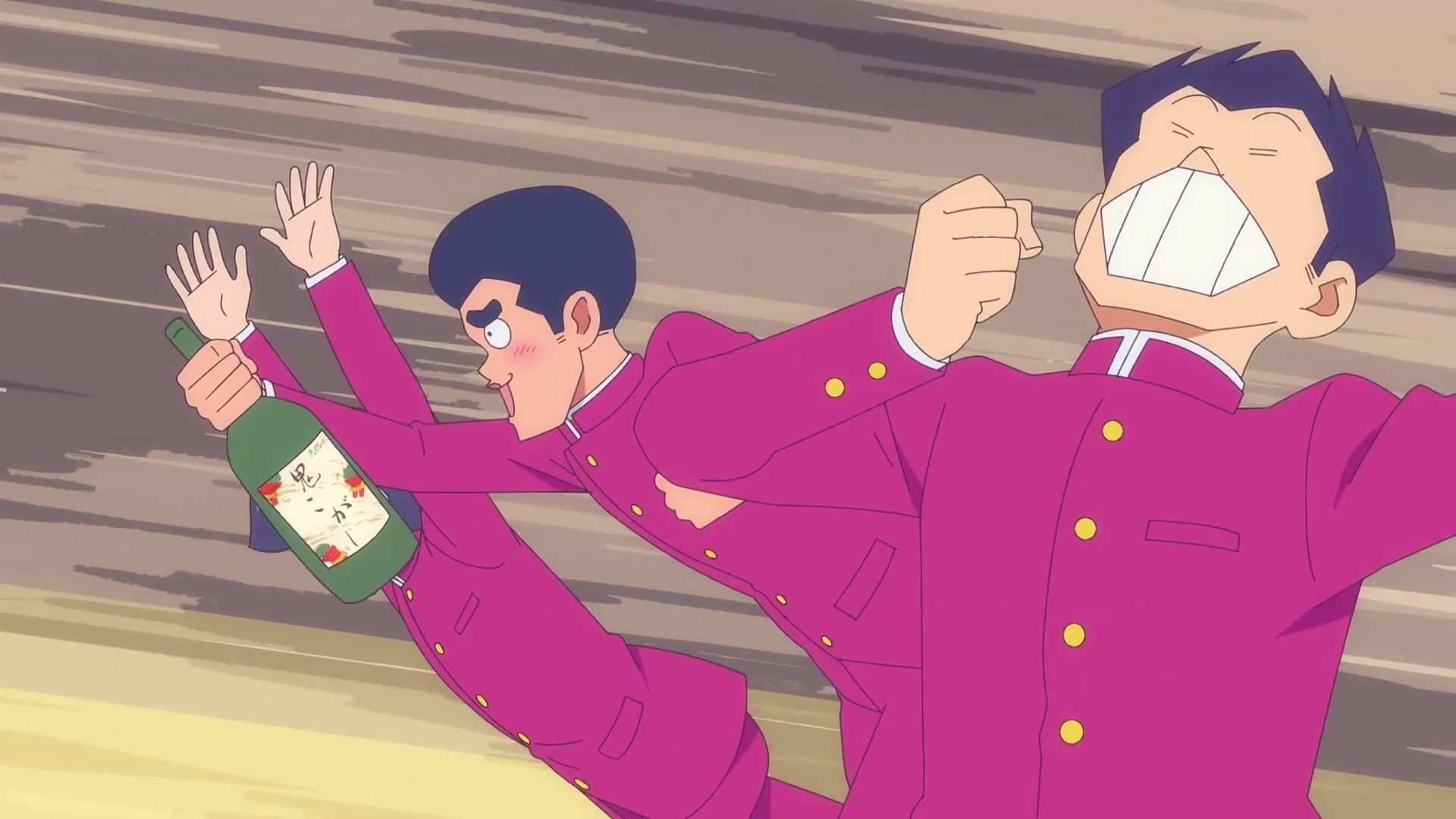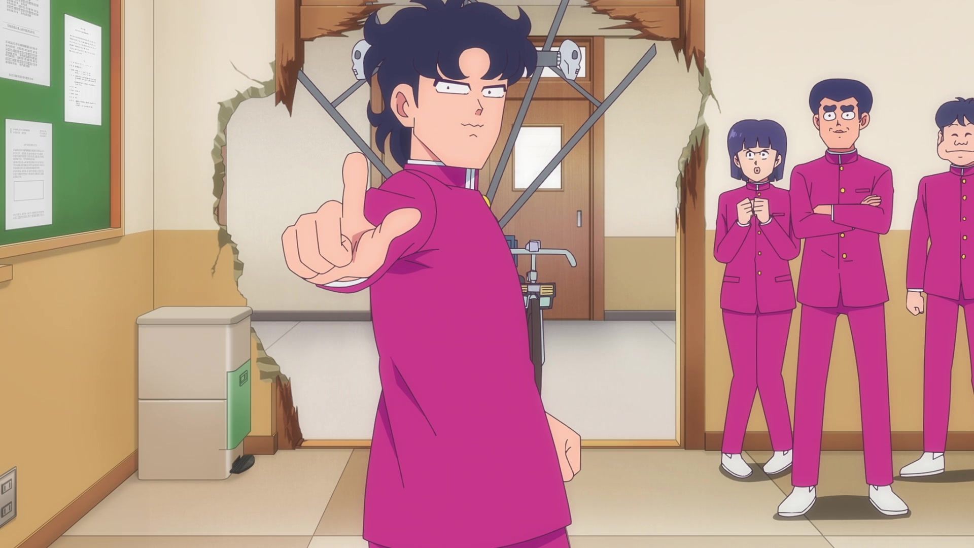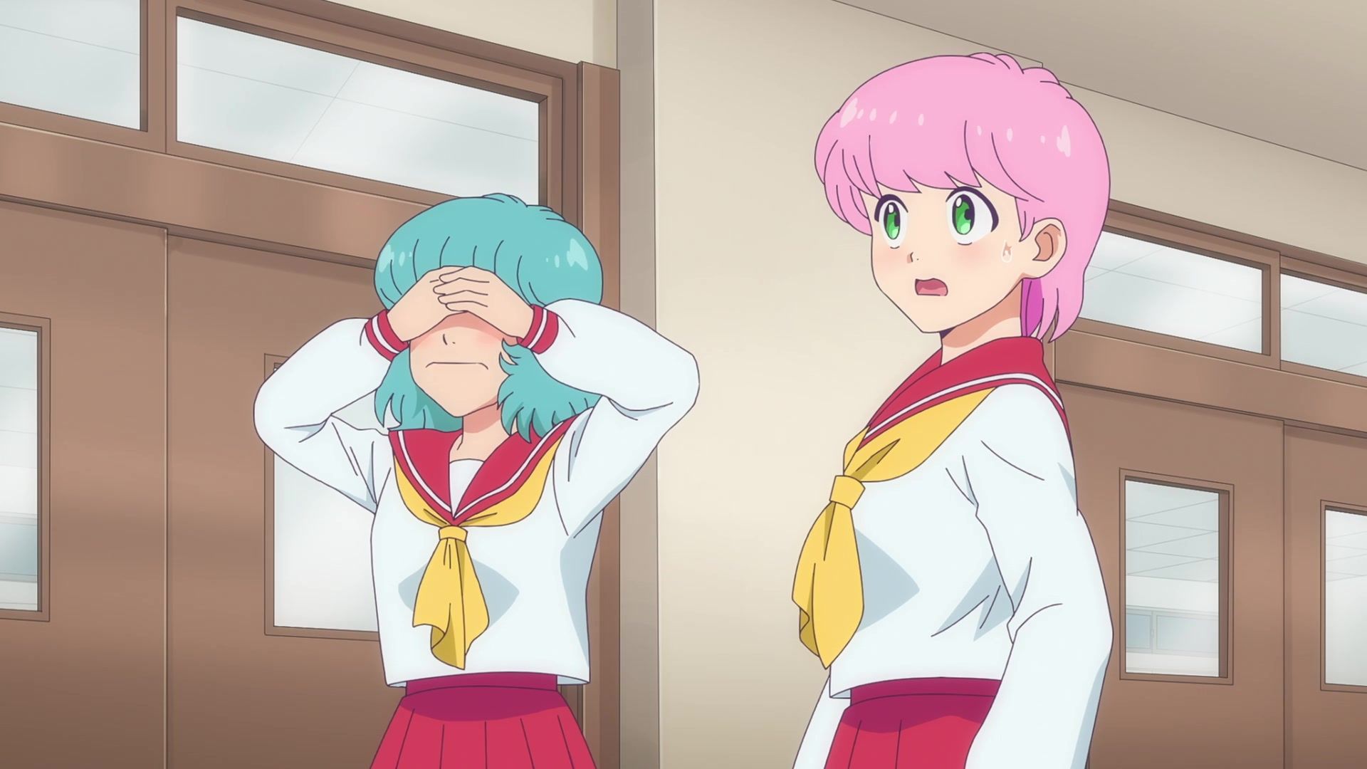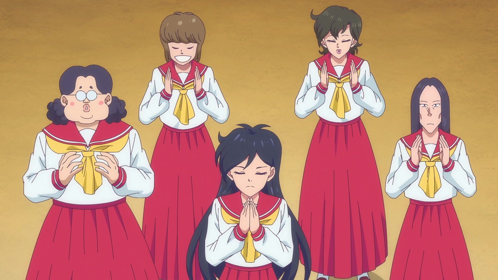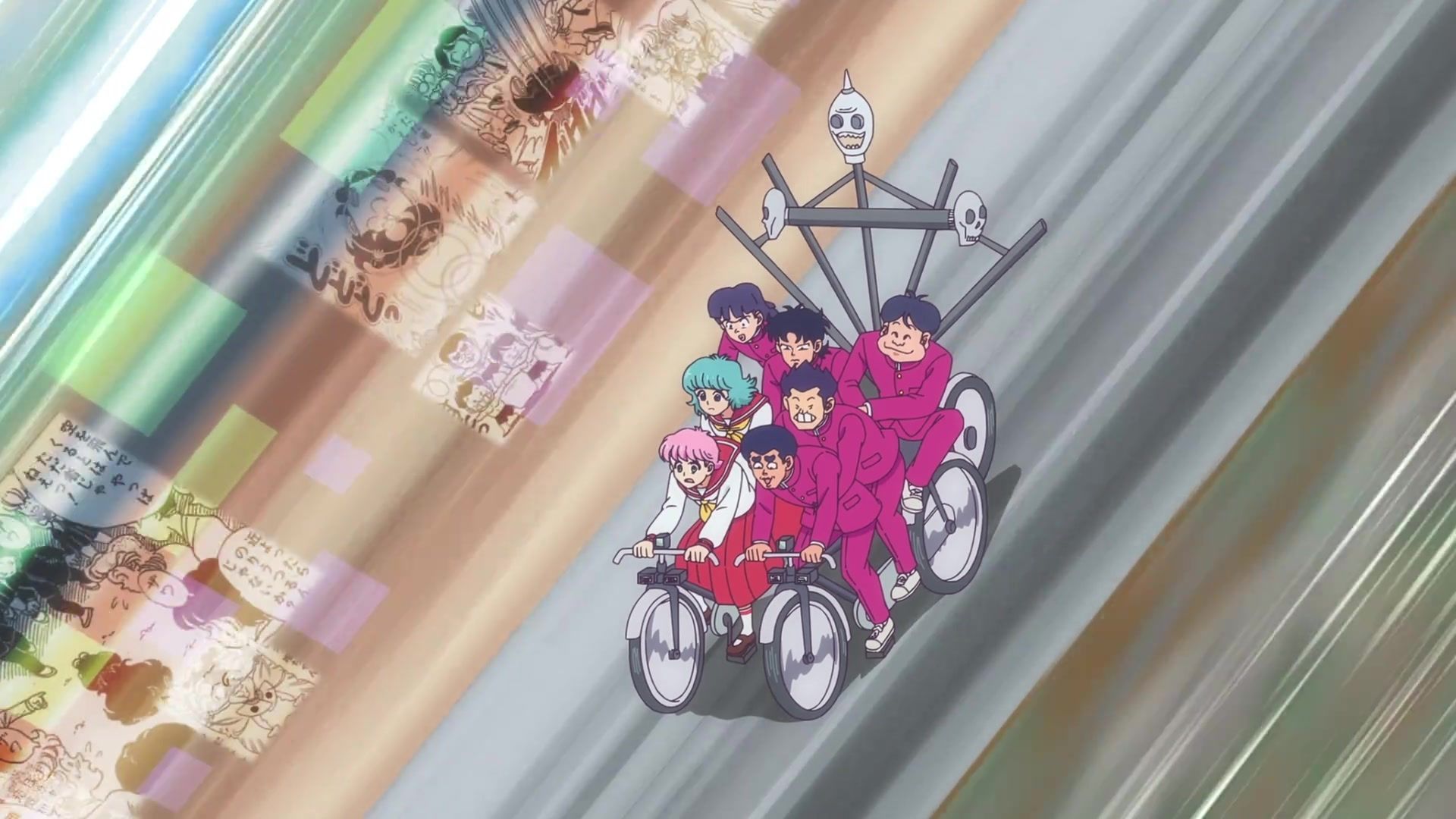 It’s certainly trying to bring back the 80s, which seems to be noitaminA’s side project lately, much more than the recent Urusei Yatsura revival. Especially the character designs. Everyone has giant poofy hair, chins like a ton of bricks, and eyes that are either way too large or way too small with no in-between. There’s just one little rap at the start and then it’s entirely 80s, right down to the animators snorting a terrifying amount of cocaine. I think they were afraid of anybody accusing this show of not being chaotic enough. Or loud enough for that matter. There’s a throughline of characters yelling the entire episode. Not even always as reaction to anything, simply yelling to yell. The existence of silence displeases god… or something.