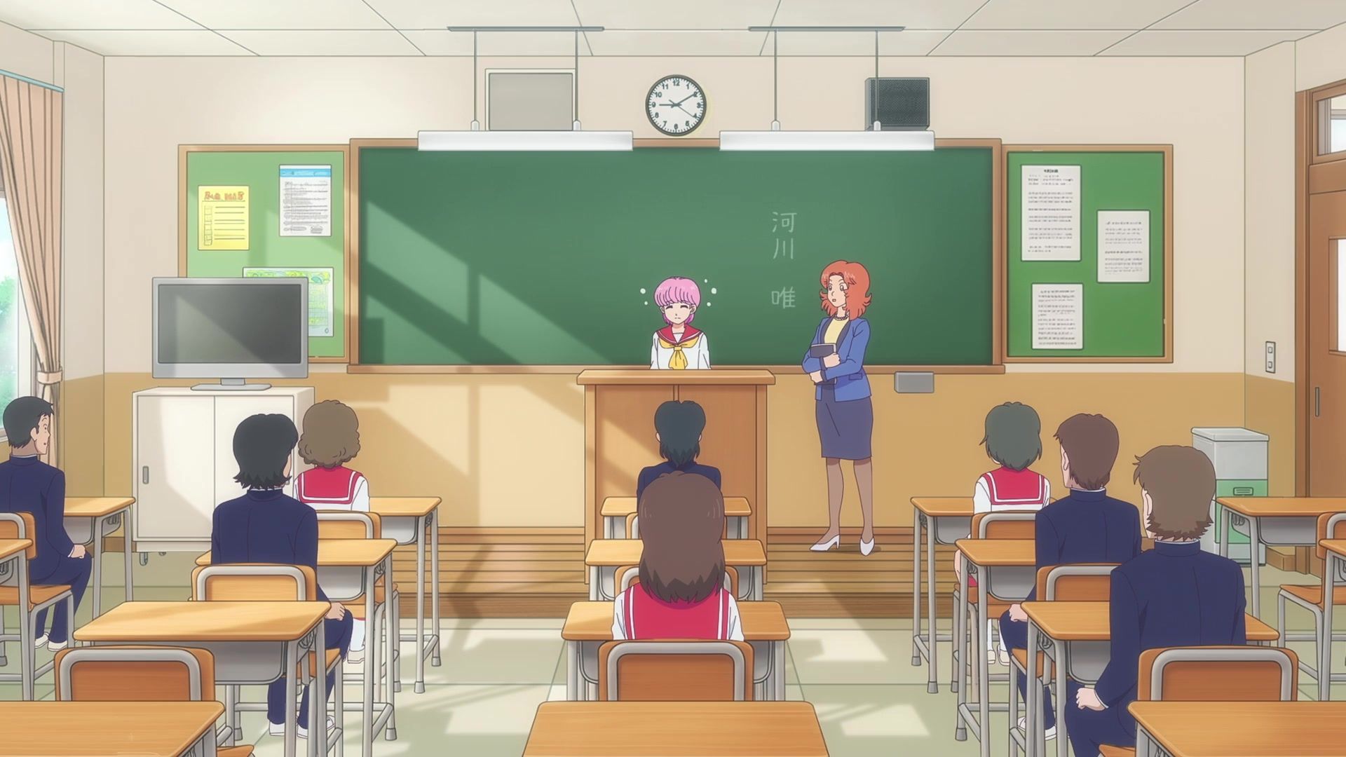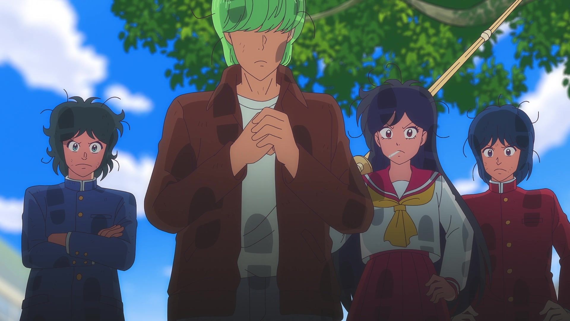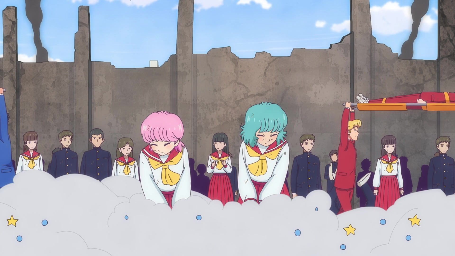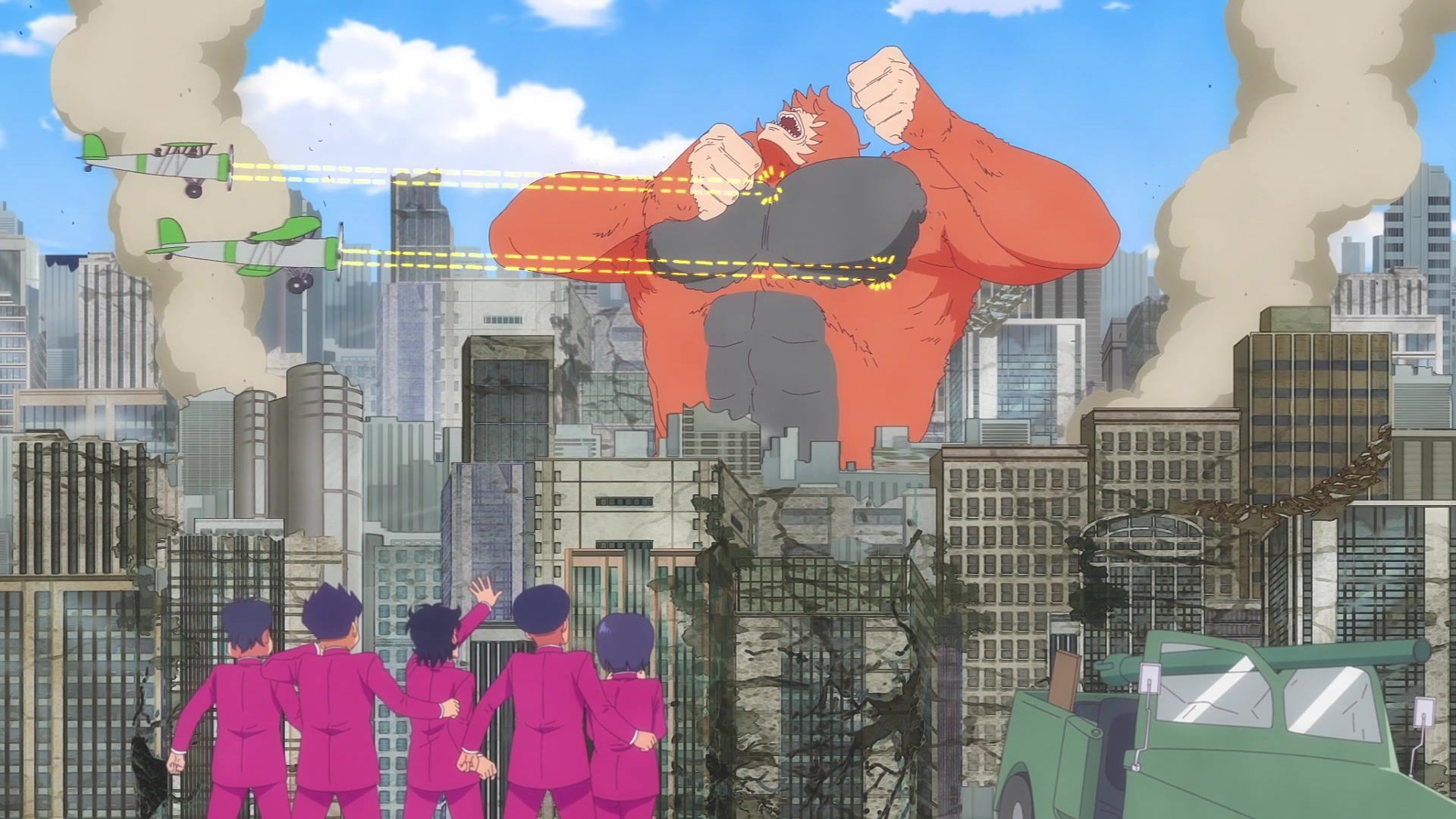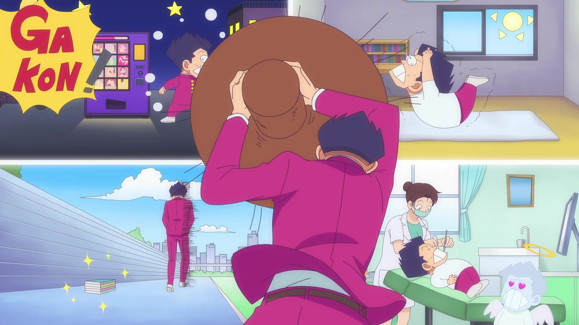 It’s certainly trying to bring back the 80s, which seems to be noitaminA’s side project lately, much more than the recent Urusei Yatsura revival. Especially the character designs. Everyone has giant poofy hair, chins like a ton of bricks, and eyes that are either way too large or way too small with no in-between. There’s just one little rap at the start and then it’s entirely 80s, right down to the animators snorting a terrifying amount of cocaine. I think they were afraid of anybody accusing this show of not being chaotic enough. Or loud enough for that matter. There’s a throughline of characters yelling the entire episode. Not even always as reaction to anything, simply yelling to yell. The existence of silence displeases god… or something.