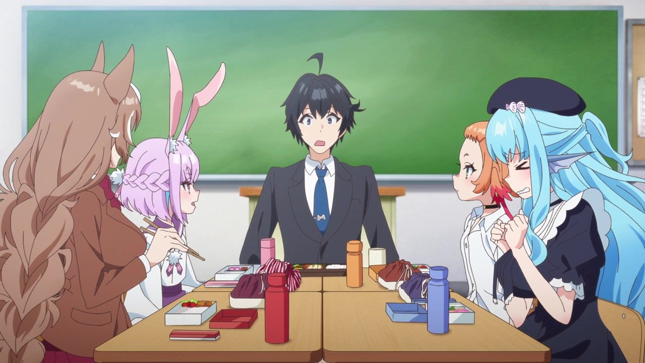 As much as I’d like to praise it for showing restraint and waiting eight minutes before making a ‘joke’ where the protagonist goes “WHAAAAAAAAAAAAAA!?”, I don’t think that I can, as that was one of the whopping two jokes in the episode. You might be able to expand that to maybe four or five if you include some reaction faces for things like “I got interrupted.” But if you’re looking for something with the… pfft… wit or excitement of your standard harem romcom, guess again.
