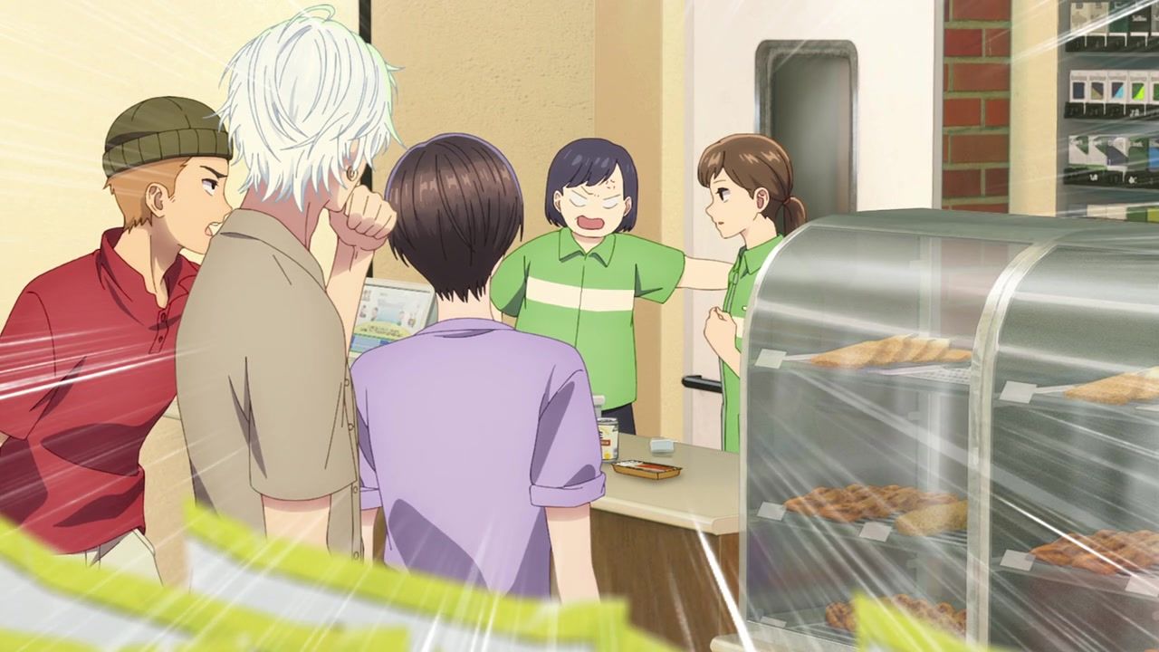 That said, it is waaaay more corny and over the top. Especially the entire convenience store drunk-fight. I mean, great that we’re picking fights with drunks. But also, she trails roses literally everywhere she goes and explodes in more roses whenever she does anything. And then there’s him randomly grabbing her to pick her up so he can say how girly she is. It’s actually ridiculous instead of pretending like walking five feet apart is the craziest thing ever. Also, provides some contrast between the moping and nonsense instead of being entirely silly faces and nonsense.