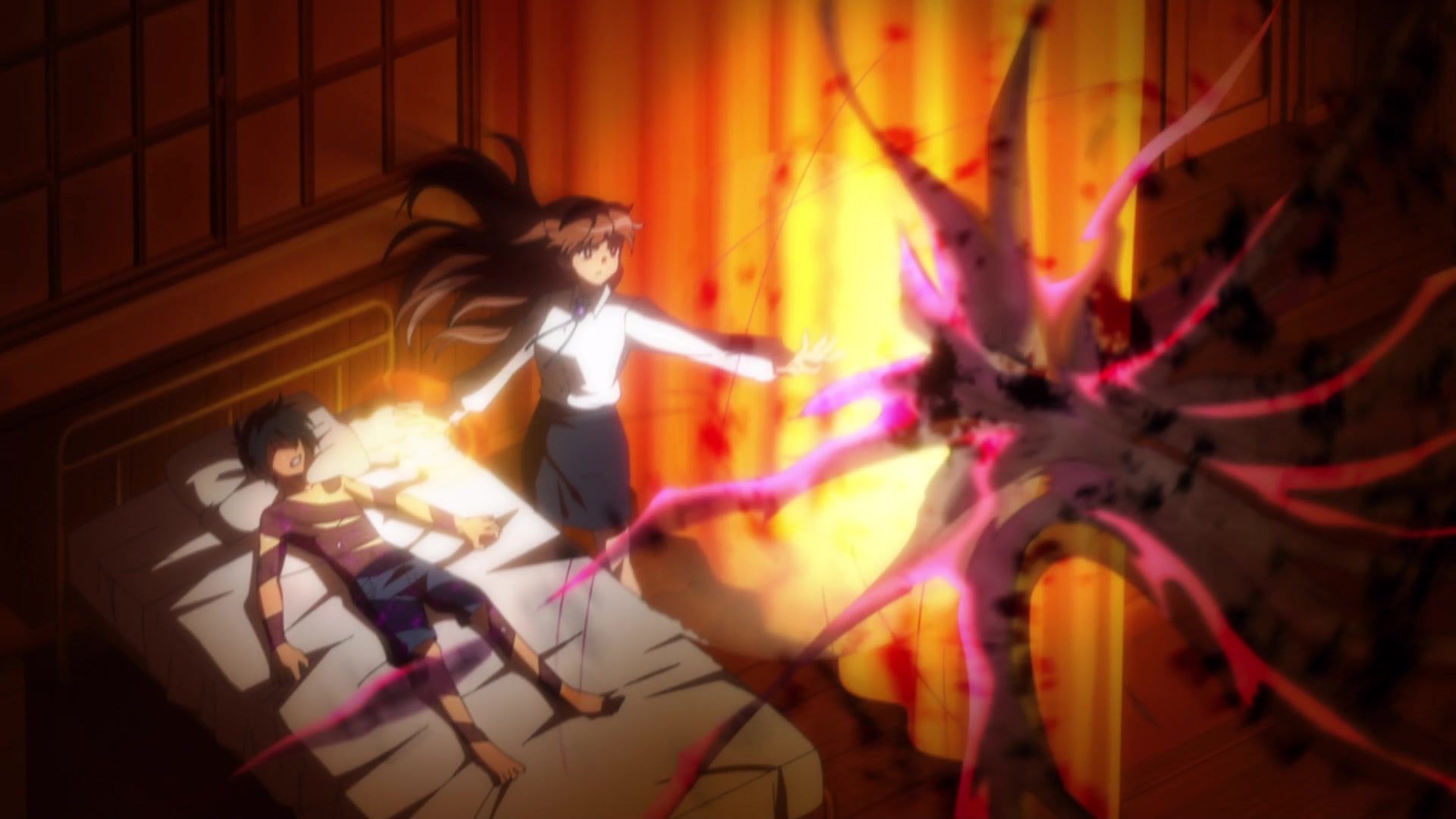 That said, this was a pretty weak episode too. This season is really struggling with second episodes. There’s some sky-pouch yokai thing, but it’s really just an excuse for an origin story flashback. Except Nube’s origin story is that he had a teacher who was just like him, except more popular. Which was also more than a bit awkward since she was all over him like an octopus, but it’s not like he did anything in particular that got her killed that would lead to guilt, or a particular drive to live up to her. She just protected him from… uh… some random evil snake. It literally just does a static-smash cut and now he’s being snaked. I’m not sure it even had a proper name. Which was such a dangerous monster of the week that she had to sacrifice herself. So now he carries on her will.