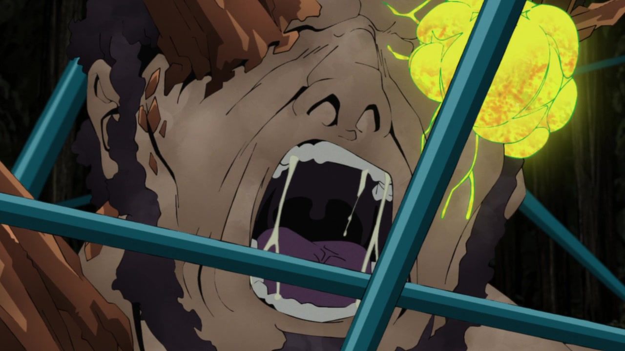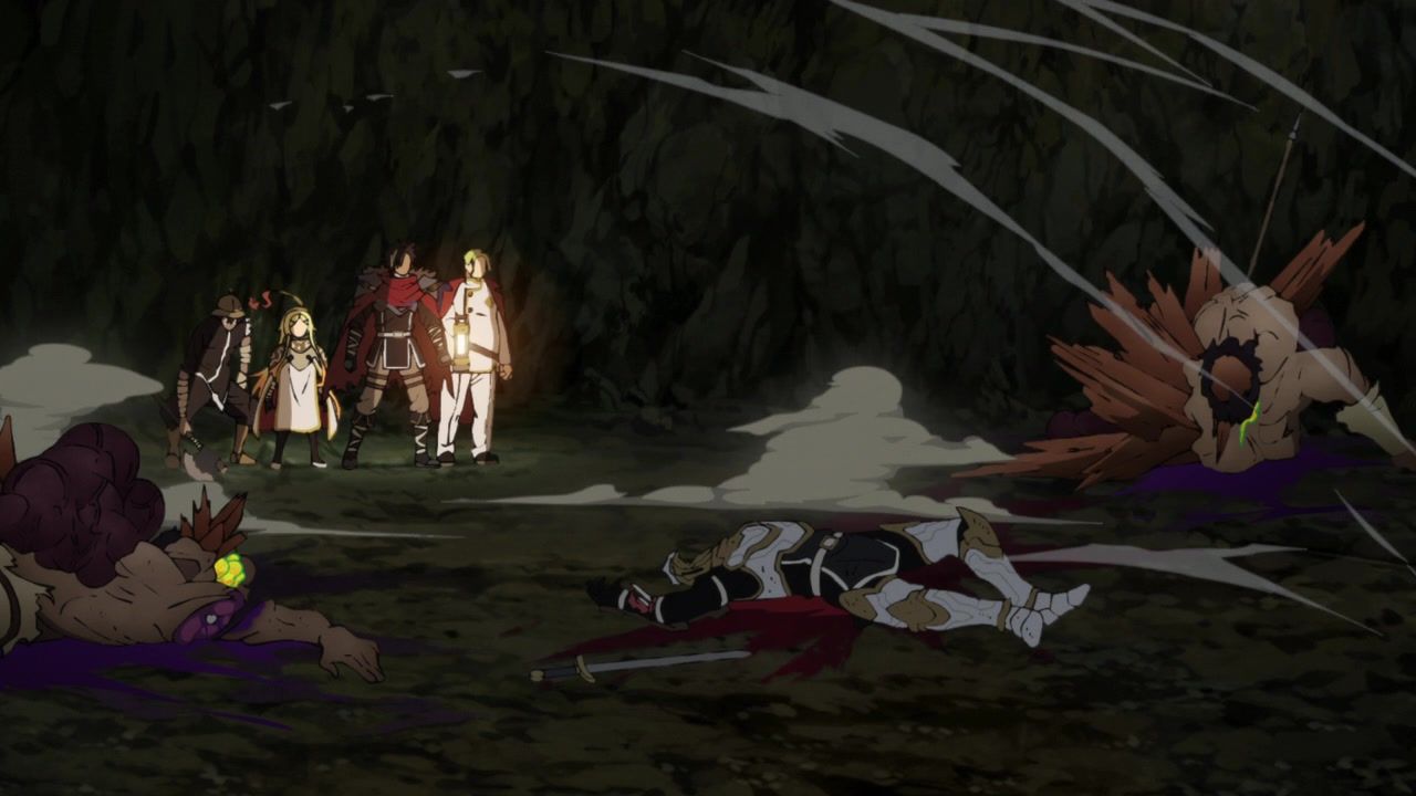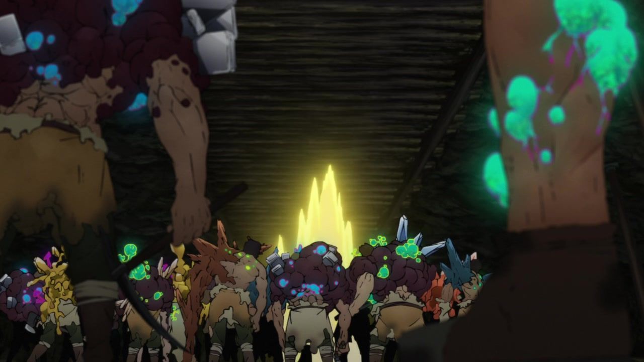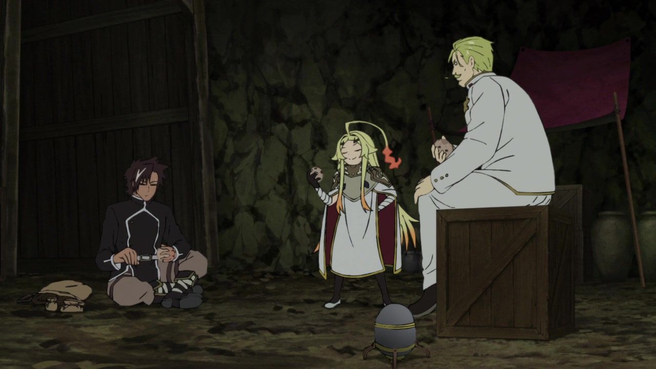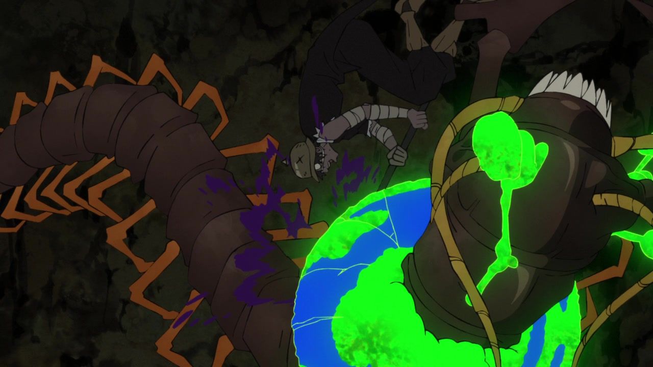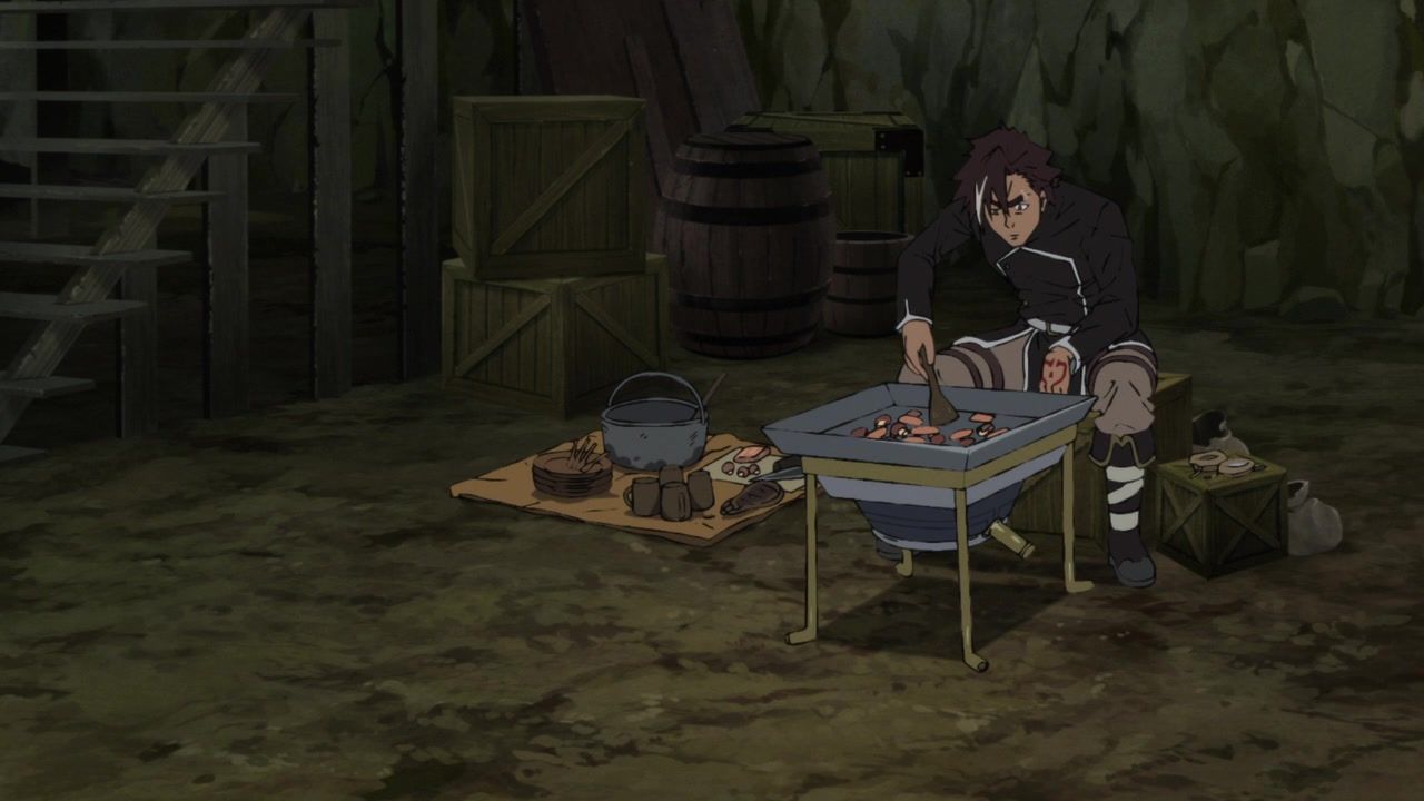 Maybe not entirely fair since the first was double length, and this wasn’t that bad, just very boring. There was a very, very bizarre stretch of animation about two thirds through. Ironically, right after a pretty half-assed action scene against some random centipedes. That was just grunting and then stills/explosions. But after that, it seems like the animators woke up and decided the next two or three minutes needed to be weirdly fluid as everybody was bouncing around. Then it was time to look at not-food and, weirdly for anime, the budget went back to its standard mediocre level. Yes, quibbling over weirdness in the production was the most exciting thing of the first 20 minutes of the episode.