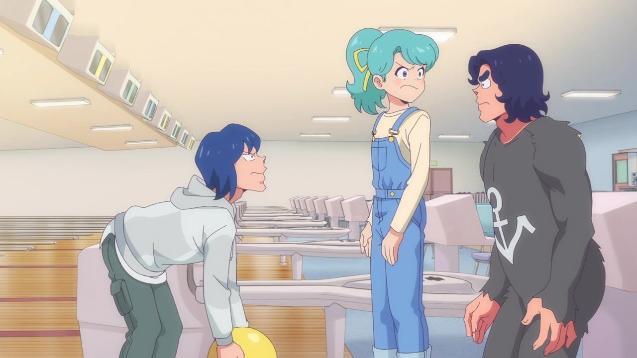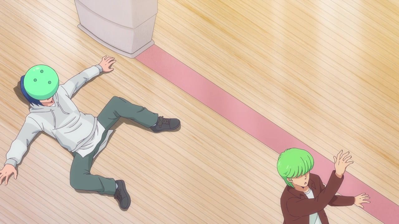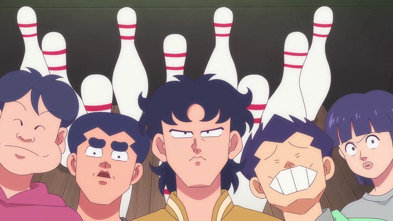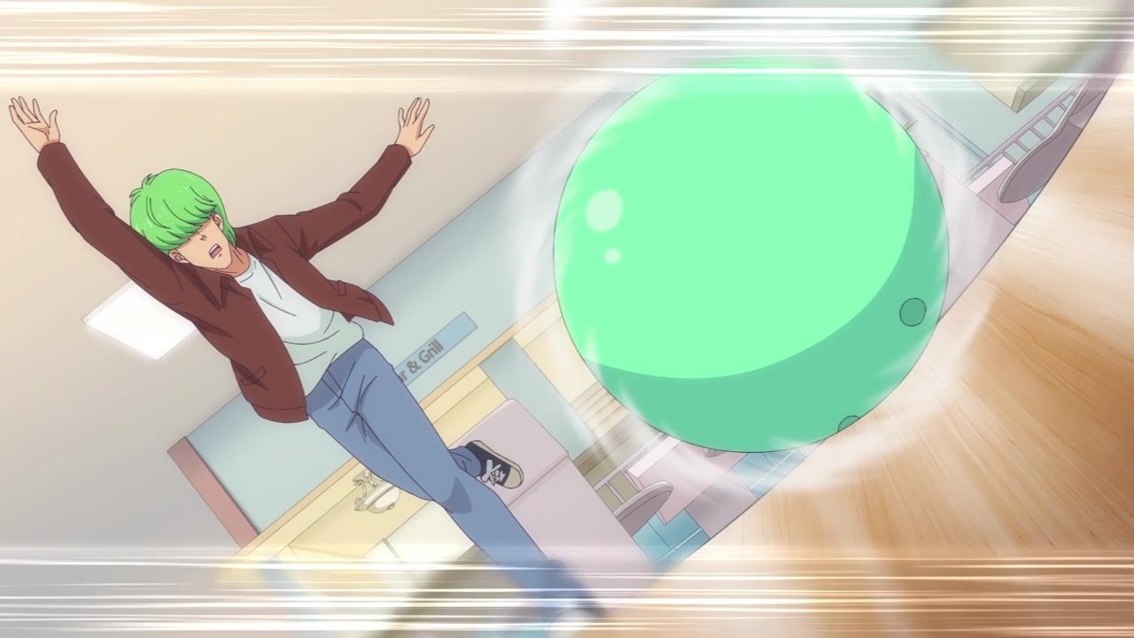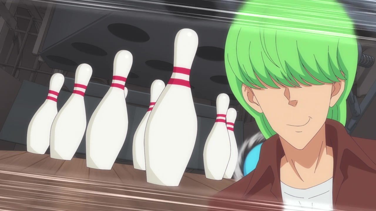 While I’m… appreciative, I suppose is the word, that this is carrying on the spirit of 90s ADHD slapstick, it’s not something I can say I enjoy. I also had the thought for a moment that it feels like forever since a show went to a bowling alley, but then I remembered that terrible time-slip bowling anime from a season or two ago and made myself mad at anime. For the record, this dude stretching his arm, getting sucked into the pin machine, and turned into a ball, was more realistic than the bowling was in that show.