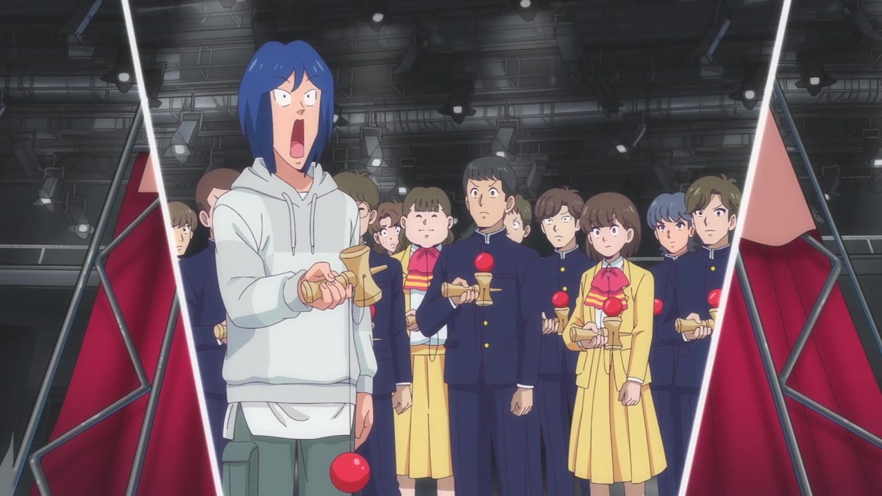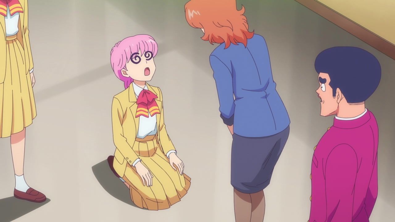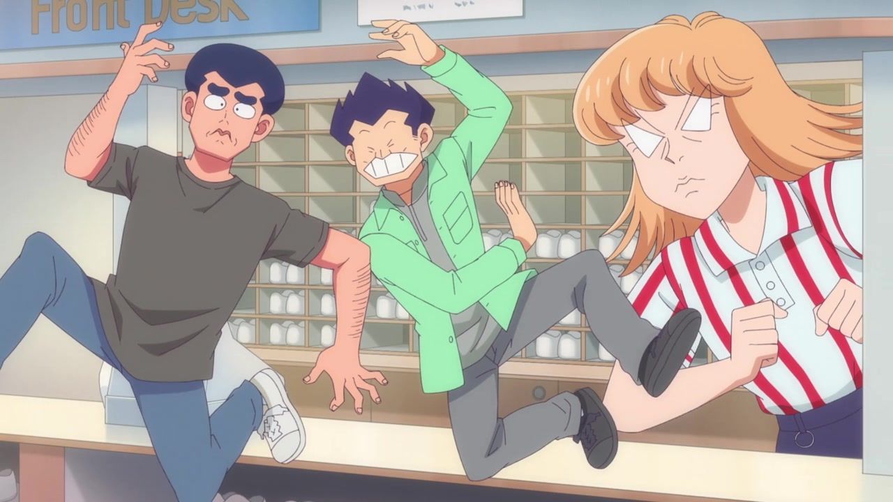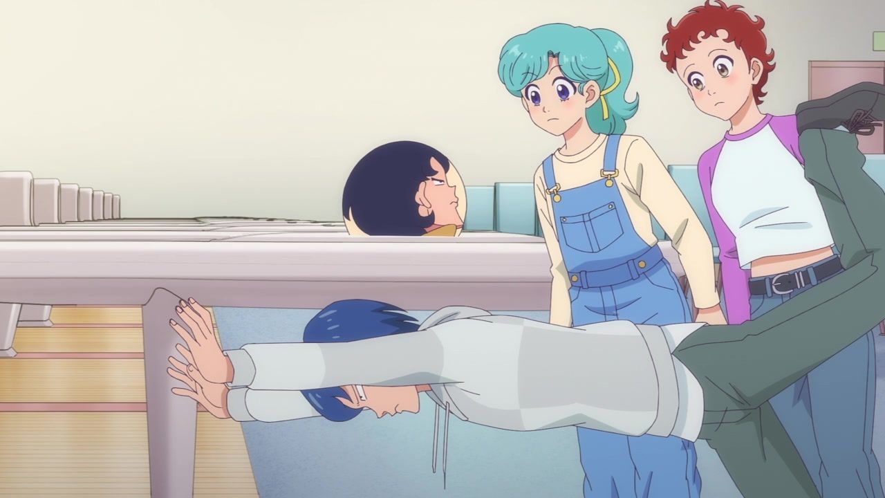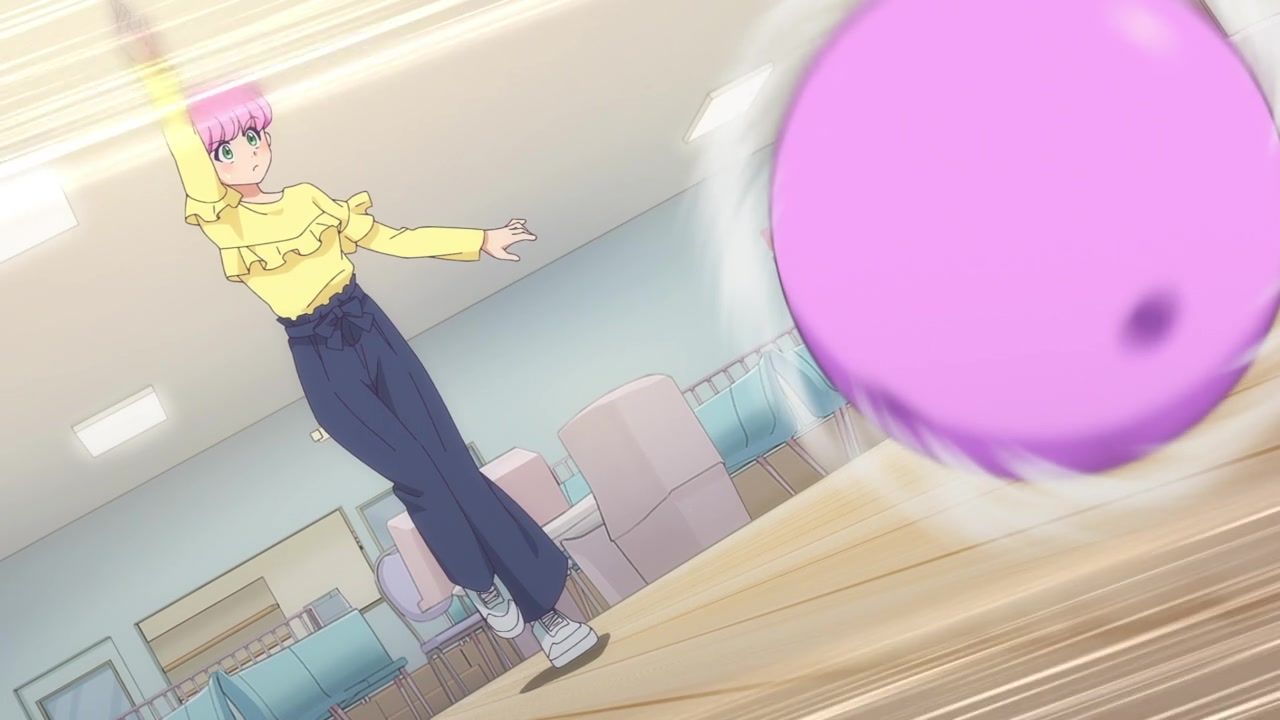 While I’m… appreciative, I suppose is the word, that this is carrying on the spirit of 90s ADHD slapstick, it’s not something I can say I enjoy. I also had the thought for a moment that it feels like forever since a show went to a bowling alley, but then I remembered that terrible time-slip bowling anime from a season or two ago and made myself mad at anime. For the record, this dude stretching his arm, getting sucked into the pin machine, and turned into a ball, was more realistic than the bowling was in that show.