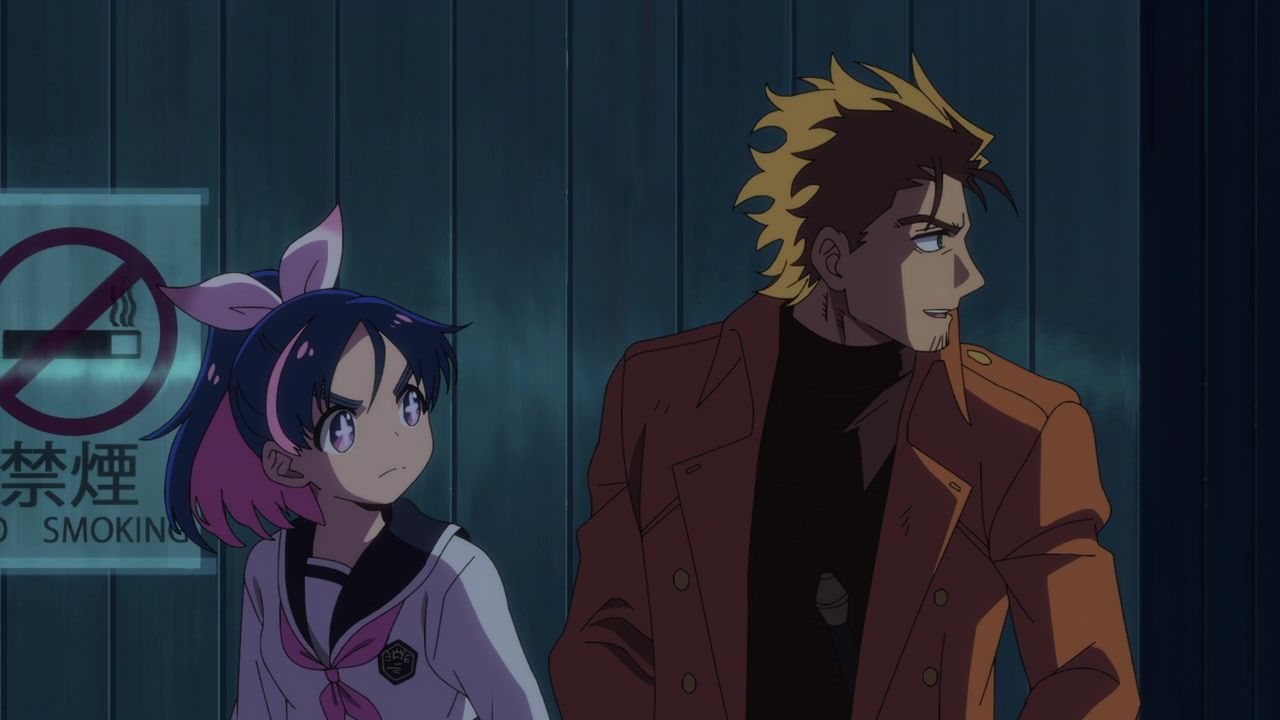 Boy, this season and episode 2s… What an awful episode. There’s nothing wrong with thinky protagonists, especially those who rely on subterfuge or wit. That was largely Shinpei’s deal in Summer Time Rendering. But when you make the whole power that they cause time to stop so they can exposit for five minutes in what’s supposedly taking place in five seconds, that’s not a power. That’s how anime works as a default. You’re just fetishizing it and trying to call the cliche special. Creating pacing problems and trying to make excuses to not animate people moving is pathetic. This was pathetic. Same as her declarations that she’d stop him from killing any more people and then just sat there. Especially while her friend gets to assassinate everybody without compunction. Good for not throwing a tantrum about it, but why even bring this up if you’re not going to do squat and nobody else is supposed to follow this rule?