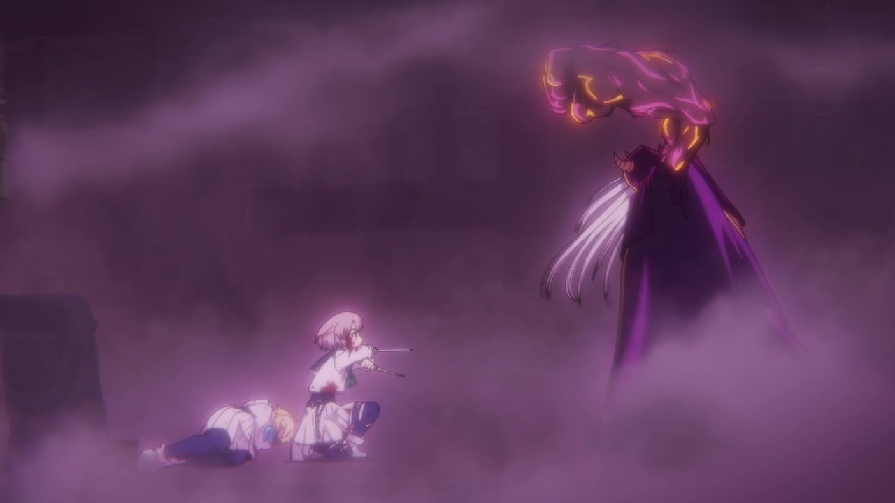 And there were so many better ways all these powers could’ve been done. Just hide it and let him appear like a super badass. Have her be reacting to and anticpating things as an active participant. Let vine guy do… well, literally goddamned anything. He was especially bad because wasn’t his schitck last week stated to be that he inflicted sleep paralysis or something? Now it’s that he controls vines that only he can see…… unless there’s smoke or something, in which case anybody can see them. And for all the fuss it made about evil dude’s power going crazy, who’s-her-face spent those entire eight minutes just sitting there, being Chekhov’s most obvious gun while the dude narrated that all was lost, after trying nothing. But also, shouldn’t she have realized most of this stuff from the get-go if she has telepathy? Urgh. So much about this episode is just making me mad. Be better than this, anime.