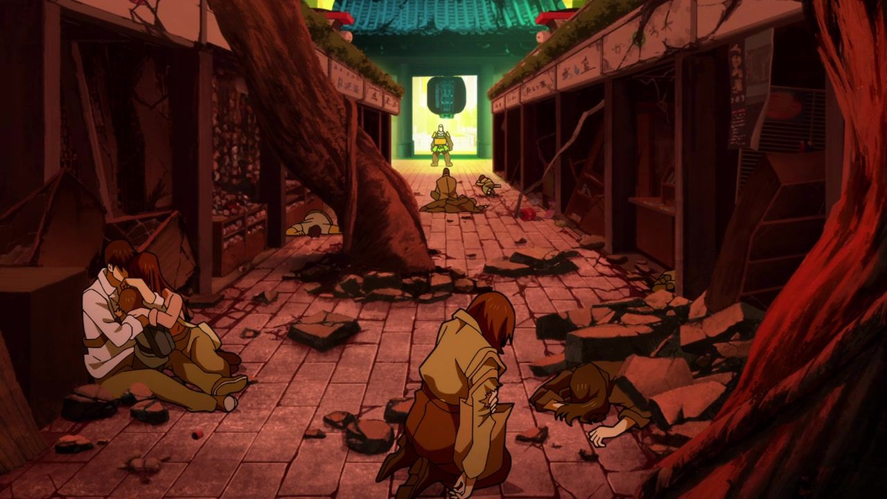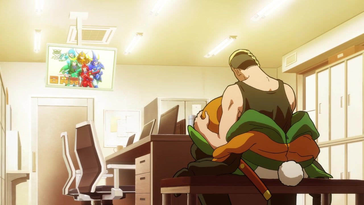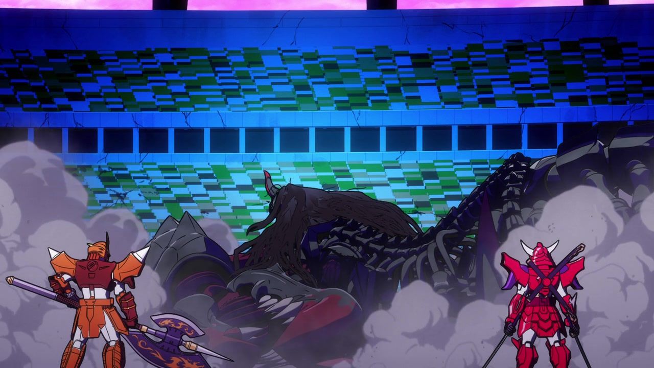 Unfortunately, the action is also following suit. The songs pass me right by if they’re meant to be fanservice, and the ‘fights’ themselves are only a hair above the old series. As soon as they’ve declare their character growth and powered up, fight’s instantly over. Which is especially kind of funny for that one antagonist dude who appeared to be reduced to a smoldering corpse after his 10 seconds of screen time. Why even bother having him exist at all? The jank-ass CGI monsters were more featured than him. Oh, right. The obligatory references. What’s truly important in this show, and why my interest is cratering. That, and how fewer and fewer people are gratuitously liquified each week.
