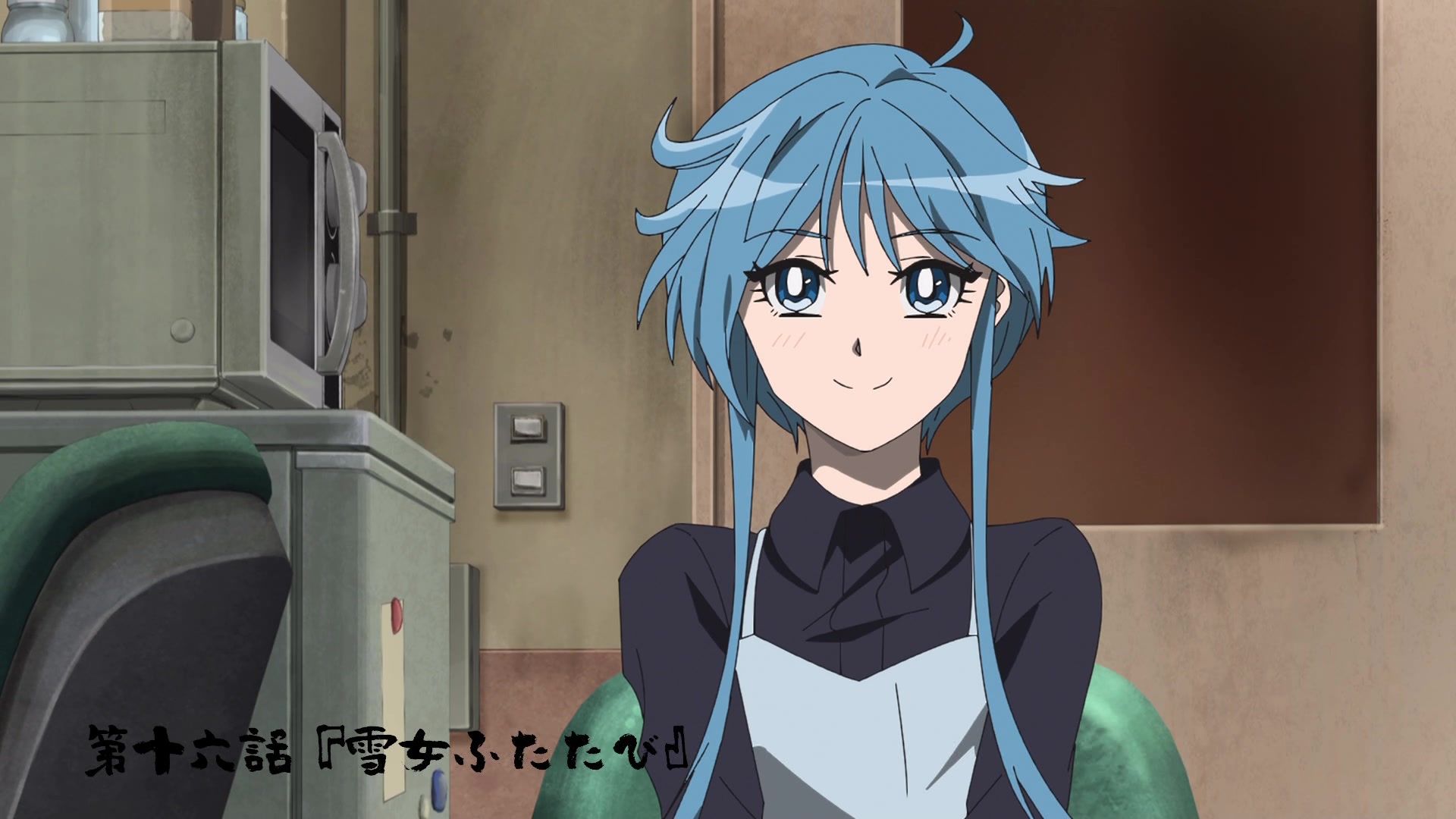 The epitome of a filler episode. Yukime, the murderous yukionna, shows back up, having been kicked off the mountain for being not quite murderous enough, by a rumbling hole in the ground, and so we get to repeat all the same stuff from the last time she was around. This time, instead of her spontaneously trying to kill everybody, a building explodes and only she can save some random kid. And then she becomes a zamboni. Yes, really.