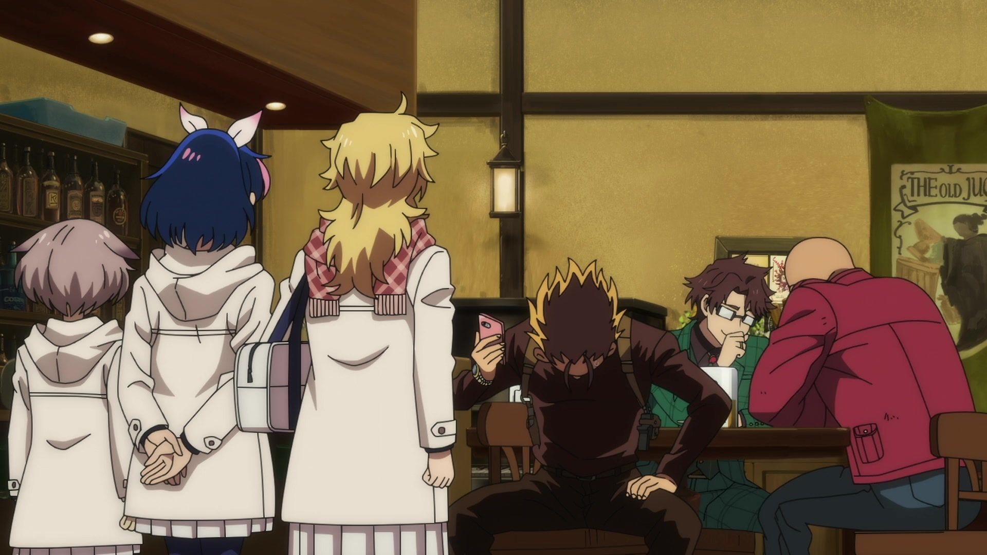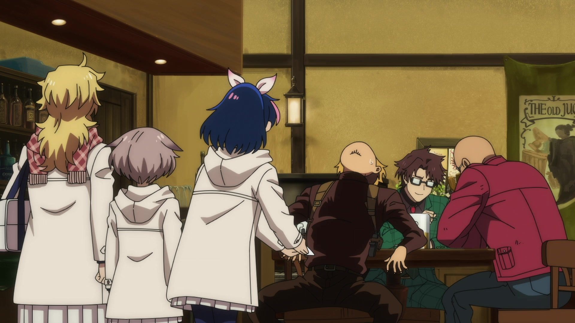 Though as I write here, I’m not really sure the point of the character-specific half-episode either. It was very filler. Palatable, since we’re early and being introduced to her, I guess, but the kind of thing that’s bland time waster now that will likely become the norm and get really boring really fast if they do it for each one. A bit more substance or some kind of actual life lesson there would’ve helped a lot. It does seem a little odd that they’re not involving his buddies more, especially since there’s three of each and they all pair up in typing pretty obviously. I find their teasing and casual corruption of the kids far more fun than his dynamic of them so far, especially as they’re steering pretty wide of anything fanservicey or romantic between any of them. Well, mostly.