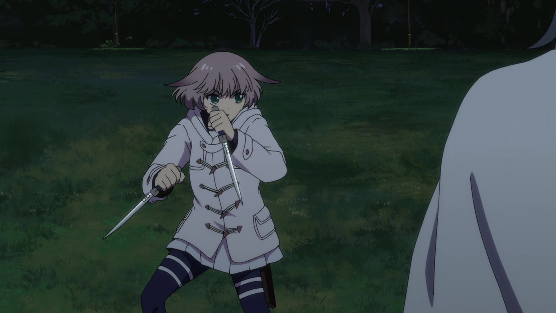 A bit better than last week, thanks in large part to the action scene not having its pacing shot in the face by sixteen paragraphs of unneeded exposition. The animation was still somewhere between poor and embarrassing, but everybody shut up and slashed at things. I wouldn’t say the same about the first third of the episode, which was the over-long obligatory actual recruitment. It’s a foregone conclusion, so let’s just get on with it instead of eight minutes doing recap and exposition.