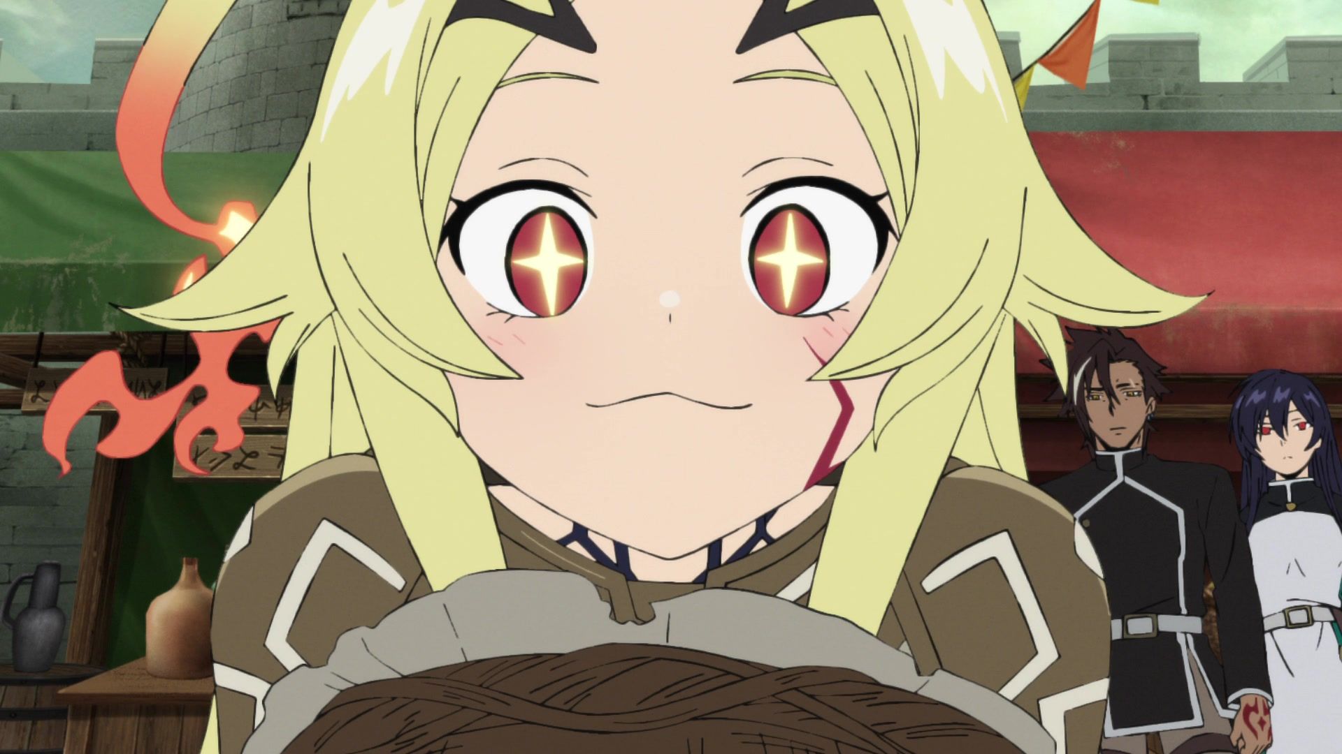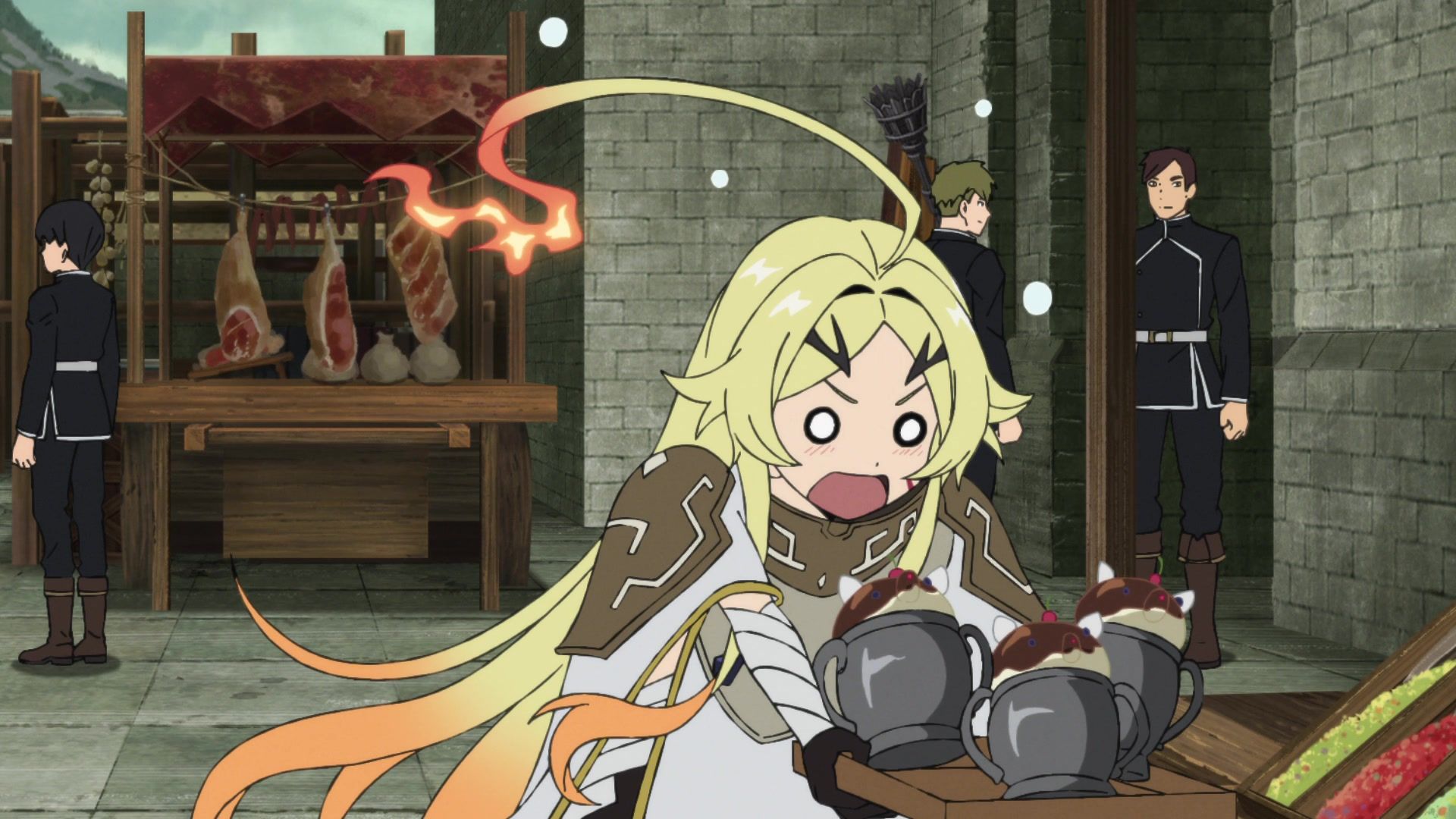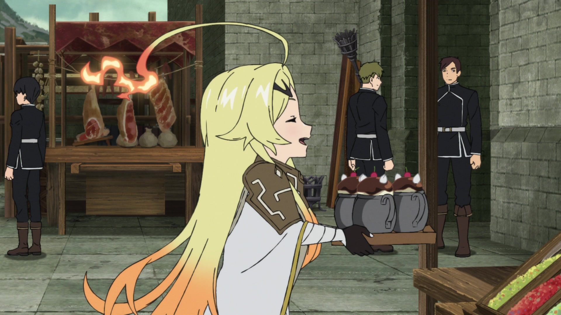 Regardless, most of the episode was either in the expositional flavors of “As you know, our world history is…” or “I will now explain my interests and hobbies.” We learned about the goddesses, the next mini-boss, Teoritta’s backstory, Xylo’s hobbies, so on and so forth. All through people simply announcing them. I almost would’ve preferred the date episode it was seeming like it’d be from having a festival with traditional medieval soba. As you do.