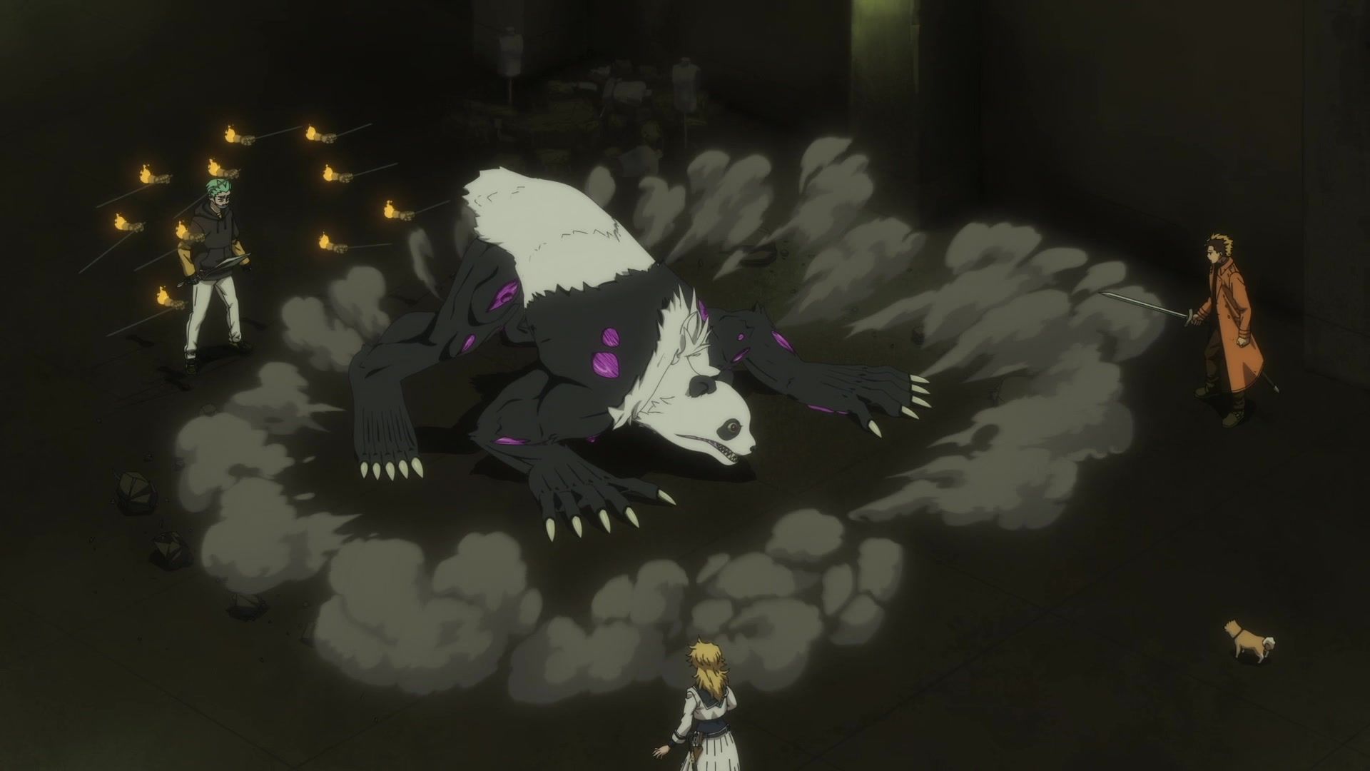 Plus, to continue harping on about the animation, that’s still sucking too. Fighting a giant mutant zombie panda absolutely could’ve at least looked decent, but two slashes and it falls over while Handsy Man and Kid Bat wander off. What was even the point of that kid while we’re at it? Some future nonsense, no doubt, but we’re already lacking in the present, and I somehow doubt that whatever Handsy Man’s backstory/relationship is with the kid is going to be compelling enough for this to have been strung out like it is.