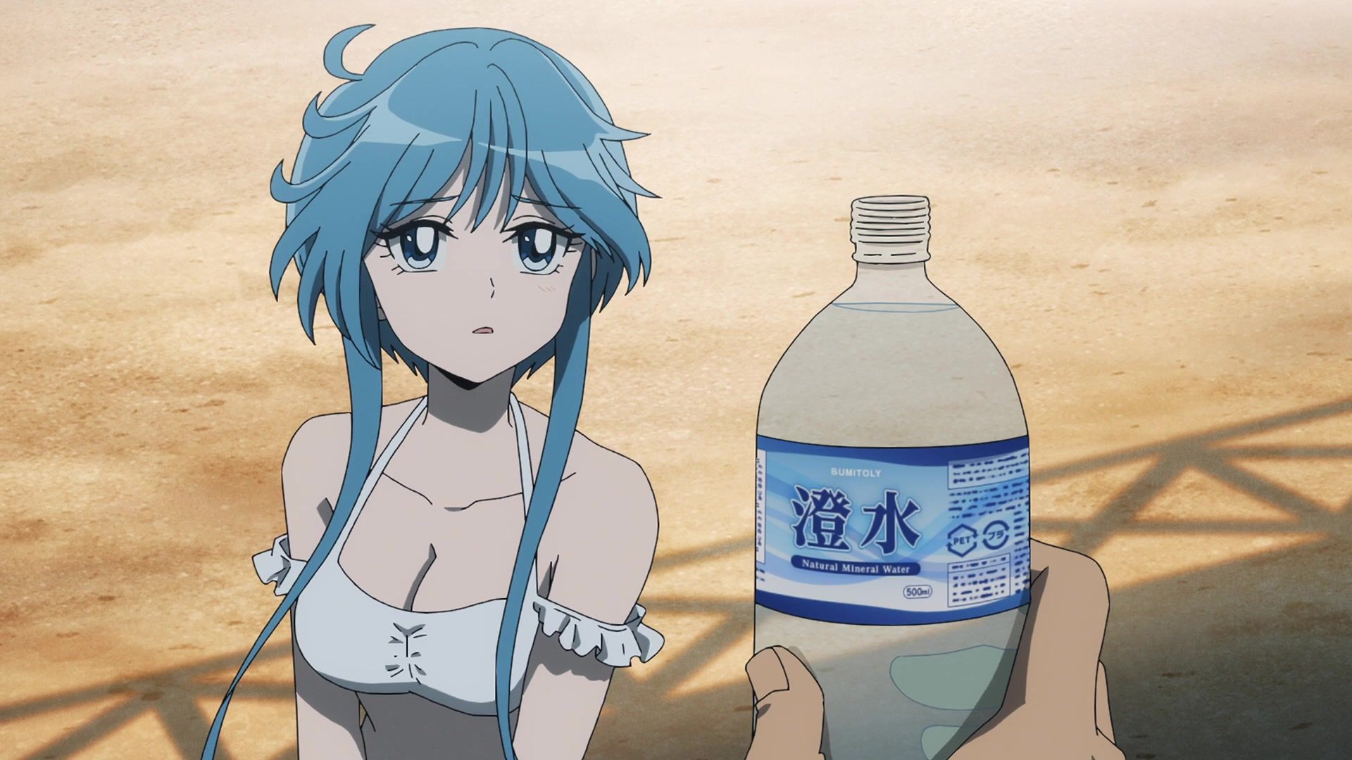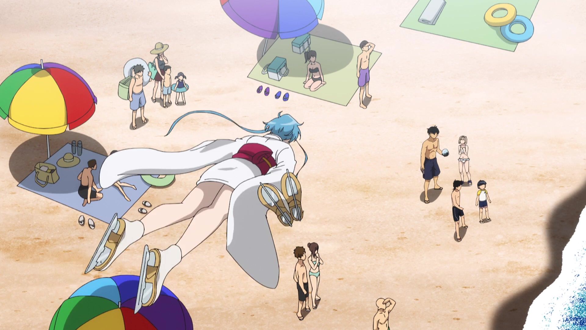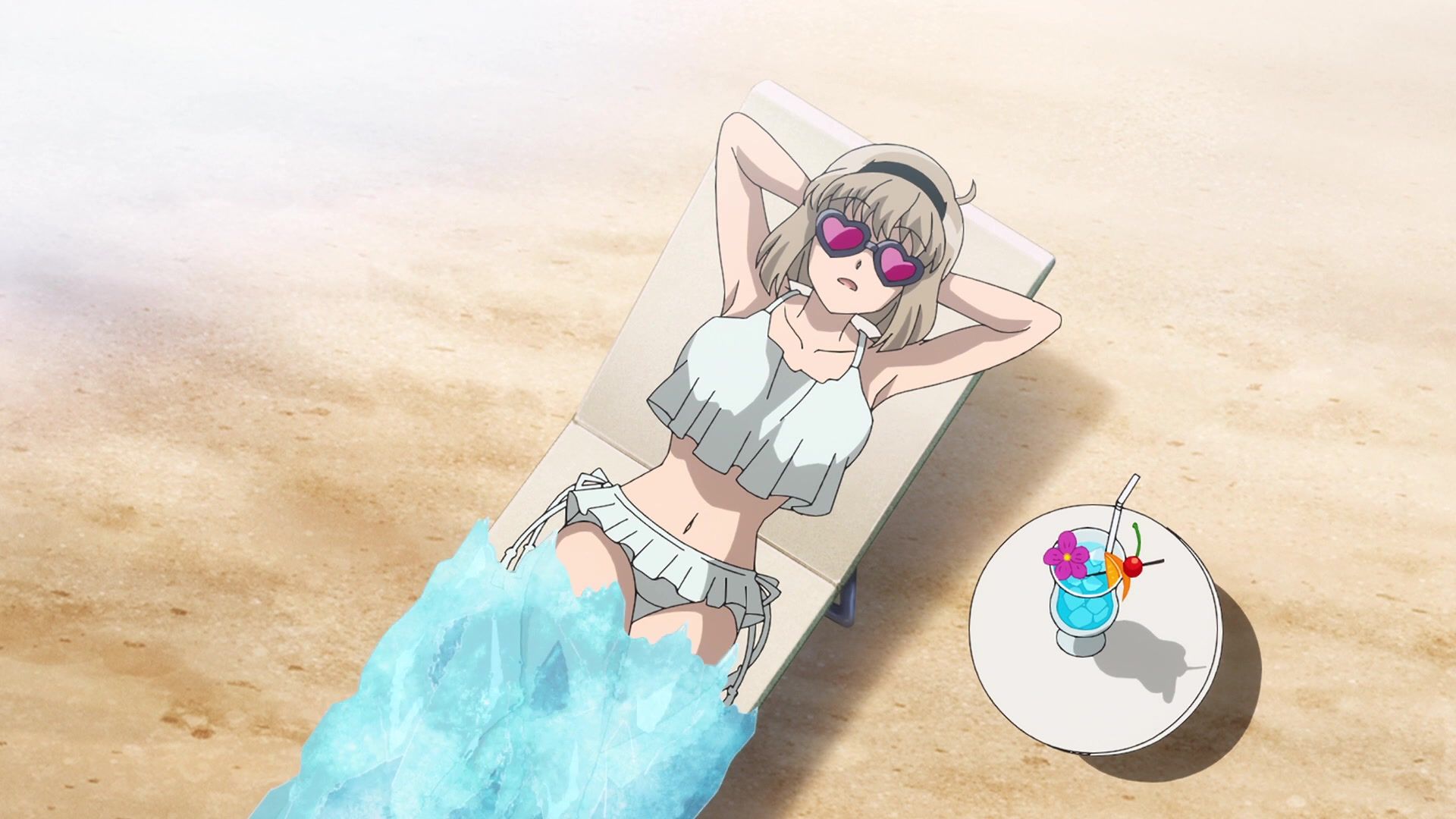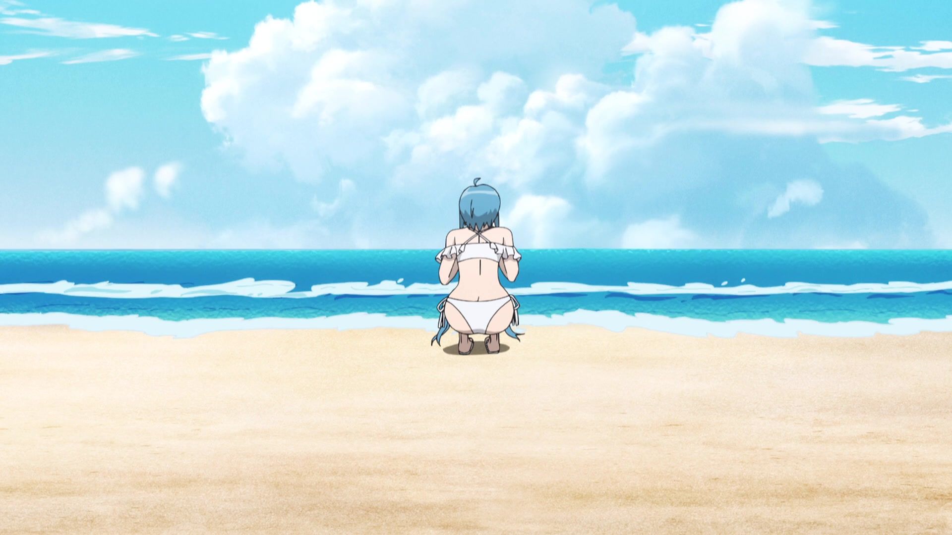 …Fantastic, the fanservice snow girl again. For a beach episode, so extra fanservice on top. I don’t expect Shakespeare from this show, but it’s not comparing well lately even to the pure fanservice schlock of the slave licking and petting show. Bikinis for kids and feeding her iced coffee makes her tan and busty. Could’ve at least dragged along the furry dude and slapped him in a speedo. If we’re going to be trashy and dumb, let’s go whole hog.